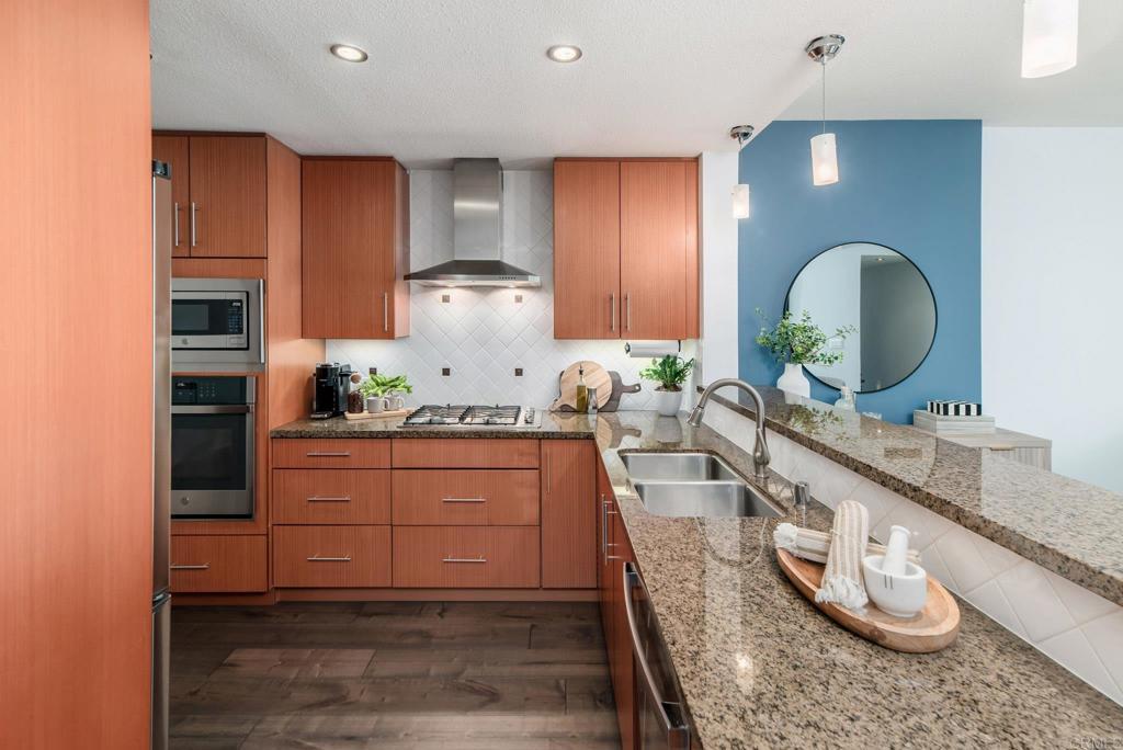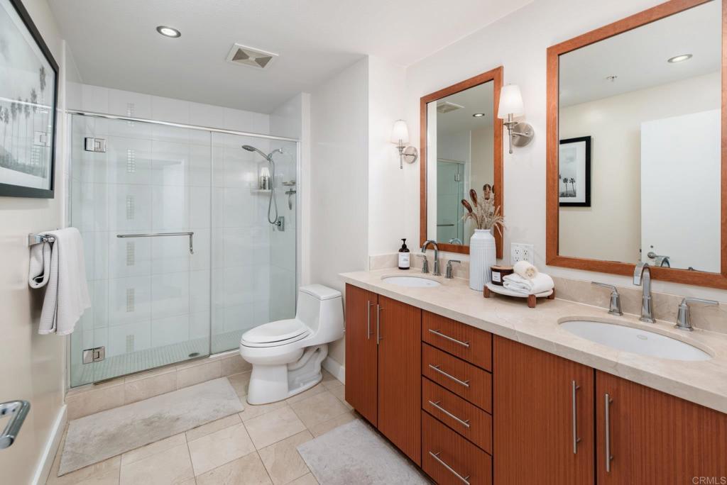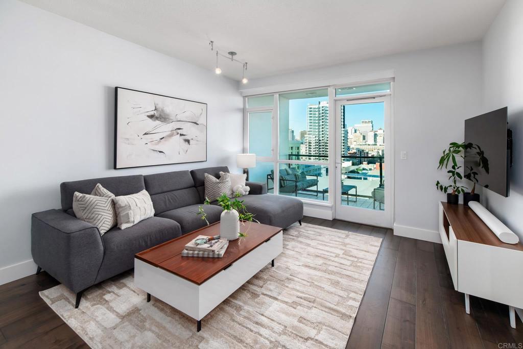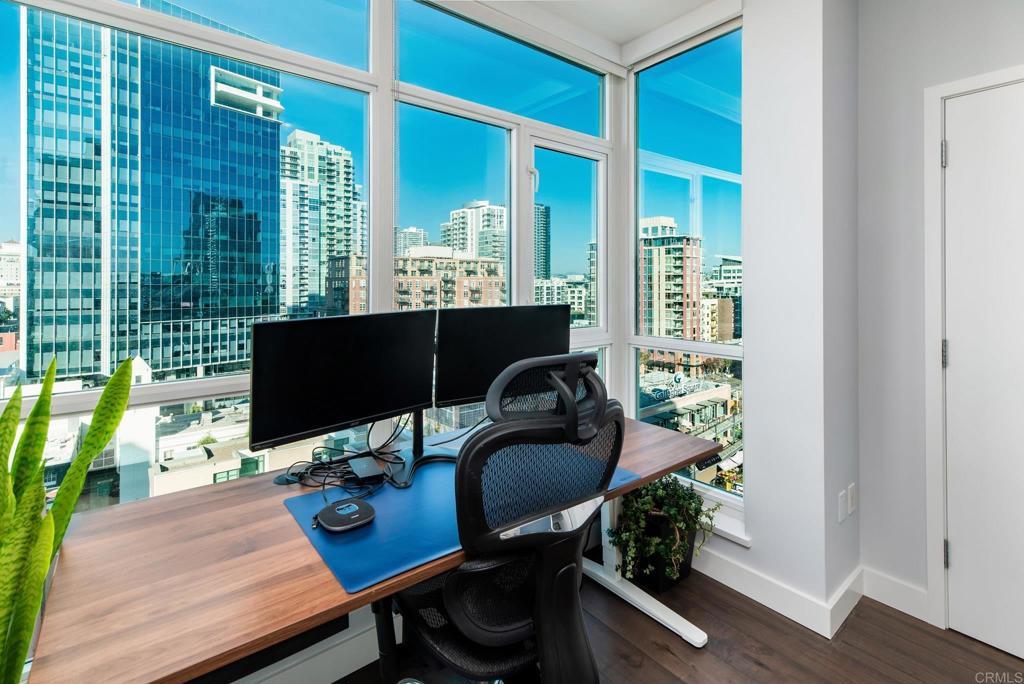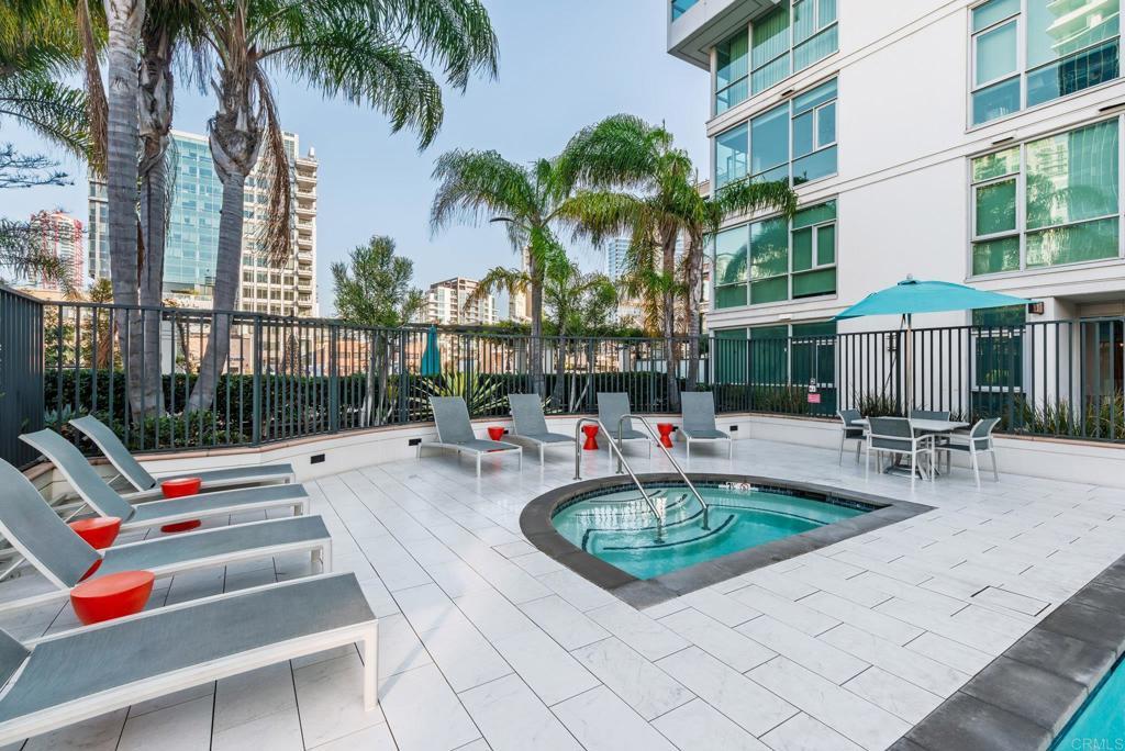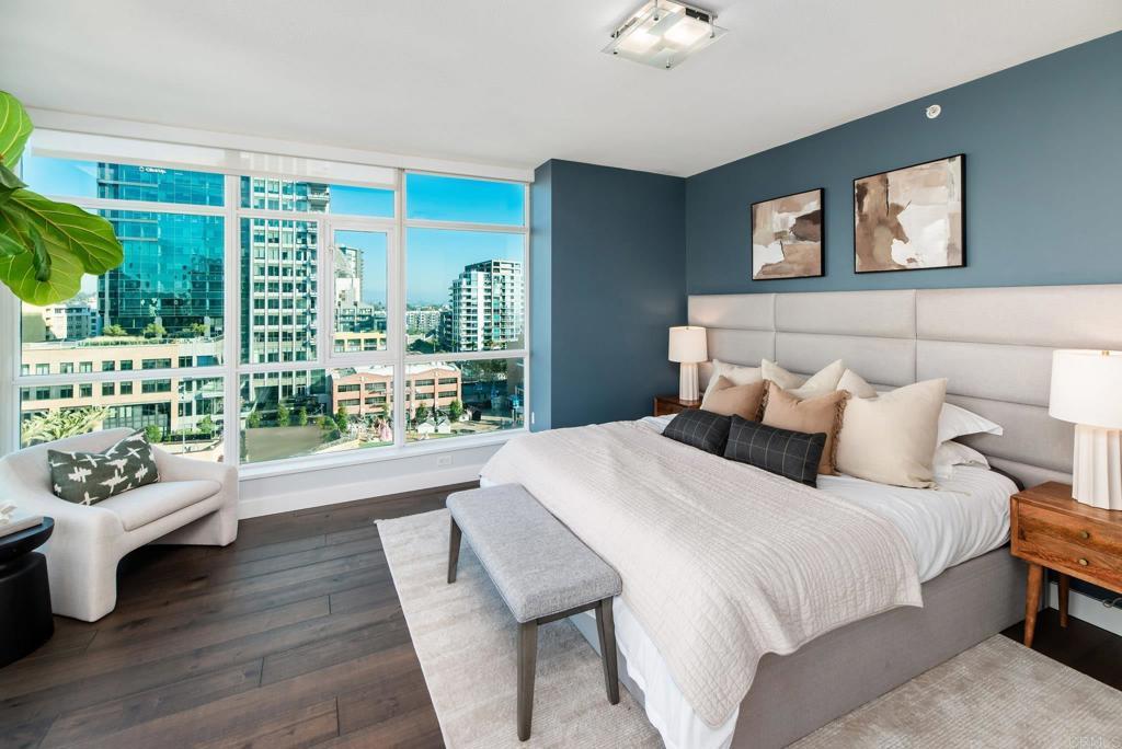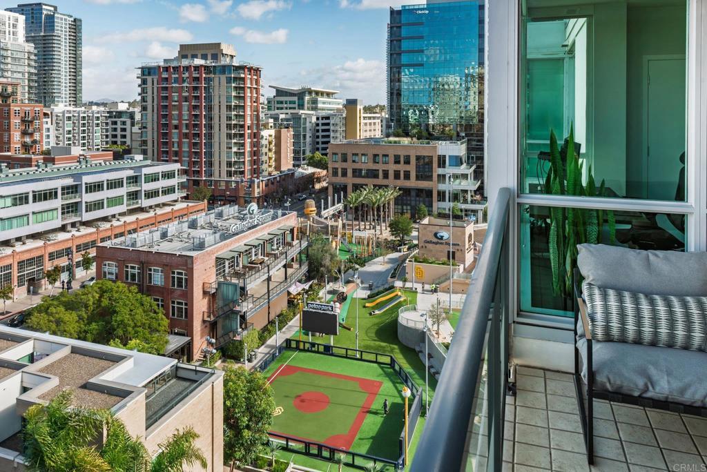 Experience urban living at its finest in this beautifully upgraded 2-bed, 2-bath view condo in The Legend, one of downtown San Diego’s most sought-after residential towers. This spacious residence features one of the building’s larger floor plans, offering generously sized bedrooms and floor-to-ceiling windows that fill the home with natural light. Recently upgraded in August 2024, the unit showcases new engineered maple hardwood floors and a full suite of brand-new kitchen appliances. Thoughtful storage solutions include built-in shelving in both bedroom closets as well as custom shelving in the pantry/laundry area. Enjoy seamless indoor-outdoor living from your private balcony with sweeping open-sky city views, beautiful sunsets over downtown, and a serene outlook over the pool and surrounding greenery. The bedrooms offer unique views of Gallagher Square giving you a prime perspective of Padres games, concerts and so much more. As a resident of The Legend, you’ll have access to exceptional building amenities including the iconic 7th-floor deck overlooking Petco Park, complete with fire pits, grills, TVs, and a clubhouse—perfect for game days and gatherings. Additional amenities include 24/7 security, business-hours concierge, package management/storage, a sparkling pool and hot tub, gym, sauna, steam room, locker rooms, outdoor grilling areas, and inviting common spaces. Petco Park is literally in your backyard, and you’re just two blocks from the Gaslamp Quarter placing the city’s best dining and nightlife at your doorstep. Enjoy easy walks to the Convention Center, the Rady Shell, the San Diego Bay, and Seaport Village with the airport only 15 minutes away. This home combines luxury, comfort, and one of downtown’s most vibrant locations—an ideal residence for those seeking the true San Diego lifestyle.
