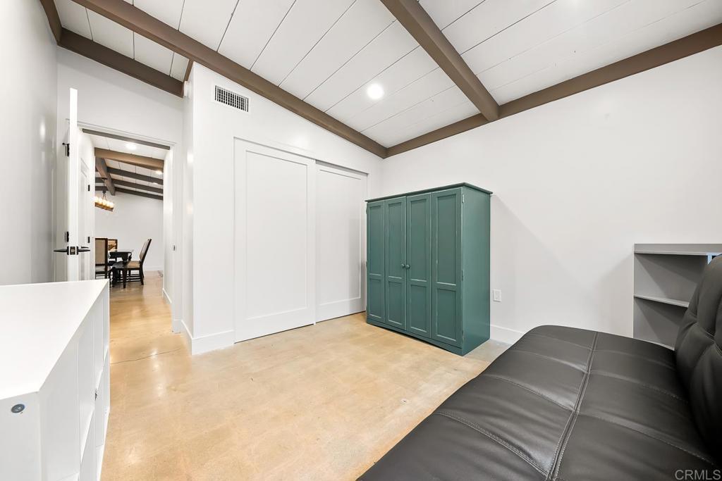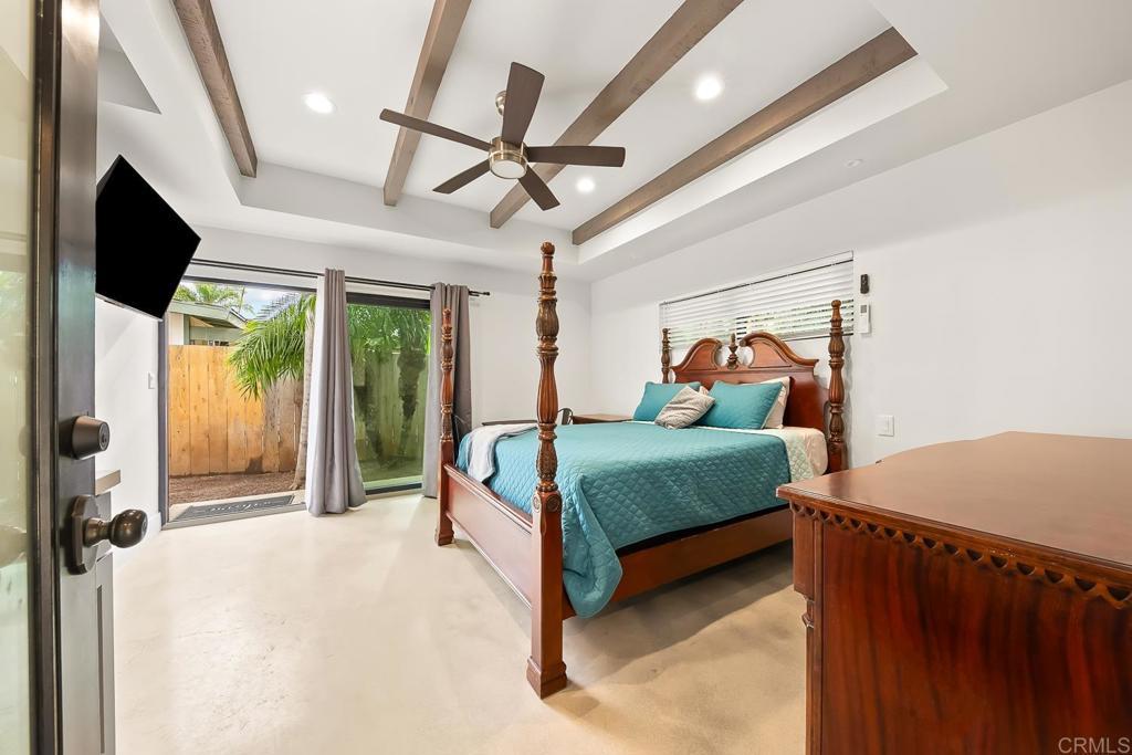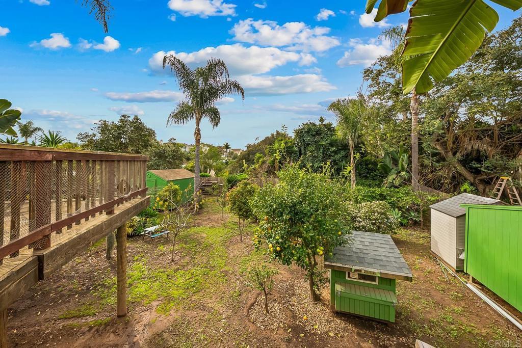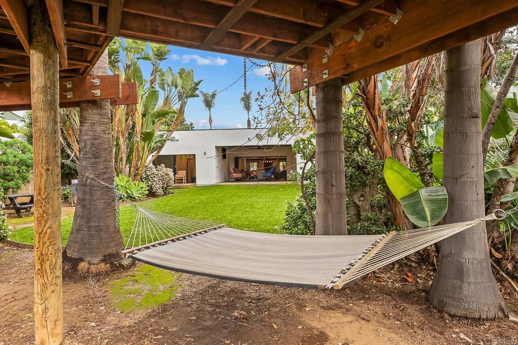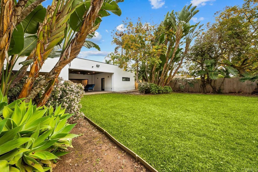 Contemporary coastal luxury residence w/ attached 322 sq.ft ADU and unrivaled .35 acre flat & private rear yard. Gated courtyard entrance leads inside to an expansive great room w/ historic exposed beams & tongue and groove wood ceiling, and polished concrete floors. Anchored by the Island kitchen that boasts custom cabinetry, handpicked tile backsplash and modern JennAir Professional appliances. La cantina doors open to the outdoor patio and the expansive rear yard. Outside: Mature trees, chicken coop, treehouse, numerous fruit trees (apple, peach, nectarine, cherry, orange, apricot) & additional storage areas. 1 Bed & 1 Bath ADU with separate entrance for multi generational living. Minutes from award winning schools, Carlsbad village and miles of Carlsbad’s famed beaches.