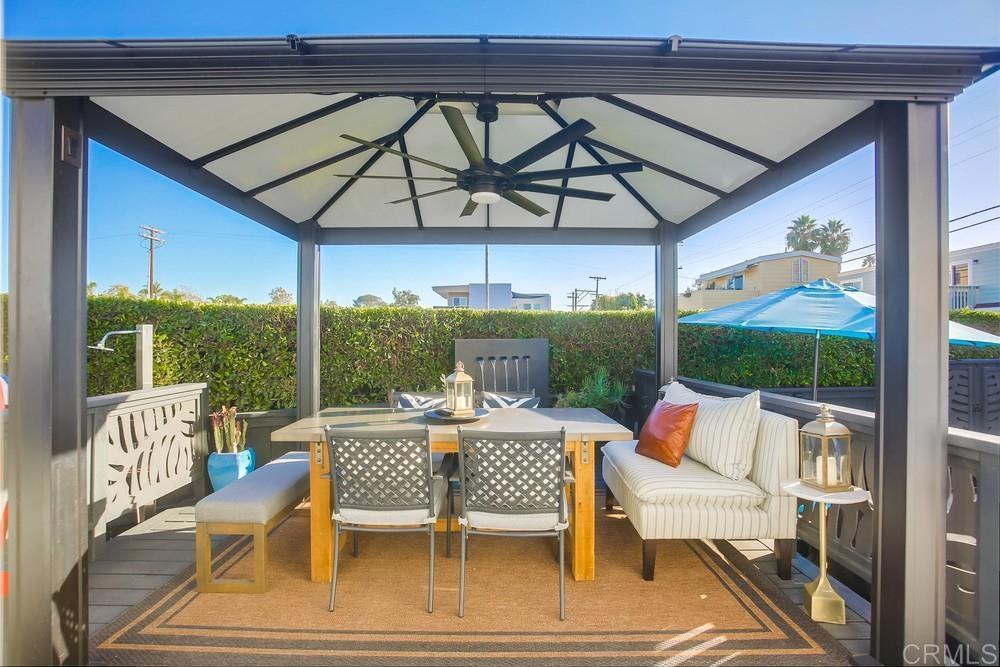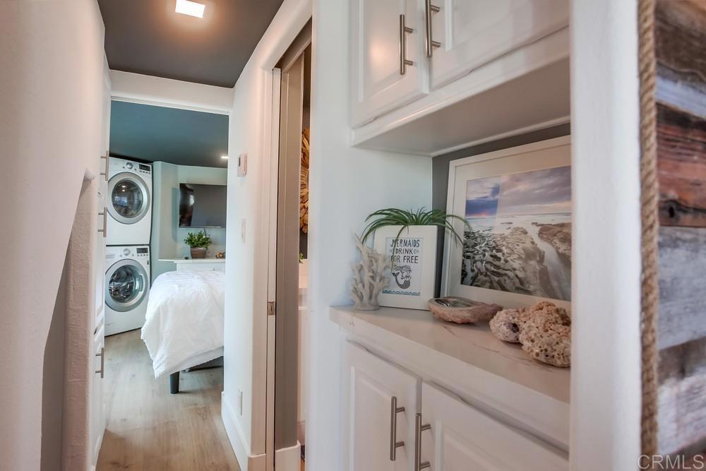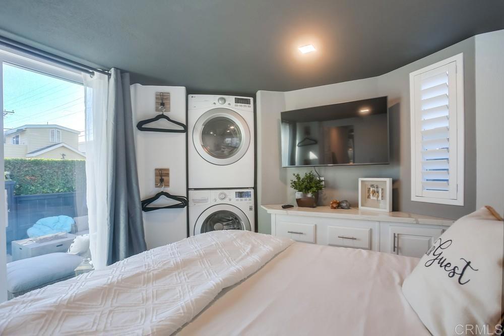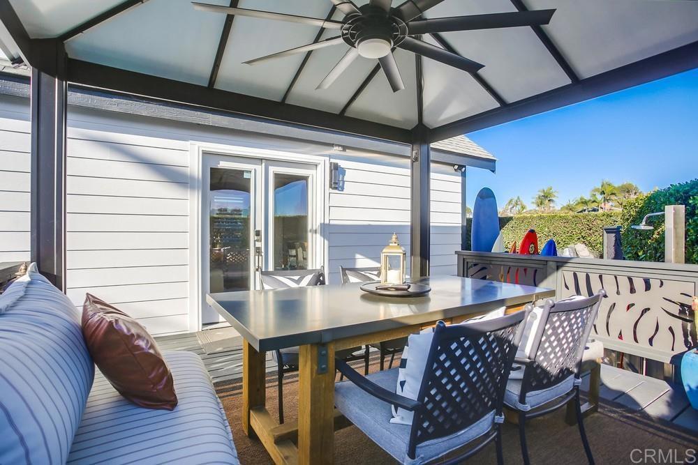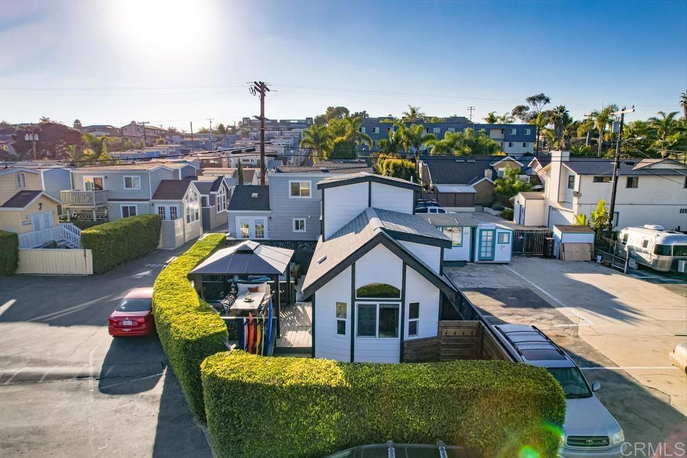 Welcome to Barefoot 101, a gorgeously remodeled Leucadia beach cottage ideally located west of the 101 and just one block from Grandview Beach—perfect for embracing the quintessential coastal lifestyle. This beautifully appointed 2-bedroom, 1-bath home features one bedroom on the main level and a spacious upstairs loft with an additional office area. The all-new kitchen is outfitted with Viking appliances and the living room opens through French doors to the outdoors, inviting you to enjoy San Diego’s year-round sunshine. Additional highlights include inside laundry and air conditioning for modern comfort. Step outside to a private, fully fenced yard complete with a covered deck, spa, and outdoor living area—ideal for entertaining or relaxing after a day at the beach. The property also offers abundant interior and exterior storage, a hot outdoor shower, and a few steps down to your own private, beachy sitting area. Along the side of the cottage is a generous covered storage space, perfect for surfboards, e-bikes, and all your beach toys. Walk or bike to world-class surf breaks, beaches, and Leucadia’s favorite shops, restaurants, coffee spots, wineries, and breweries. Barefoot 101 is truly walkable to everything Leucadia has to offer. This home is completely turn-key and offered fully furnished. There is no traditional property tax or HOA, with a monthly space rent of $2,495. Ideal as a primary residence, vacation home, or investment property, the home also boasts a successful rental history.