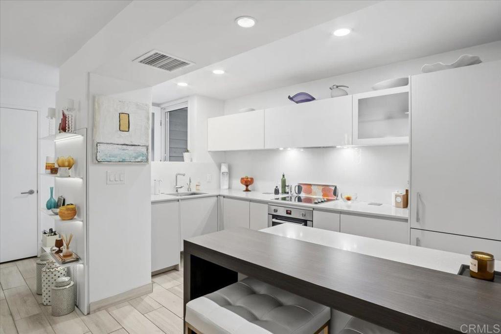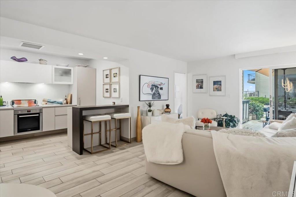 Welcome to Pacific Panorama! This beautiful 19 unit gated community is situated on the bluff and offers expansive ocean views all the way from La Jolla to Dana Point! This single level home is conveniently located on the ground level and offers two ensuite bedrooms and highly upgraded designer finishes throughout! Some of the many features include a Leicht Design kitchen, (known for modern aesthetics and high functionality) top of the line appliances, custom lighting, porcelain wood-look flooring throughout and a thoughtful use of space! Additional features include newish dual pane windows, 2 patios overlooking the sparkling pool to the ocean beyond, a covered carport with EV hookup plus easy access to the home. Pacific Panorama is ideally located to downtown Encinitas and all of the many restaurants, shops , Coaster Station, Library and to the pristine beaches of Swamis and Moonlight Beach! A wonderful coastal retreat for vacations or year-round living with friendly neighborly gatherings on the lawn to enjoy the breathtaking sunsets and gentle ocean breezes ... A True Gem!