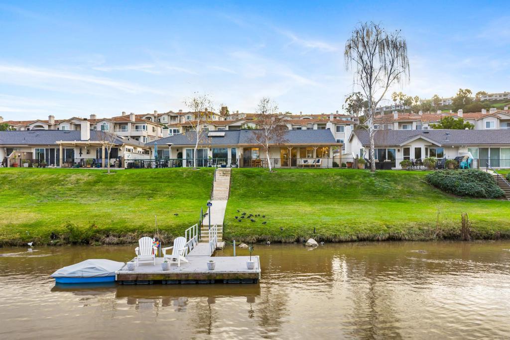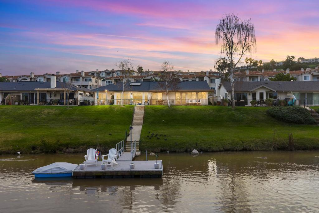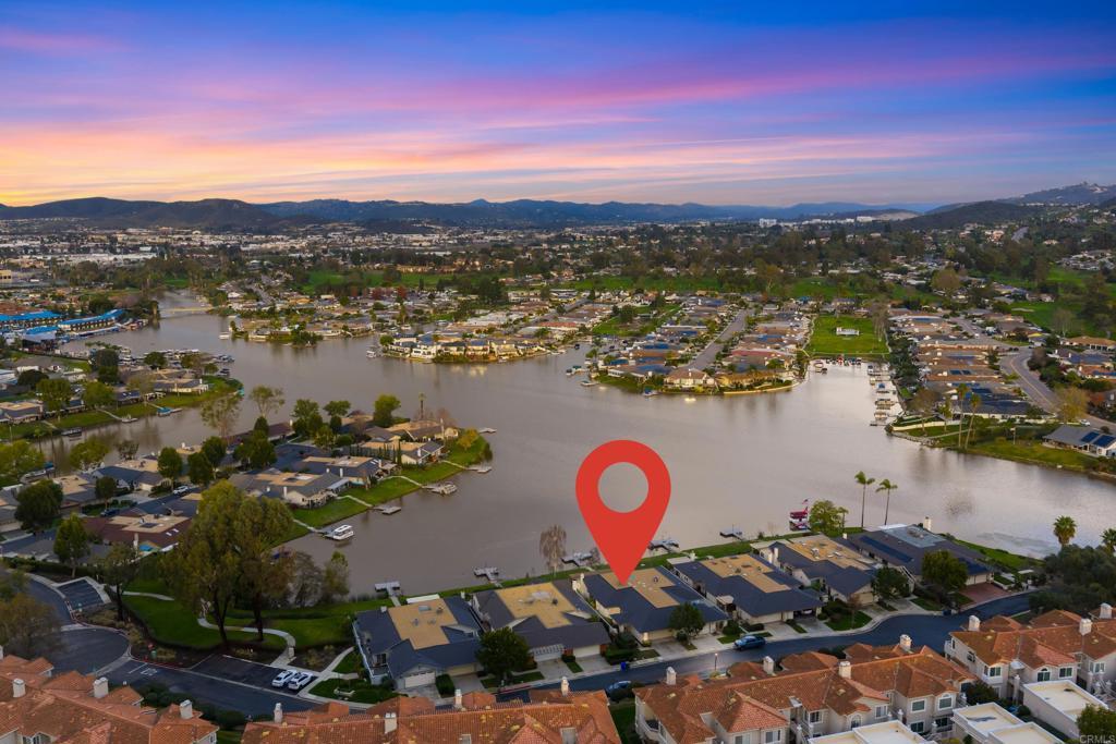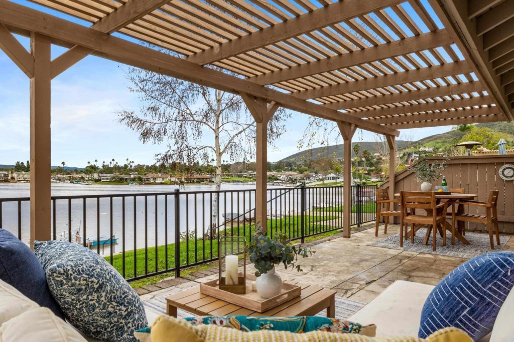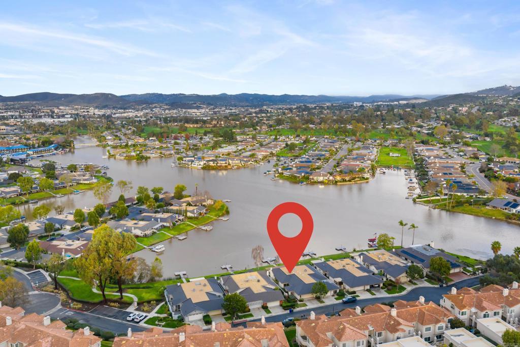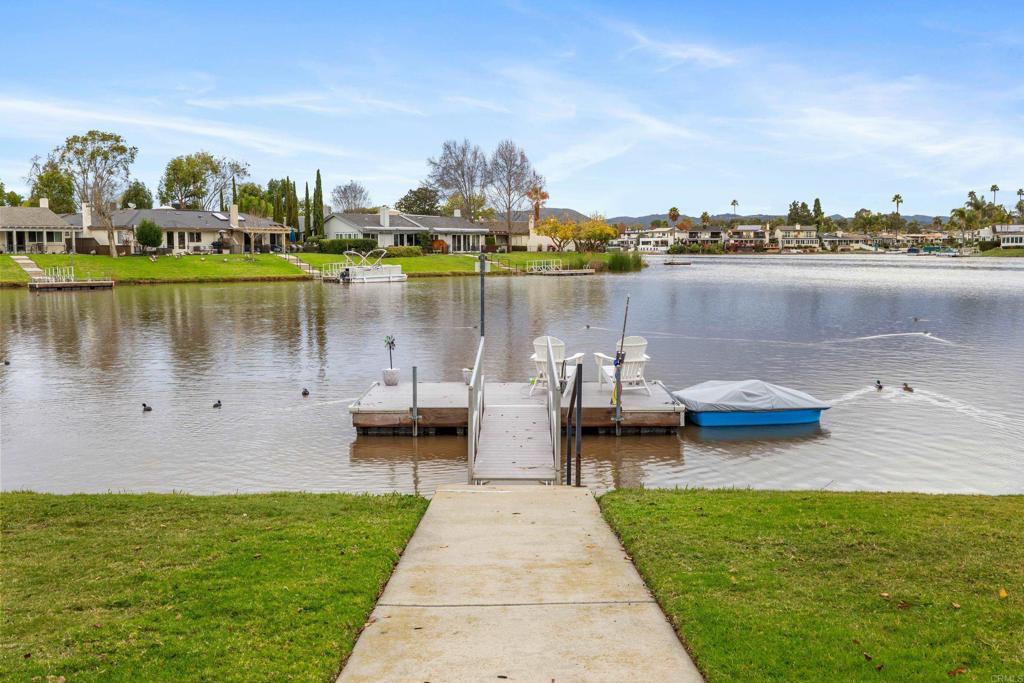 Welcome to exquisite luxury living and your own private dock at beautiful Lake San Marcos! Nestled on a quiet, single-loaded cul-de-sac, this beautifully renovated single level twin home features the upgrades and floor plan you've been looking for. You are welcomed by elevated ceilings in the large living room that adjoins the highly upgraded kitchen which comes complete with quartz countertops, custom cabinetry, and stainless steel oven/6-burner cooktop, dishwasher, under counter microwave, and refrigerator. The spacious primary suite features an elevated ceiling, plenty of closet space, and beautifully appointed bathroom with dual sinks. The large secondary bedroom features direct access to the gorgeous secondary bathroom as well as the side of the home. Tons of new LED lighting throughout the home plus beautiful luxury vinyl plank flooring. You will want to spend as much time as possible enjoying the lake and mountain view on your wonderful covered patio that leads to your own private dock. The two car garage has a separate entrance and has plenty of overhead storage. Lake San Marcos is a highly coveted community in North County. Spend your time at the swimming pools and billiard room, enjoy the year 'round community activities, rent a boat or kayak to enjoy on the lake, dine at the fabulous restaurants, you may never want to leave the community! If you do, you will be very close to tons of shopping, restaurants, freeways, businesses, and so much more. Welcome home!