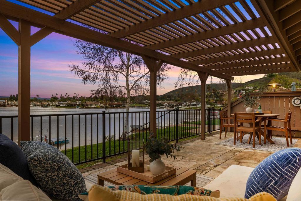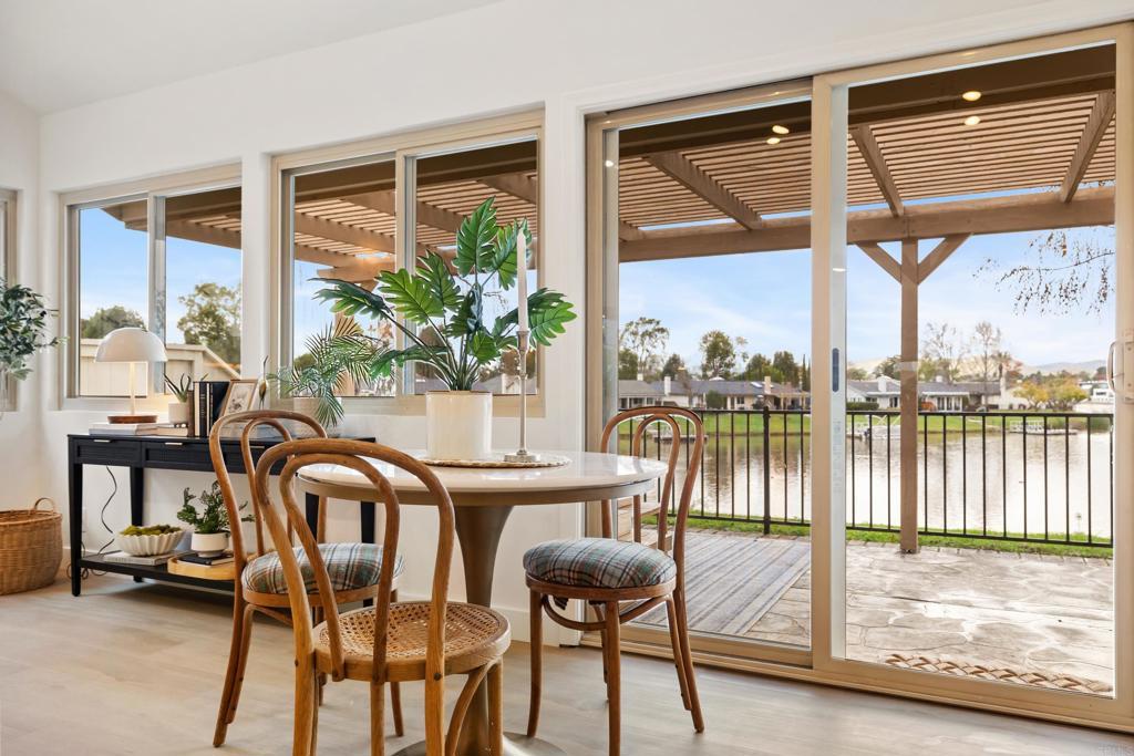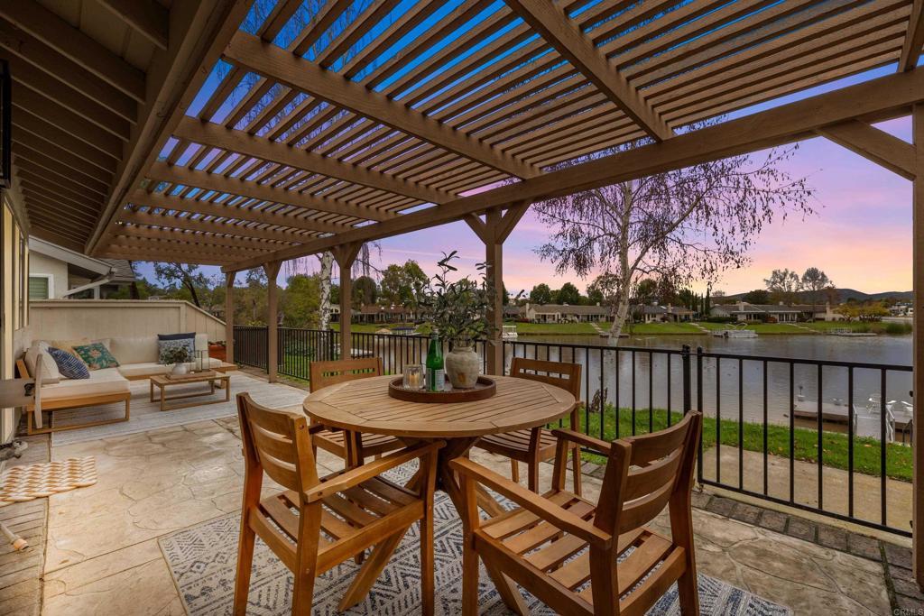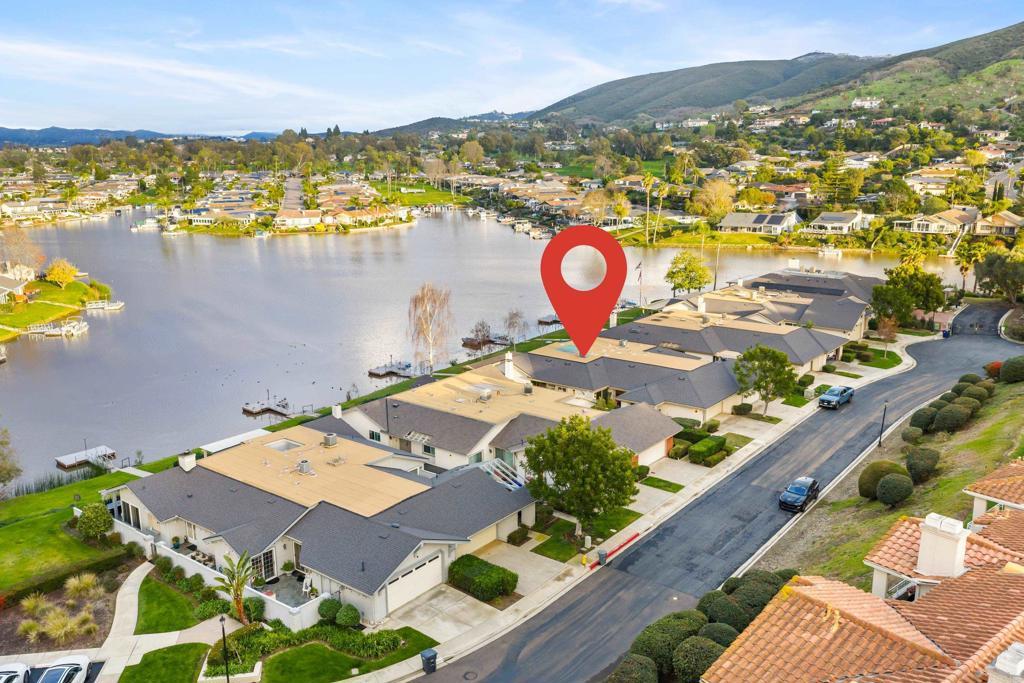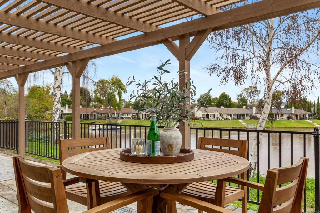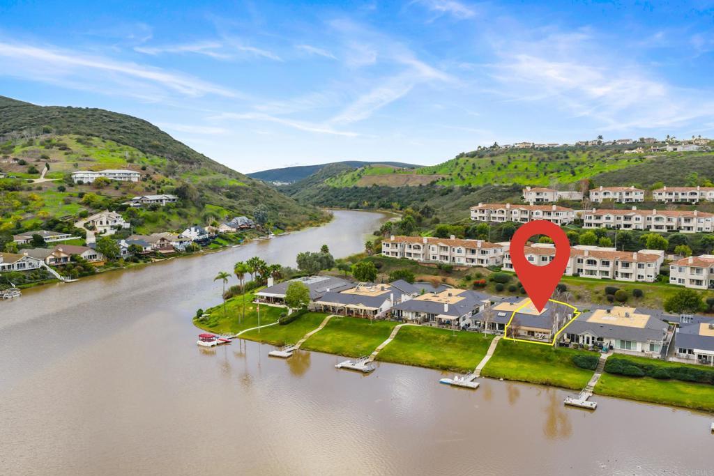 Welcome to exquisite luxury living and your own private dock at beautiful Lake San Marcos! Nestled on a quiet, single-loaded cul-de-sac, this beautifully renovated single level twin home features the upgrades and floor plan you've been looking for. You are welcomed by elevated ceilings in the large living room that adjoins the highly upgraded kitchen which comes complete with quartz countertops, custom cabinetry, and stainless steel oven/6-burner cooktop, dishwasher, under counter microwave, and refrigerator. The spacious primary suite features an elevated ceiling, plenty of closet space, and beautifully appointed bathroom with dual sinks. The large secondary bedroom features direct access to the gorgeous secondary bathroom as well as the side of the home. Tons of new LED lighting throughout the home plus beautiful luxury vinyl plank flooring. You will want to spend as much time as possible enjoying the lake and mountain view on your wonderful covered patio that leads to your own private dock. The two car garage has a separate entrance and has plenty of overhead storage. Lake San Marcos is a highly coveted community in North County. Spend your time at the swimming pools and billiard room, enjoy the year 'round community activities, rent a boat or kayak to enjoy on the lake, dine at the fabulous restaurants, you may never want to leave the community! If you do, you will be very close to tons of shopping, restaurants, freeways, businesses, and so much more. Welcome home!