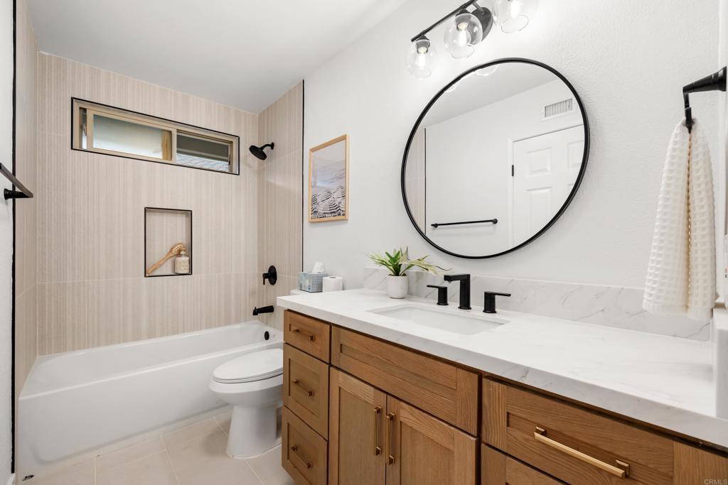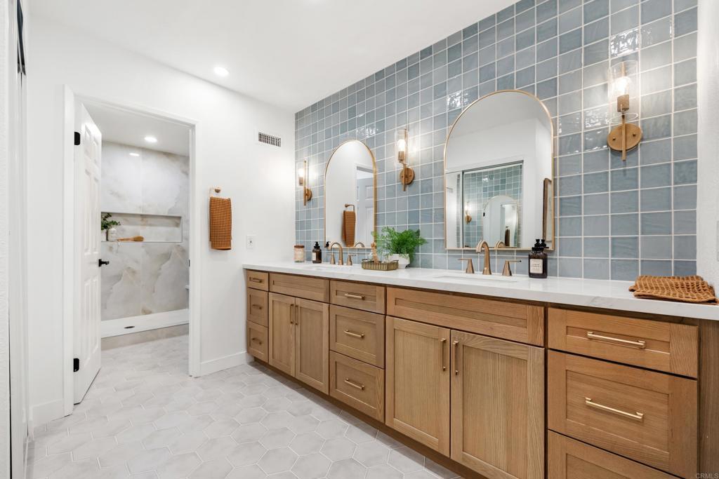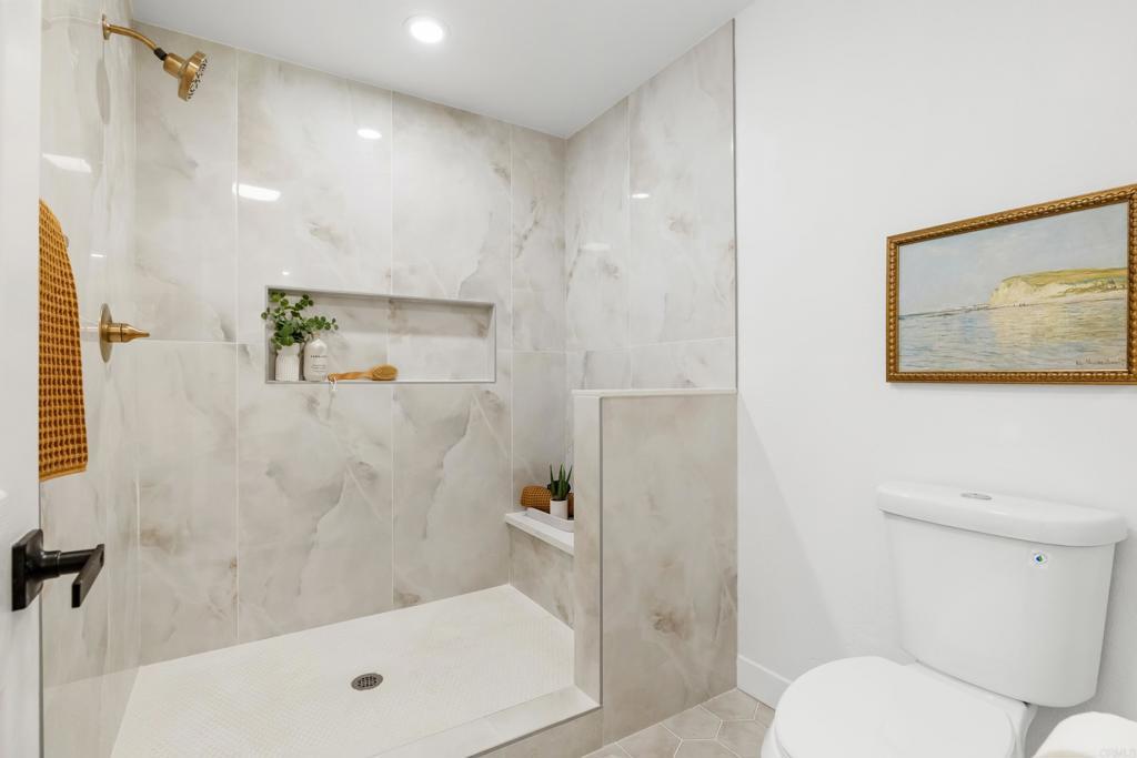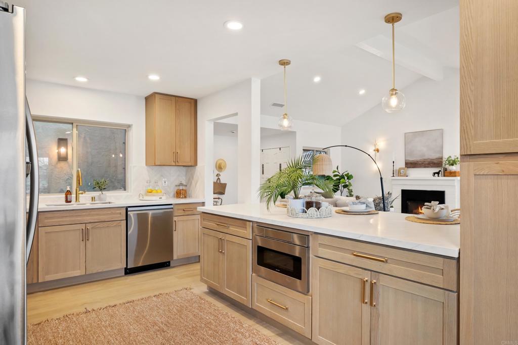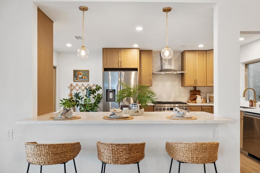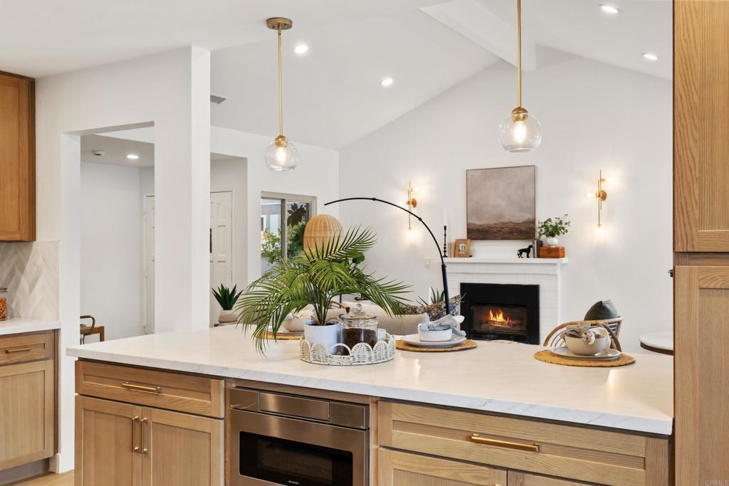 Welcome to exquisite luxury living and your own private dock at beautiful Lake San Marcos! Nestled on a quiet, single-loaded cul-de-sac, this beautifully renovated single level twin home features the upgrades and floor plan you've been looking for. You are welcomed by elevated ceilings in the large living room that adjoins the highly upgraded kitchen which comes complete with quartz countertops, custom cabinetry, and stainless steel oven/6-burner cooktop, dishwasher, under counter microwave, and refrigerator. The spacious primary suite features an elevated ceiling, plenty of closet space, and beautifully appointed bathroom with dual sinks. The large secondary bedroom features direct access to the gorgeous secondary bathroom as well as the side of the home. Tons of new LED lighting throughout the home plus beautiful luxury vinyl plank flooring. You will want to spend as much time as possible enjoying the lake and mountain view on your wonderful covered patio that leads to your own private dock. The two car garage has a separate entrance and has plenty of overhead storage. Lake San Marcos is a highly coveted community in North County. Spend your time at the swimming pools and billiard room, enjoy the year 'round community activities, rent a boat or kayak to enjoy on the lake, dine at the fabulous restaurants, you may never want to leave the community! If you do, you will be very close to tons of shopping, restaurants, freeways, businesses, and so much more. Welcome home!