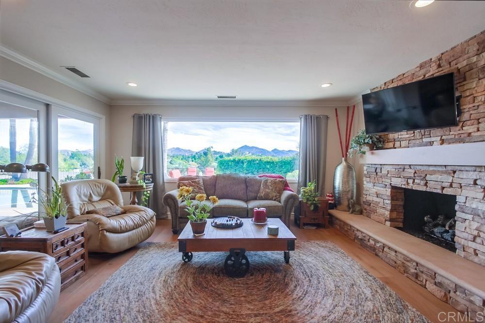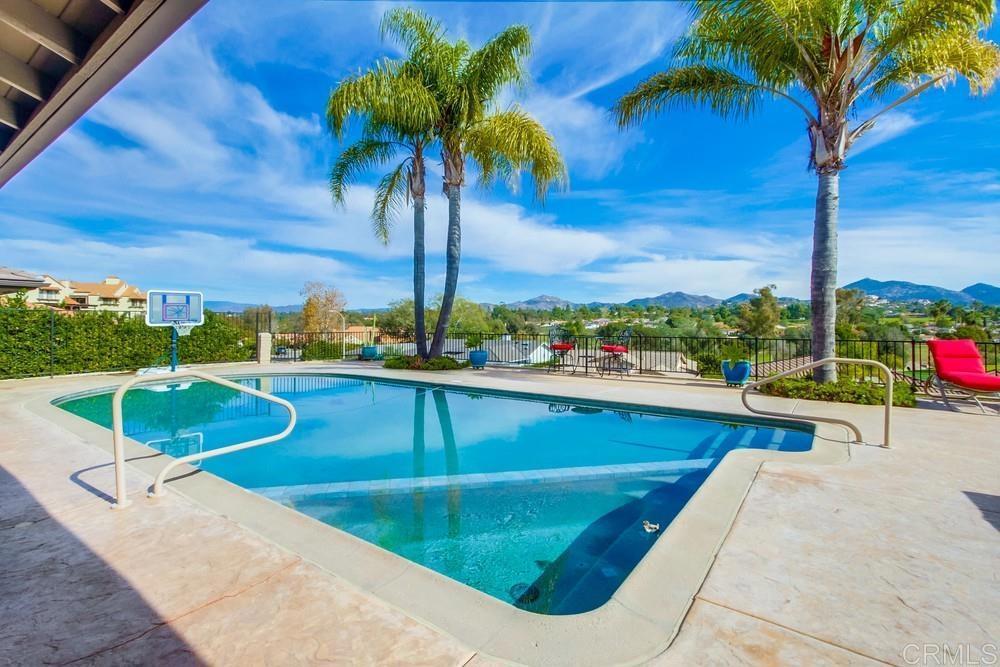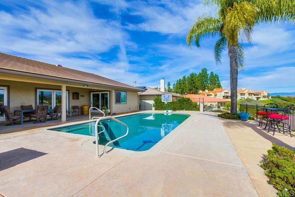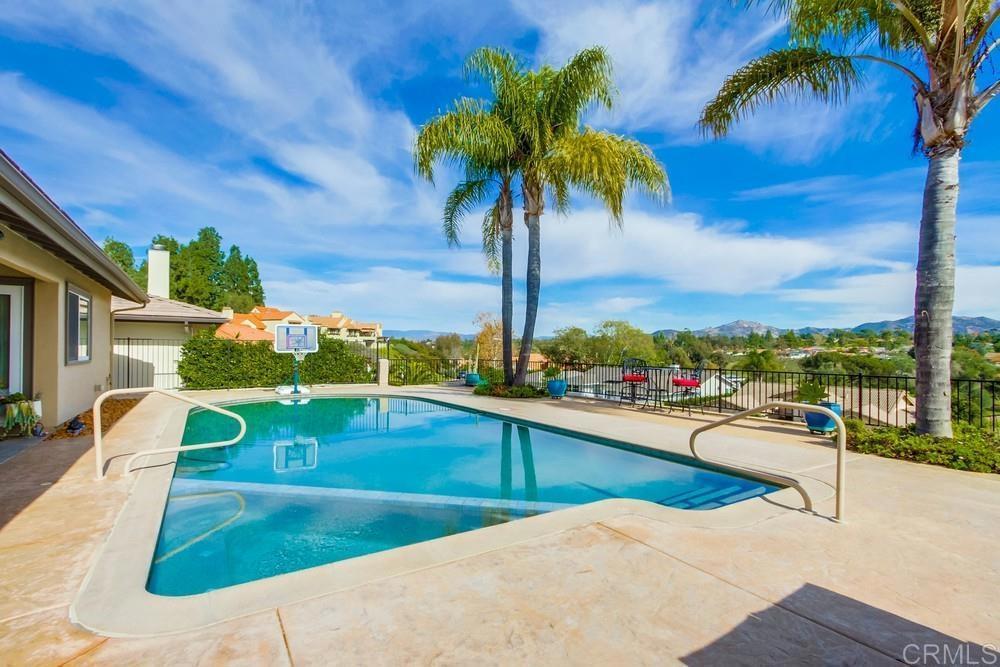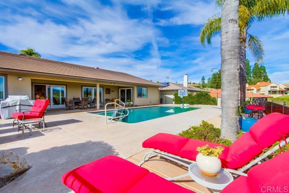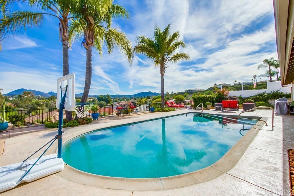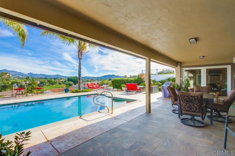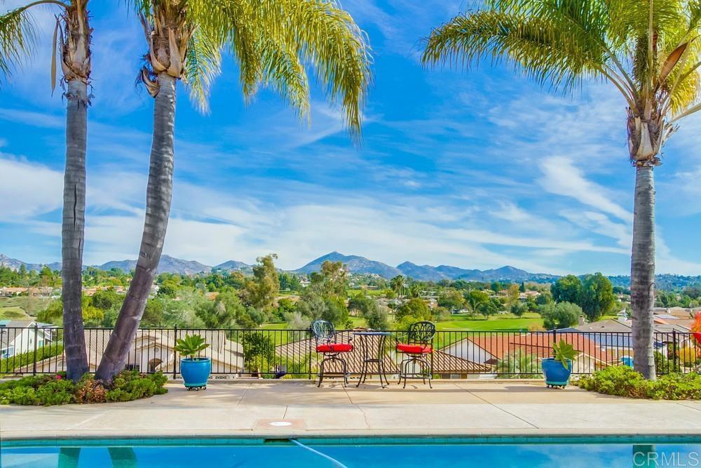 Available February 1, 2026. Pictures show furniture but the home will be unfurnished. Patio furniture and some indoor furniture available If tenants desire. Custom built, single level 3 bedroom 2.5 bath home with spectacular panoramic view. Totally remodeled in 2018. Kitchen, floors, electrical, baths. Paver driveway, sidewalk front porch. Custom tiled covered back patio overlooking pool deck and golf course, mountain view. European white oak engineered wood flooring in living areas. Carpeted bedrooms with custom tiled baths. Upgraded kitchen with quiet Bosch dishwasher, GE Profile induction cooktop (will include compatible cookware if needed), microwave and combination conventional/convection oven and warming drawer. Washer, Dryer and 2 Refrigerators included. All new doors, hardware, baseboards and crown molding installed in 2018. Artificial turf in front yard. Property is low maintenance with weekly yard and pool service included. All electrical updated and upgraded in 2018. Built-in entertainment wall in living room. Third bedroom functions as office but does have a closet and a Murphy bed. Garage is oversized 2 1/2 car with epoxy floor. Home is a flexible, great room concept and is wonderful for entertaining. Prefer no pets, one year lease. Application, credit report and references required. Listing agent is owner and a licensed broker CA DRE 01009445. Call 858-673-3800 with questions and to schedule showing. Showings to begin in January. Please call agent/owner at 858-673-3800 to schedule.