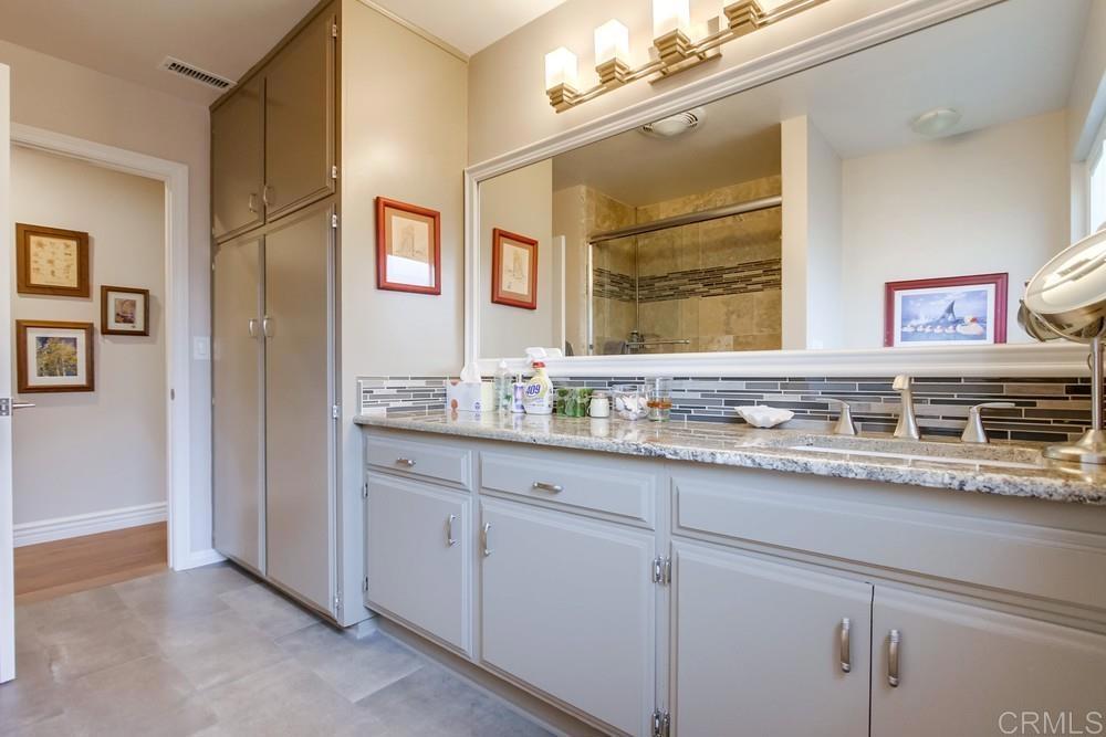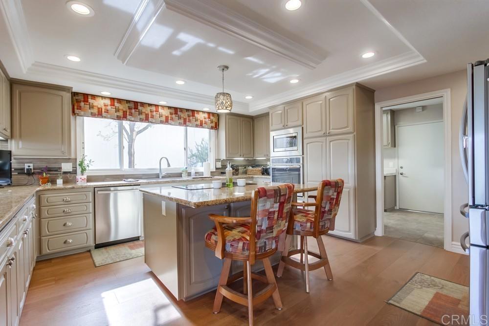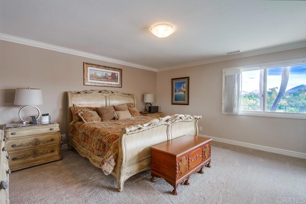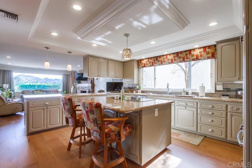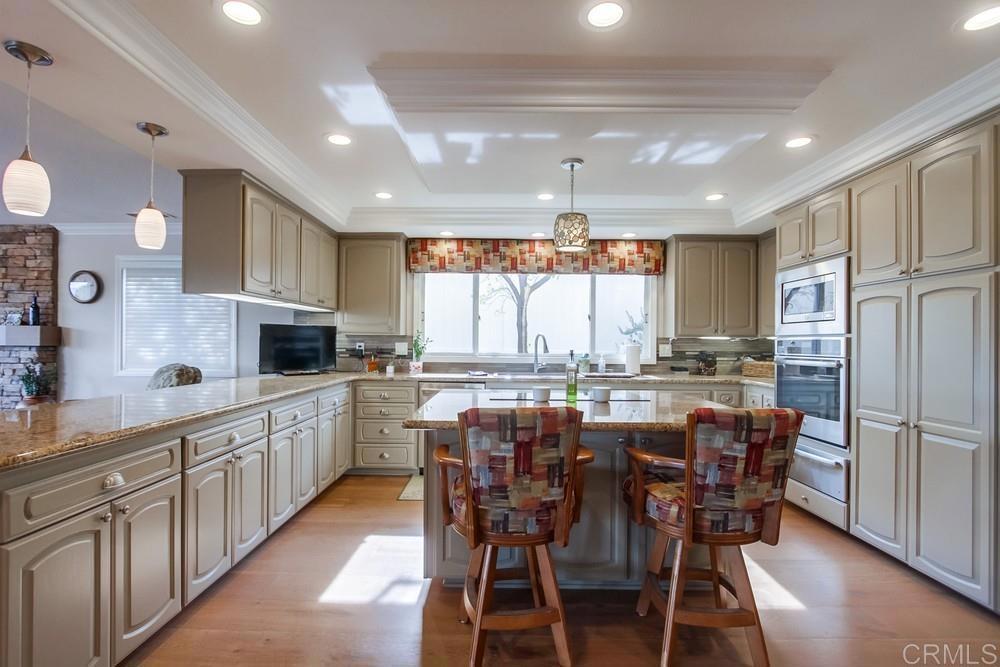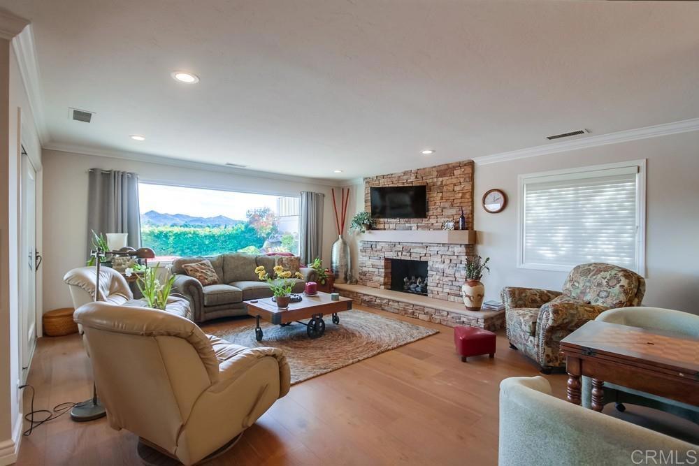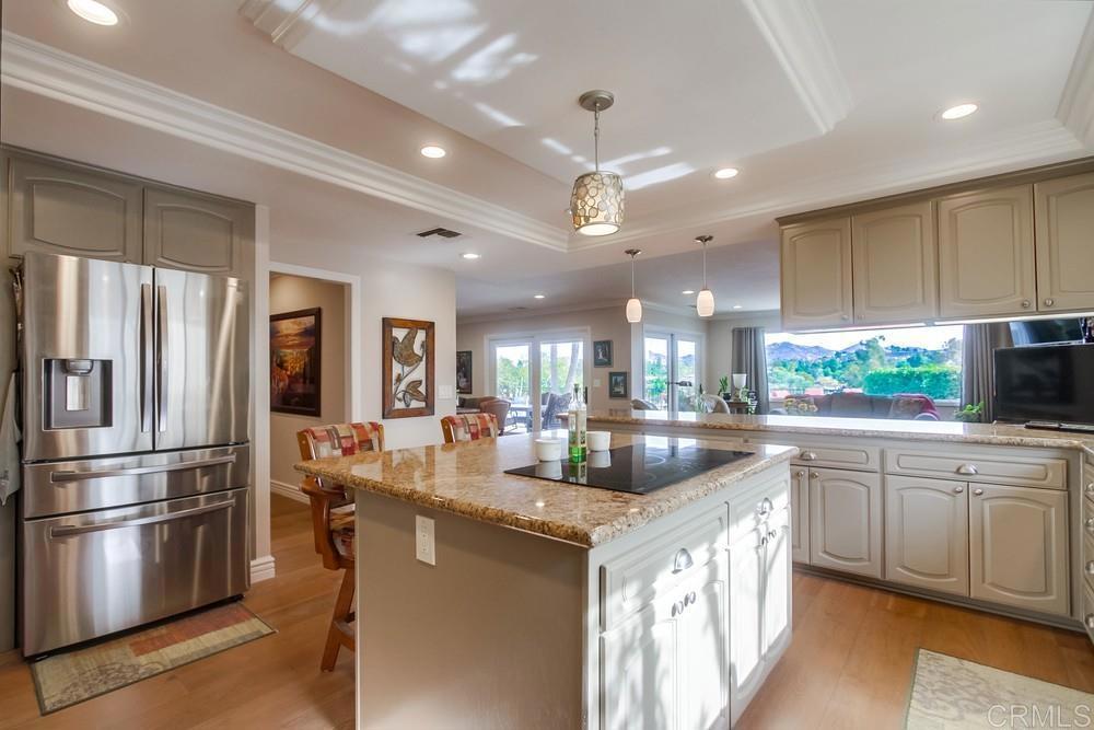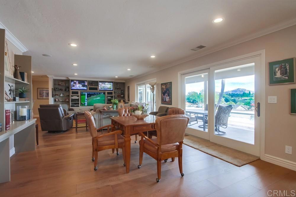 Available February 1, 2026. Pictures show furniture but the home will be unfurnished. Patio furniture and some indoor furniture available If tenants desire. Custom built, single level 3 bedroom 2.5 bath home with spectacular panoramic view. Totally remodeled in 2018. Kitchen, floors, electrical, baths. Paver driveway, sidewalk front porch. Custom tiled covered back patio overlooking pool deck and golf course, mountain view. European white oak engineered wood flooring in living areas. Carpeted bedrooms with custom tiled baths. Upgraded kitchen with quiet Bosch dishwasher, GE Profile induction cooktop (will include compatible cookware if needed), microwave and combination conventional/convection oven and warming drawer. Washer, Dryer and 2 Refrigerators included. All new doors, hardware, baseboards and crown molding installed in 2018. Artificial turf in front yard. Property is low maintenance with weekly yard and pool service included. All electrical updated and upgraded in 2018. Built-in entertainment wall in living room. Third bedroom functions as office but does have a closet and a Murphy bed. Garage is oversized 2 1/2 car with epoxy floor. Home is a flexible, great room concept and is wonderful for entertaining. Prefer no pets, one year lease. Application, credit report and references required. Listing agent is owner and a licensed broker CA DRE 01009445. Call 858-673-3800 with questions and to schedule showing. Showings to begin in January. Please call agent/owner at 858-673-3800 to schedule.