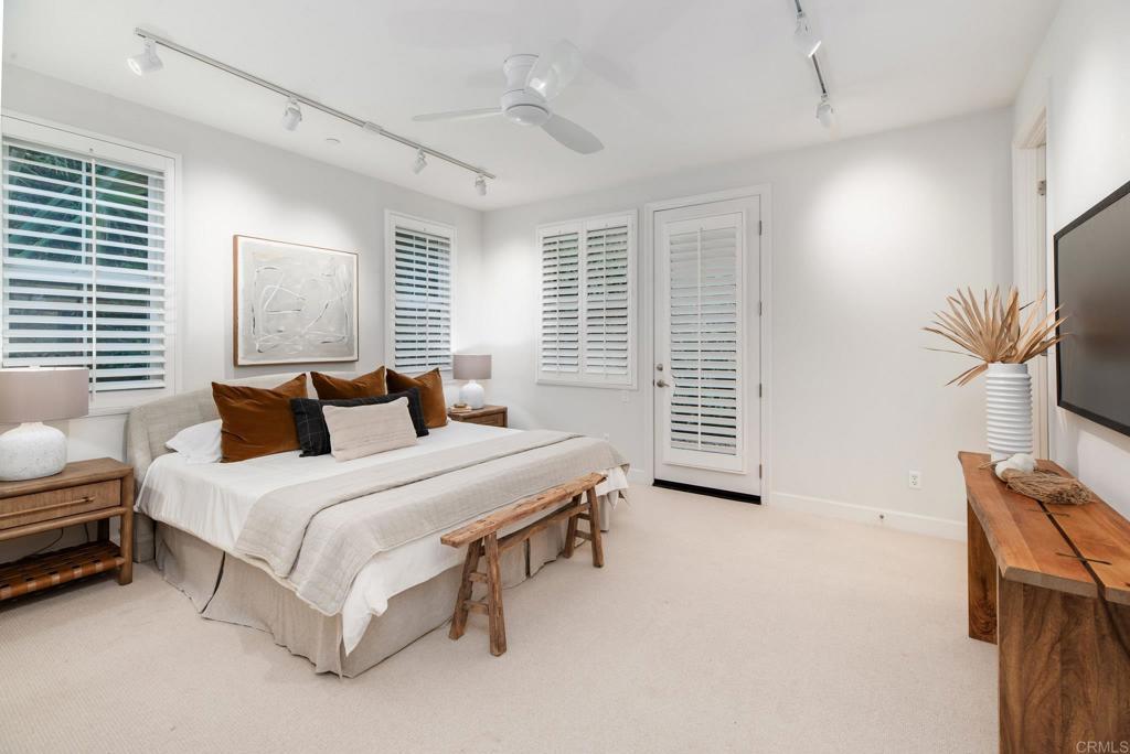 The perfect family retreat less than a mile from the beach, this residence combines spacious design with a lush, tropical atmosphere. Ideally situated along the coast and within walking distance of shops, dining, and hiking trails, the 5-bedroom home rests on a 0.36-acre corner lot with a sparkling pool and no neighbor on one side. Inside, soaring ceilings highlight a thoughtful floor plan that includes a main-level suite with a full bath and private outdoor access. The chef’s kitchen is equipped with GE appliances, dual convection ovens, a griddle, warming drawer, pot filler, and hidden spice racks built seamlessly into the decorative range columns. A nearby powder bath for guests and a spacious laundry room add convenience. All five bedrooms feature en-suite baths with tiled tub surrounds, walk-in closets, and timeless plantation shutters. The primary suite serves as a private sanctuary, complete with dual walk-in closets and a serene, restful ambiance. Designed for effortless indoor-outdoor living, the home offers multiple patios and a covered courtyard with a fireplace—recently enclosed for enhanced privacy. The resort-style backyard boasts turf, vibrant landscaping, a soothing fountain, and a sparkling pool and spa, creating the perfect setting for entertaining or relaxing under the sun. Bonuses include owned Tesla solar and a powerwall back up battery. Close to the San Diego Botanic Garden, Encinitas Ranch Golf Course, the Coastal Rail Trail, Moonlight Beach, and more—this home truly has it all. Welcome home.