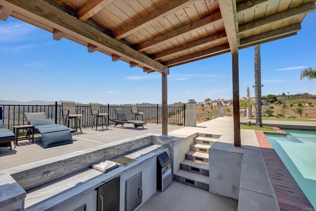 Best deal in Valley Center. Experience seclusion, luxury, natural beauty on over 8 private acres perched atop your own mountain with panoramic views of rolling hills, cliffsides, and valleys below. Property includes, Main Residence 5,045 sq ft of striking design and thoughtful layout. Guest House 1,550 sq ft, currently rented at $2,500/month to a professional, well-established couple on a month-to-month lease. They’re quiet, out of sight halfway down the hill, and willing to vacate before close of escrow if requested. Casita: Private bath and kitchenette—ideal for guests or extended family. Resort-style amenities include a solar-heated pool and spa with sunken bar, fully lit basketball/pickleball/sports court, putting green, gas fire pit, cantilevered deck, and walking trails. Practical upgrades: dual HVAC, tankless water heaters, whole-house generator, 240V car charger, smart gate entry, security system with cameras, and ample parking (Porte cochère, carport, RV pad/workshop ready). Despite its privacy, the estate is just minutes from top-rated schools, wineries, golf, a private country club, casinos, and quick I-15 access to Temecula, San Diego, and beyond. Whether for entertaining, multi-generational living, or income potential, this rare sanctuary offers the perfect blend of peace, privacy, and convenience. Furnishings available for transfer.