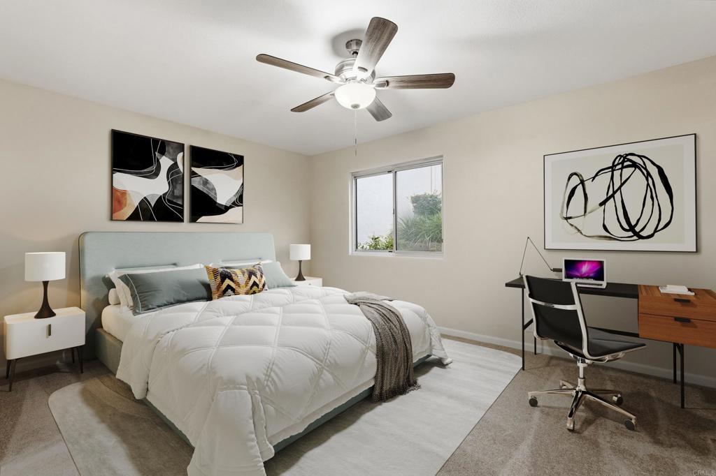 Expansive ocean views and minutes from Carlsbad beaches, this recently refreshed townhome offers the perfect opportunity to live the North County coastal lifestyle. Move-in ready with new modern light fixtures, freshly painted interiors, and carpet throughout. The spacious open great room features vaulted ceilings, fireplace, and sliding doors to the balcony that frame the panoramic ocean view. The layout includes dual primary bedrooms, each with a built-in custom closet and ensuite bath. Additional highlights include in-unit laundry, a detached 1-car garage, and ample parking for a second vehicle and guests. Community amenities include a pool & spa, sauna, clubhouse, and scenic walking trails. Water usage, including hot water, as well as multiple other utilities are covered by the HOA. Located in the top-rated Carlsbad Unified school district, and close to beaches, parks, shopping, and dining.