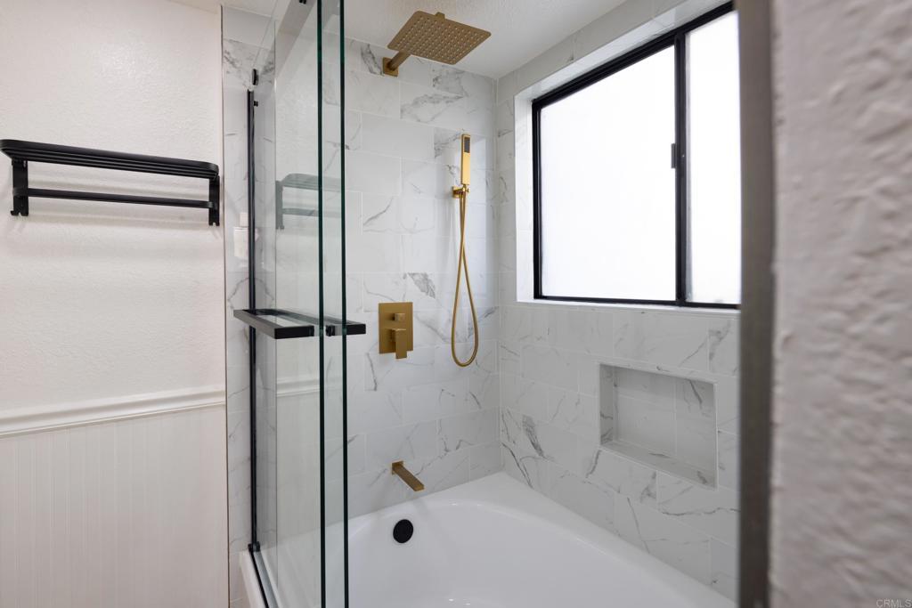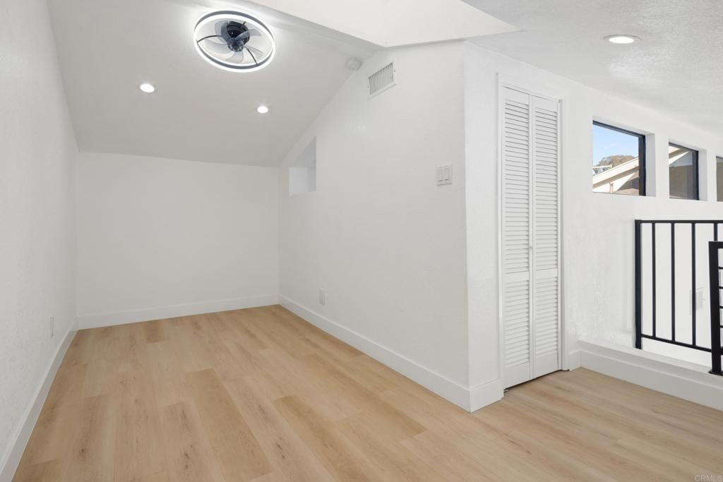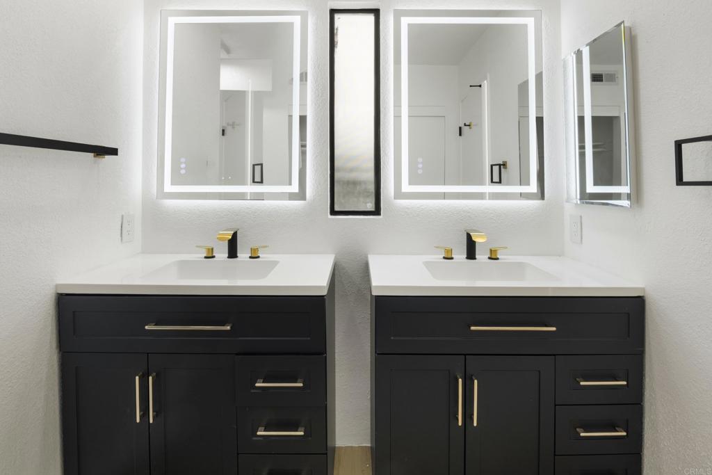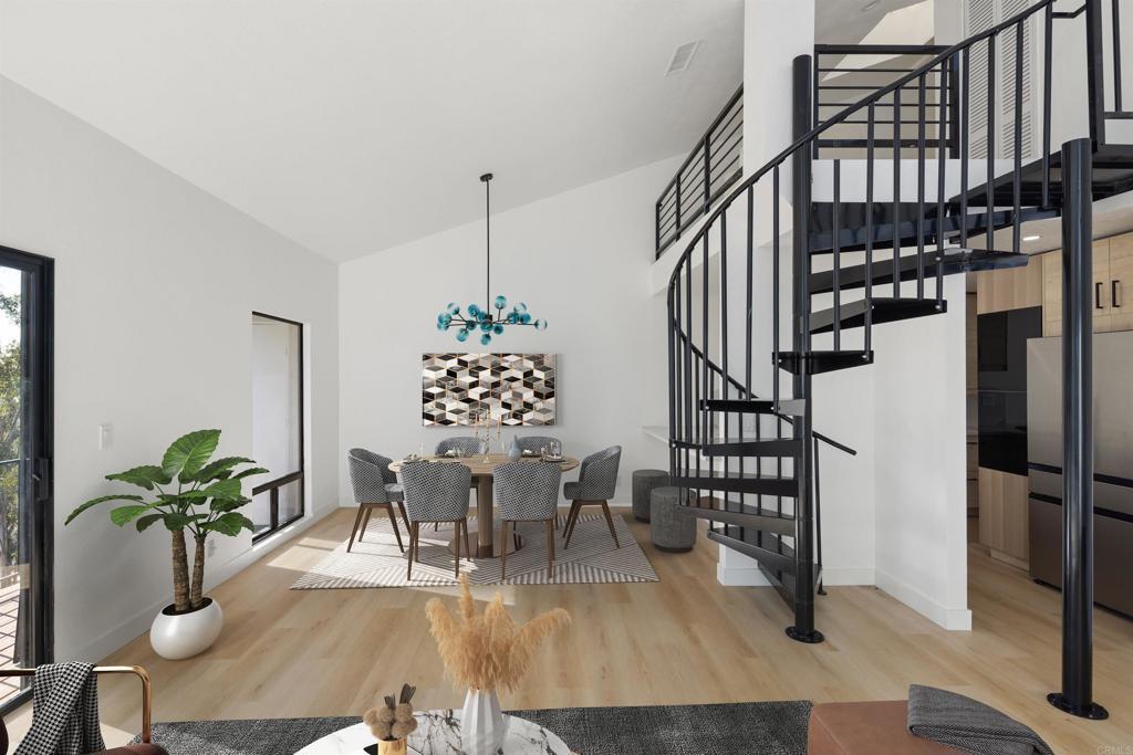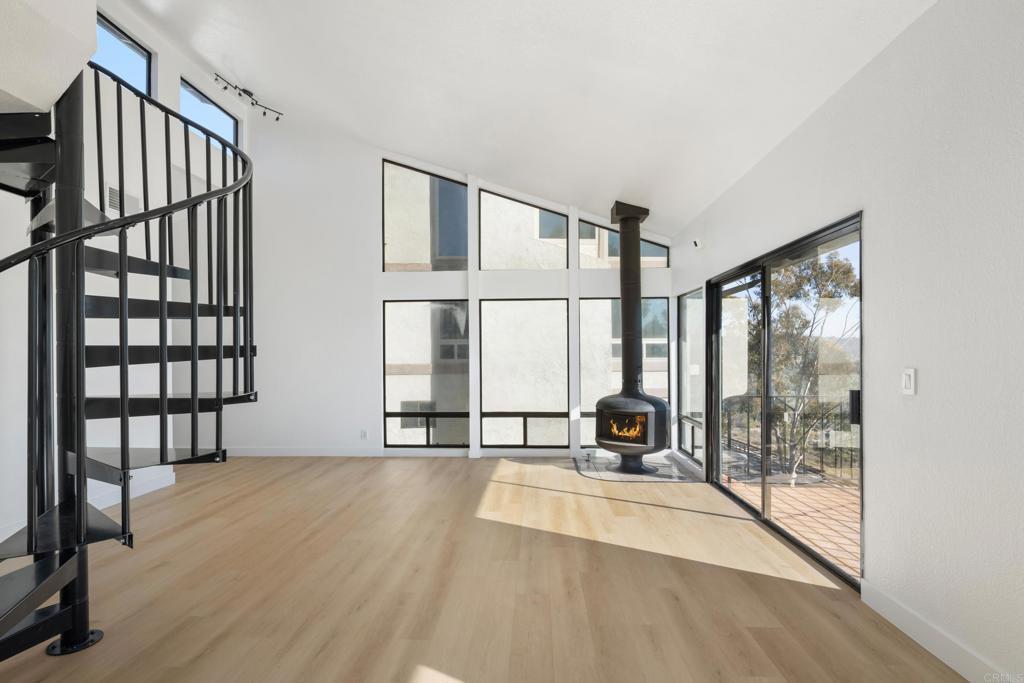 This completely remodeled home—with new luxury vinyl flooring, updated plumbing fixtures and vanities, sleek ceiling fans, and a new three-ton HVAC—features oversized windows and large balconies to enjoy the serene, south-facing views overlooking the beautiful Tierrasanta hills. The newly built, permitted loft above the entry level adds 168 sq ft of versatile living space, complete with a skylight—ideal for an office, media room, or reading nook. The freshly remodeled kitchen is a home chef's dream with new cabinetry and appliances: a 36" induction cooktop, high-end fridge, combo oven and microwave, and dishwasher. The entry level has a newly permitted full bath, expanded from a half bath, and is coupled with a smart mirror, as are the two other bathrooms. Downstairs, you'll find the two ensuite bedrooms, each with its own balcony and an updated full bathroom. Further adding to this house's desirability is its attached oversized two-car garage with ample storage, access to a well-maintained community pool, and proximity to the scenic Mission Trails Rim Trailhead. *Please note: all staged pictures displayed in this listing are virtually staged. The unedited, original version of each staged picture is placed directly after its counterpart. *Please note: Security cameras are installed on the property, including a Ring camera at the front door and another in the living room.