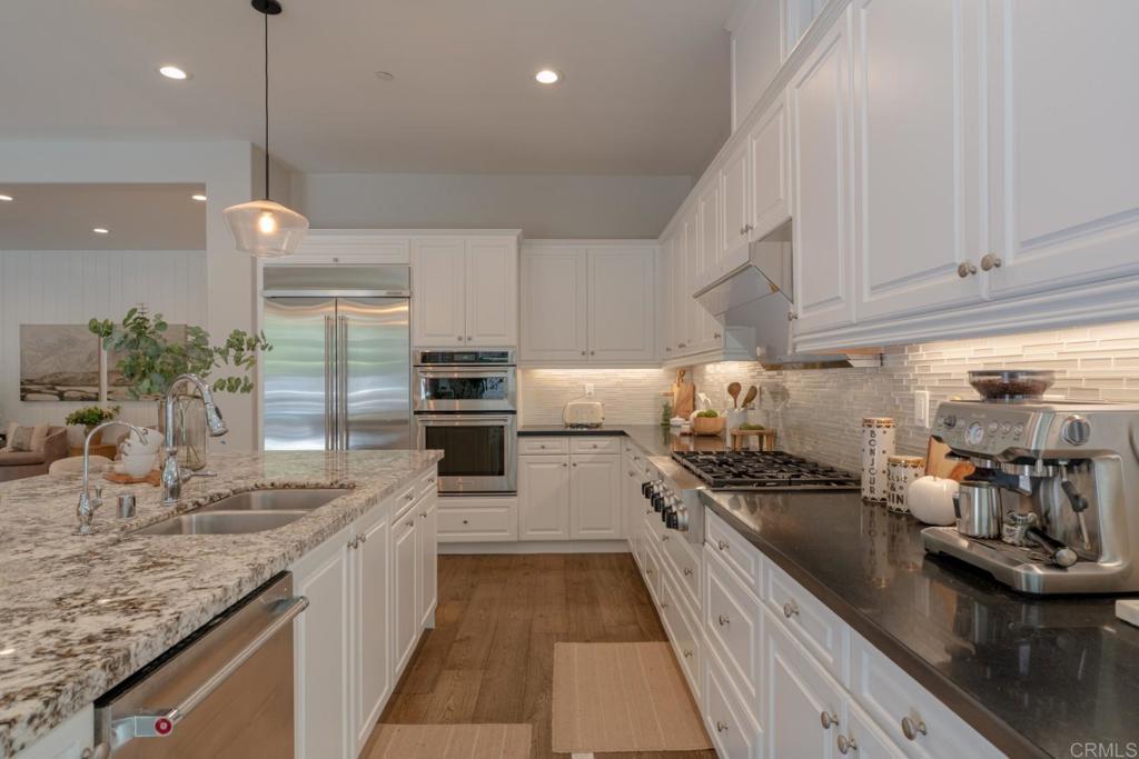 Well-maintained residence located in the desirable Heritage Bluffs II community. This 5-bedroom, 4-bathroom home offers a bright and functional open-concept floor plan with high ceilings and abundant natural light. Originally built with approximately $100,000 in builder-installed upgrades, including upgraded flooring, kitchen, and bathroom finishes, the home combines quality construction with thoughtful design. The spacious kitchen opens seamlessly to the main living and dining areas, ideal for both everyday living and entertaining. The primary suite provides a comfortable retreat featuring a well-appointed bathroom and his-and-her walk-in closets. Additional highlights include fully owned, paid-off solar, an EV charger, and a whole-house water softener, offering long-term efficiency and modern convenience. Situated on a quiet street within a well-established neighborhood, conveniently located near shopping, dining, parks, and top-rated Poway Unified schools, with easy access to I-15 and CA-56. A great opportunity to own a move-in ready home in one of North County San Diego’s most sought-after communities.