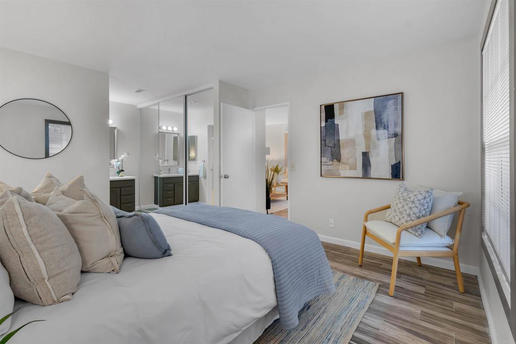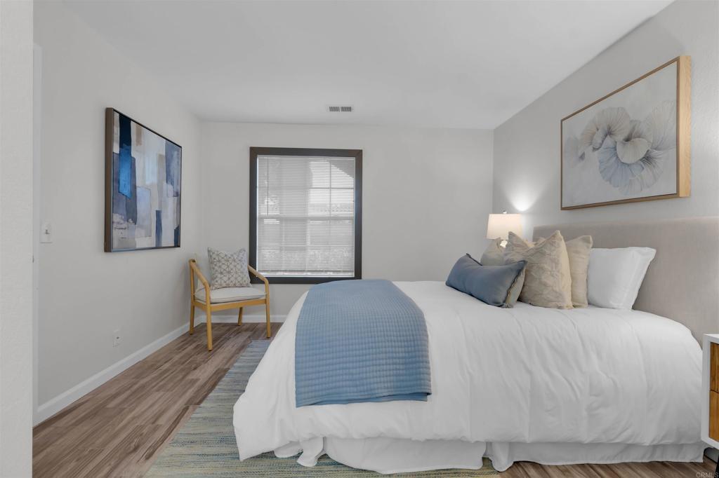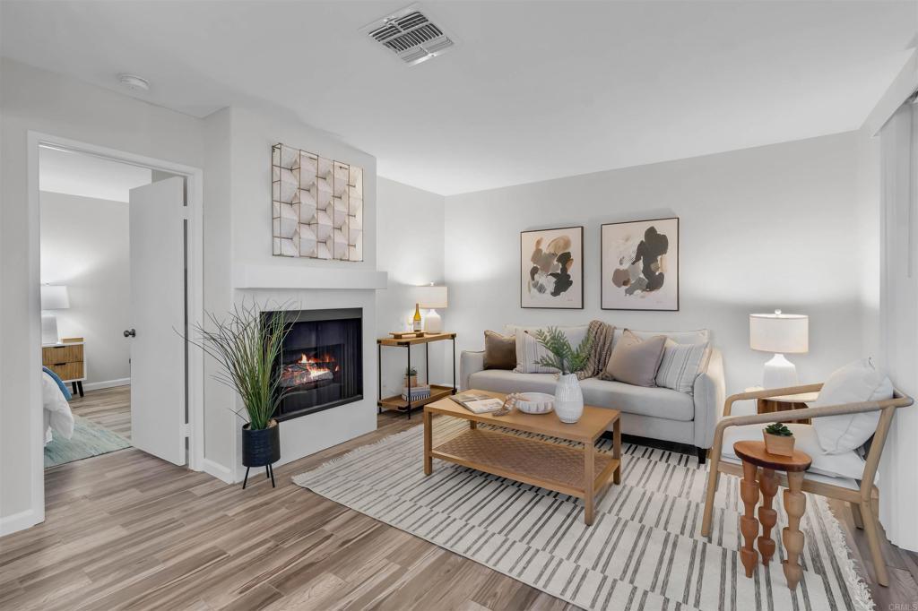 Welcome to a rare ground-floor condo in the desirable Summit Ridge community of Mira Mesa. This 1-bedroom, 1-bath residence is filled with natural light and offers a comfortable, stylish living experience. The kitchen features quartz countertops, crisp white cabinetry, and stainless steel appliances, opening effortlessly into the living area with a gas fireplace and tile flooring throughout. The bedroom offers a spacious layout while central A/C adds year-round comfort. Additional highlights includes 2 assigned parking spaces, ample guest parking, and a private patio ideal for relaxing or entertaining. Residents also enjoy access to resort-style amenities such as a pool, spa, fitness center, and a well maintained greenbelt surrounding the complex.