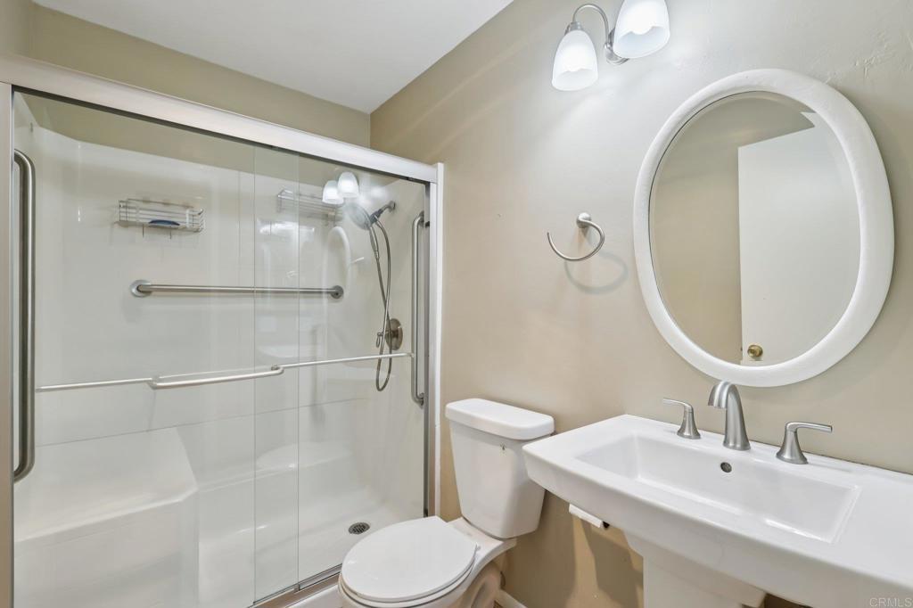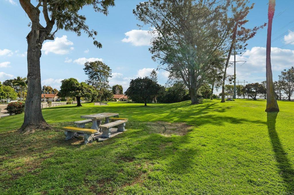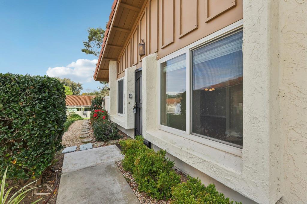 Welcome to this spacious and inviting single-level 3-bedroom, 2-bath end-unit residence offering approximately 1,056 square feet of comfortable living in the highly desirable 55+ community of High Country Villas in Encinitas. One of the largest and most sought-after floor plans in the neighborhood, this bright open layout features generous living and dining areas filled with natural light and framed by peaceful greenbelt and hillside views. The kitchen offers ample cabinetry and counter space and newer Bosch appliances, creating a functional and welcoming heart of the home. The primary suite includes an en-suite bath and expanded closet space, while two additional bedrooms provide flexibility for guests, a home office, or hobby room. The front bedroom is currently open and can easily be converted back to a private bedroom with closet space. Step outside to your enclosed private patio, perfect for enjoying morning coffee, outdoor dining, and taking in refreshing coastal breezes while overlooking tranquil greenbelt surroundings — a wonderful extension of your living space. Additional highlights include vinyl plank flooring, air conditioning, and a single-car detached garage. High Country Villas offers resort-style amenities including a 9-hole executive golf course, swimming pool and spa, pickleball, clubhouse, library, and an active social calendar. Low HOA fees include access to all community amenities. Ideally located just minutes to shopping, dining, medical facilities, freeway access, and under four miles to Moonlight Beach, this home offers the perfect blend of coastal convenience and relaxed, active living.