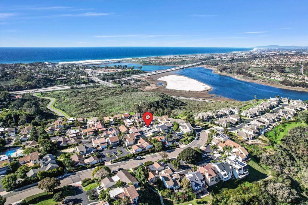 Perched in the coveted Skyloft community, this beautifully updated coastal residence offers panoramic white water ocean and lagoon views that define Southern California coastal living from the moment you arrive. Step inside this thoughtfully remodeled home where modern comfort meets timeless style. The generous 3-bedroom, 3-bath layout spans over 2,200 square feet of living space, designed to maximize the views and natural light throughout. The heart of the home features an updated kitchen with slab marble counters, stainless-steel appliances, and ample storage — perfect for both everyday living and entertaining against the backdrop of endless blue. The primary suite is a true retreat with a fully renovated spa-like bath and custom walk-in closet space, while the upstairs den with built-in shelving and Murphy bed offers flexible living for guests, a home office, or a quiet reading nook. Outside, savor cool ocean breezes and stunning vistas from multiple vantage points, including elevated outdoor spaces that feel worlds away yet are minutes from the best of Encinitas. The property enjoys a two-car garage, easy access to I-5, and proximity to renowned beaches, top dining, and vibrant community amenities. As part of the Skyloft community, homeowners benefit from resort-style features including a clubhouse, pool, spa, and tennis/pickleball courts, making this an ideal retreat for active coastal living. Live the California coastal dream, where every sunset paints the sky and every day feels like a vacation.