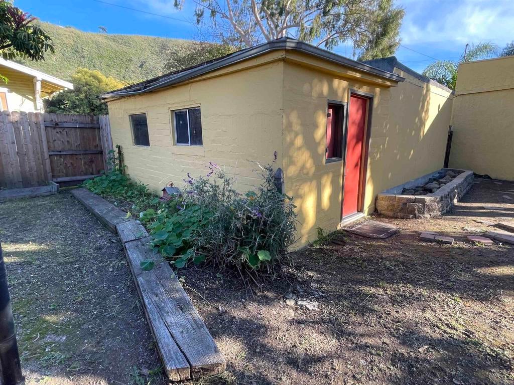 New water heater, electrical upgrades throughout, original hard wood floors in excellent condition with brand new top finish. This property also boasts a sound foundation and nice roof. Choose between wood or gas for your fireplace, both work great. A charming Spanish style, single story home has two bedrooms, one bath and laundry room. A detached two car garage with bonus room in back, and a long driveway in front. This sizable lot has a large, fenced back yard with space to add an ADU. Enjoy the covered front porch and peaceful hillside views all around both front and back. Well cared for trees that include: Avocado, Valencia Orange, Lime, Peach, Jacaranda, White Bird of Paradise, and a Pygmy Date Palm. Located at the end of a quiet street, beautified by mature trees and sidewalks. It's also an easy walk to the beach! All within 2 miles to schools, restaurants, shops, harbor and pier. Or take a peaceful 20 minute drive to Ojai, going through horse country passing Oak View and Casita Springs along the way. Already zoned for R-2!