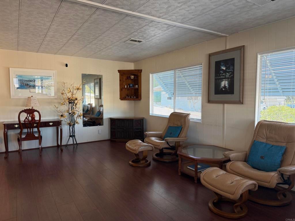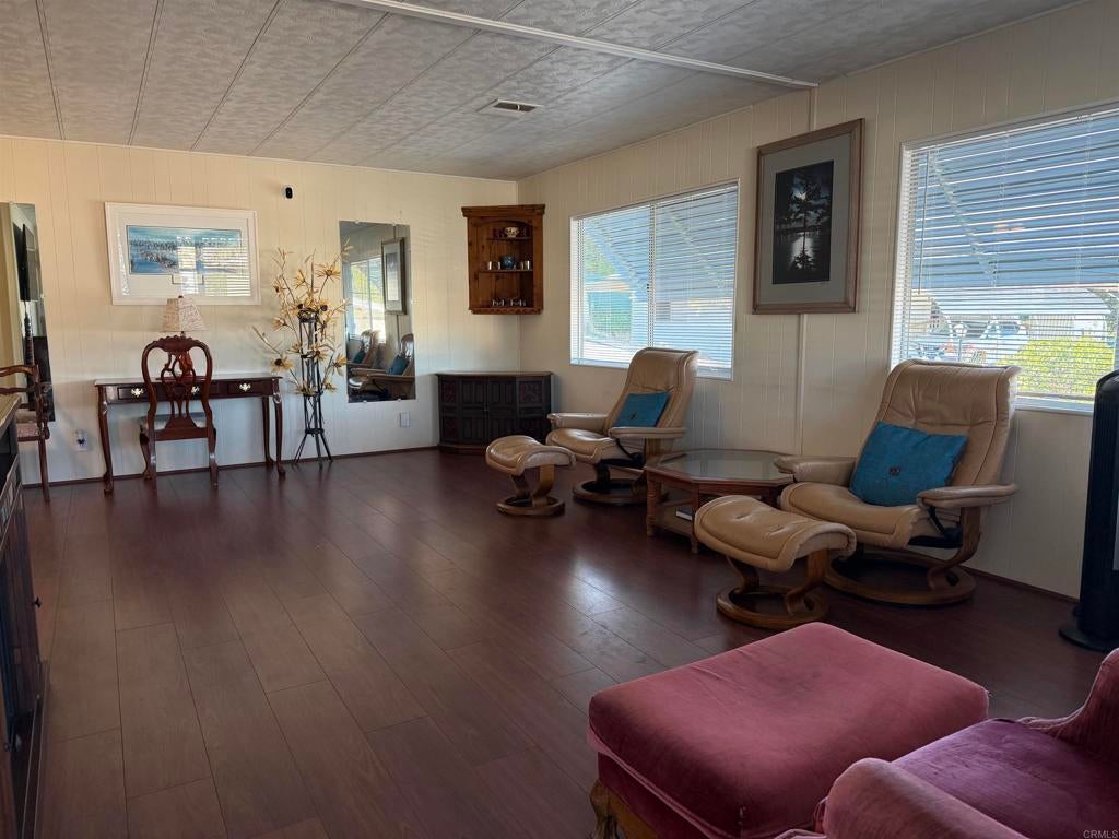 Welcome to your new sanctuary in sunny Vista! Step inside to discover a thoughtfully designed 2 bedroom/2 bathroom 1,440 sq ft. layout that maximizes every square foot of living space. Bright, updated kitchen with shaker cabinetry, stainless steel refrigerator, microwave, dishwasher, mosaic tile backsplash, stainless steel sink and garbage disposal (2023). Kitchen skylight panels updated to LED (2025). Gas furnace and central air conditioning replaced (2024) ensuring comfort year-around. Convenience is the key with a inside laundry room with new washer and dryer (2024). Brand NEW ROOF (2024). All new luxury vinyl plank flooring throughout the home (2023) and all floor vents cleaned (2025). The primary bedroom serves as your personal retreat, complete with its own full bathroom for added privacy and convenience. The second bedroom offers versatility—whether you need a guest room, home office, or creative studio, this space adapts to your lifestyle needs. Parking is a breeze with a carport for 2 cars plus a shed for storage. Ample guest parking close by. Indulge in the amenities of this vibrant 55+ community, including a pool, spa and clubhouse. Located just minutes from the beach, with easy access to freeways, shopping, dining, hospitals and more. Space fee covers sewer, trash and water. Schedule your private showing today and discover why this Vista address could be your perfect next chapter!