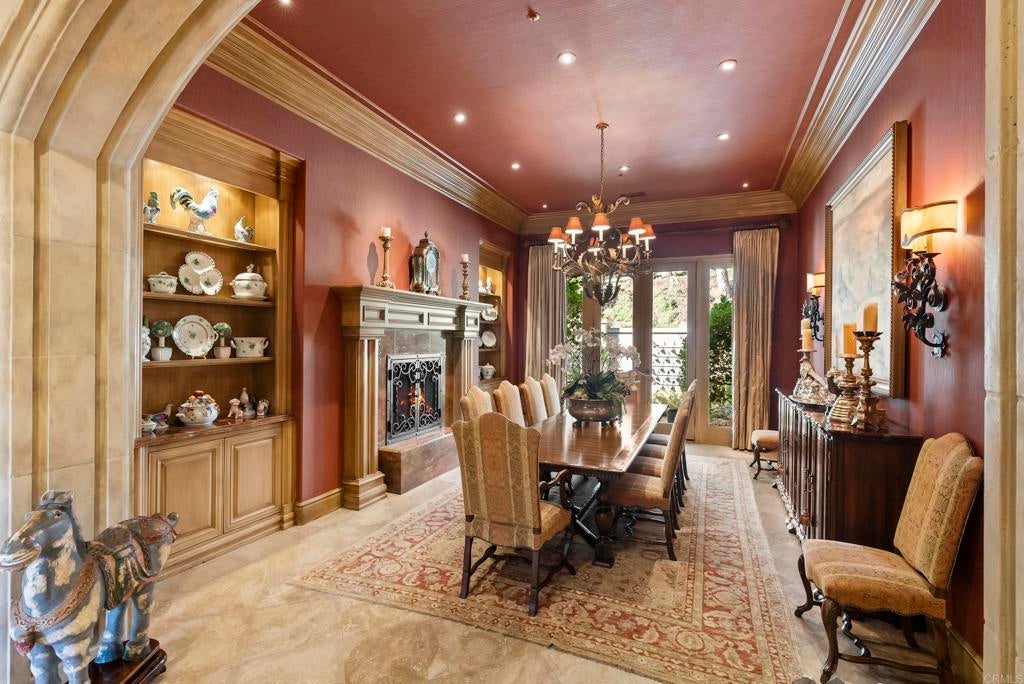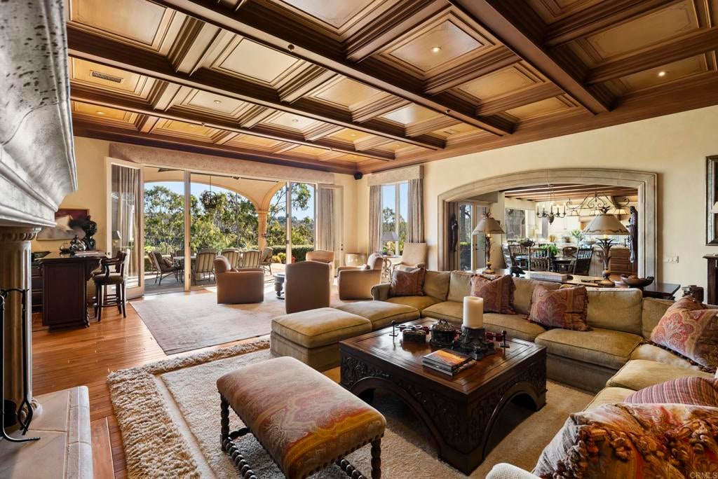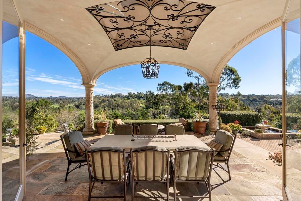 A rare sense of calm, scale, and intention defines 4724 El Aspecto, where panoramic mountain and golf course views stretch across more than four private acres in one of the West Side Covenant’s most desirable settings. This is a property that feels composed rather than staged—designed for privacy, comfort, and the kind of lifestyle Rancho Santa Fe is known for. The home lives primarily on a single level, offering an ideal floor plan that balances openness with retreat. Five bedrooms plus an office are complemented by a generous upstairs guest suite with its own private balcony—perfect for hosting with ease while preserving privacy for both residents and guests. The primary suite is exceptional in both size and function, featuring dual spa-inspired bathrooms and oversized walk-in closets that create a true sanctuary within the home. Indoor spaces are thoughtfully curated for both daily living and entertaining. A chef’s kitchen with premium appliances anchors the home, while a temperature-controlled wine cellar and dedicated in-home gym elevate its livability. Throughout, the layout flows effortlessly to the outdoors, where expansive entertaining and dining areas—including a built-in bar and grill—invite year-round gatherings with family and friends. The exterior experience is equally compelling. An infinity-edge pool and spa overlook sweeping views, while manicured rose gardens, raised-bed vegetable gardens, and a mature fruit orchard add both beauty and purpose to the landscape. A gated driveway enhances privacy and security, leading to a four-car garage as well as a generously sized detached workshop and additional garage space—ideal for collectors, hobbyists, or expanded storage. Quietly positioned yet exceptionally convenient, the property offers incredible walkability, moments from the Rancho Santa Fe Golf & Tennis Club, Rancho Riding Club, Roger Rowe School and Rancho Santa Fe Village. In addition to just a quick drive to the beaches, shops and dining of Del Mar, Solana Beach, and Encinitas. 4724 El Aspecto is a refined West Side Covenant offering that delivers space, views, and lifestyle—without compromise.