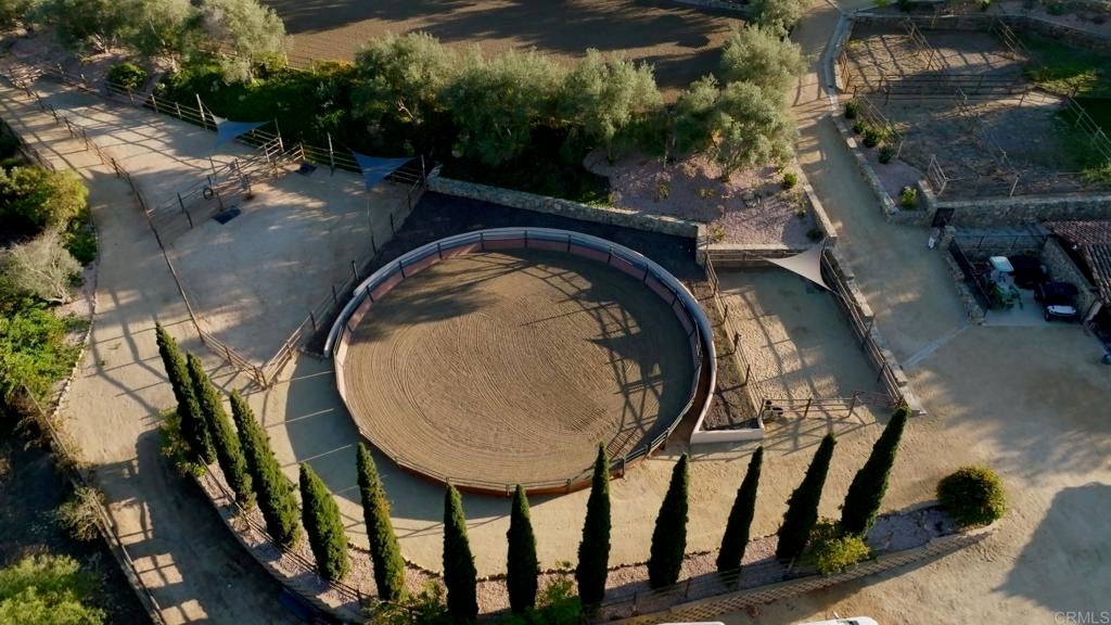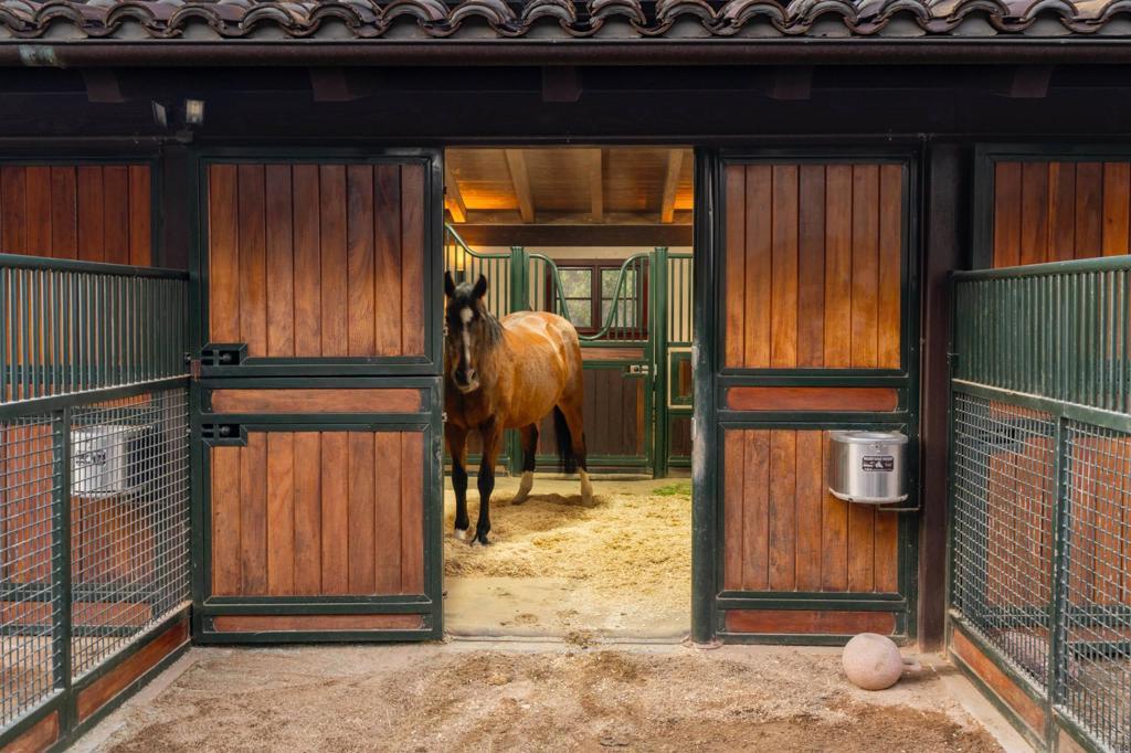 Perched on 5.4 scenic acres, Villa Latigo e Cavalli is a masterfully crafted equestrian estate where Old World European charm meets California coastal beauty. A winding stone-lined drive leads to a grand main residence and two guest houses, capturing sweeping ocean views and offering abundant space for multi-generational living or private hosting. Enjoy resort-style amenities including a sparkling pool, jacuzzi, sauna, and open-air yoga pavilion—plus the assurance of two dedicated generators (house & barn) and a 5,000-gallon emergency water tank for total peace of mind. For the equestrian professional or passionate rider, the estate showcases an Olympic-size dressage arena and a round arena, both with premium waterless footing. The luxury barn includes 10 oversized in-and-out stalls, each with its own fan, stainless-steel automatic waterers, horse-mattress flooring, and metal hoses for effortless cleaning. Supporting facilities include an office, kitchenette, luxing room, feed room, laundry, and bathroom. Completing the grounds are six grass pastures, six dirt turnouts, seven cross-tie stations, and a dedicated hay barn. Combining elegant architecture, panoramic coastal scenery, and world-class equestrian amenities, Villa Latigo e Cavalli offers a rare opportunity to own a private sanctuary of beauty, sophistication, and refined country living.