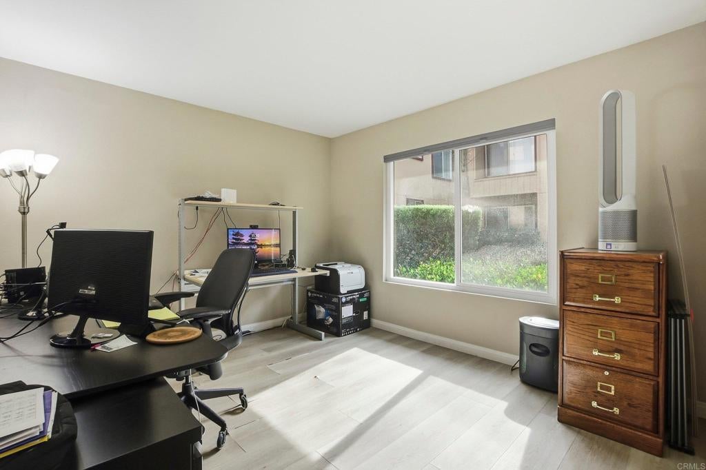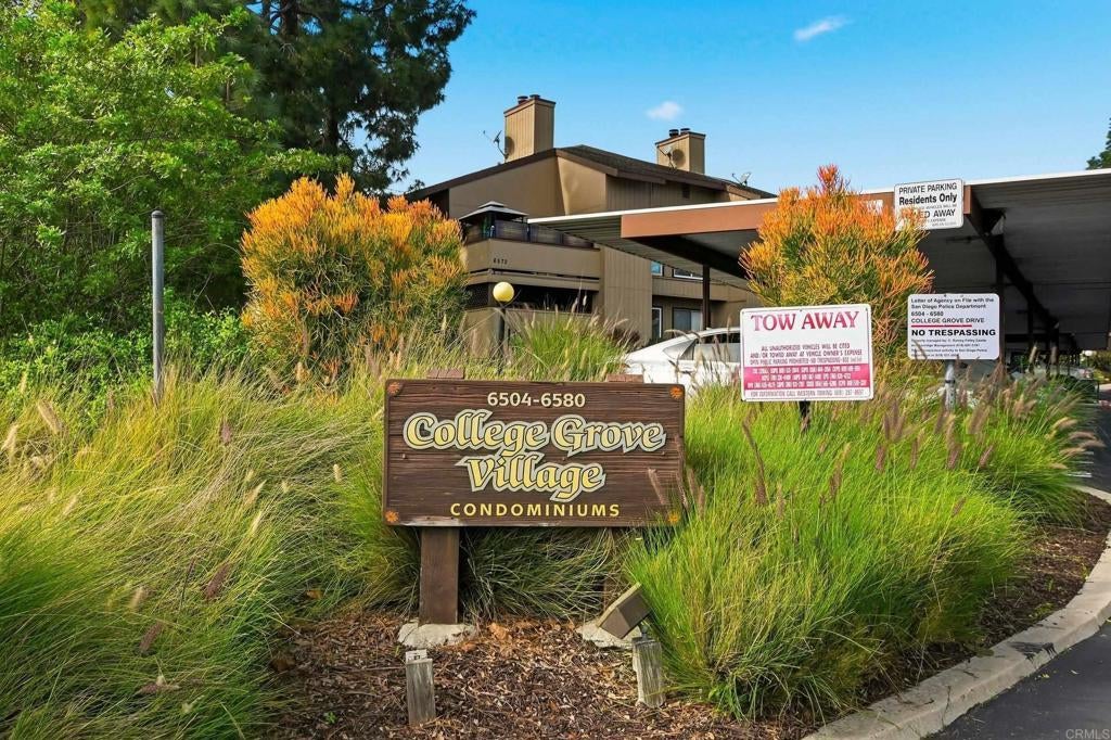 Welcome to this updated 2 bedroom, 1 bath ground level condo ideally located in a convenient central San Diego location. A beautifully remodeled stand up shower was completed just prior to listing, offering a fresh and modern update for the next owner. The community features abundant parking for both occupants and guests, with covered parking reserved for occupants and uncovered parking spaces throughout the community open to both residents and guests. This well maintained home includes interior paint and updated kitchen countertops completed in 2019. A Rheem central A/C system installed in 2018 provides year round comfort, while the gas fireplace adds warmth and charm to the living area. Enjoy indoor outdoor living with a private covered patio and the convenience of in unit laundry. Residents also enjoy access to the community pool and spa, perfect for relaxing or entertaining. The location is exceptional, with the College Grove Shopping Center within walking distance and easy access to Target, dining, parks, Chollas Lake, major freeways, and San Diego State University located approximately 2.5 miles away, with Downtown San Diego about a 10 minute drive. An additional benefit is that this community is not currently located within the updated San Diego County high fire severity zone following the August 2025 rezoning, helping reduce the need for costly supplemental fire insurance often required in designated fire hazard areas. This move in ready home offers comfort, convenience, excellent parking availability, and a central location close to everything San Diego has to offer.