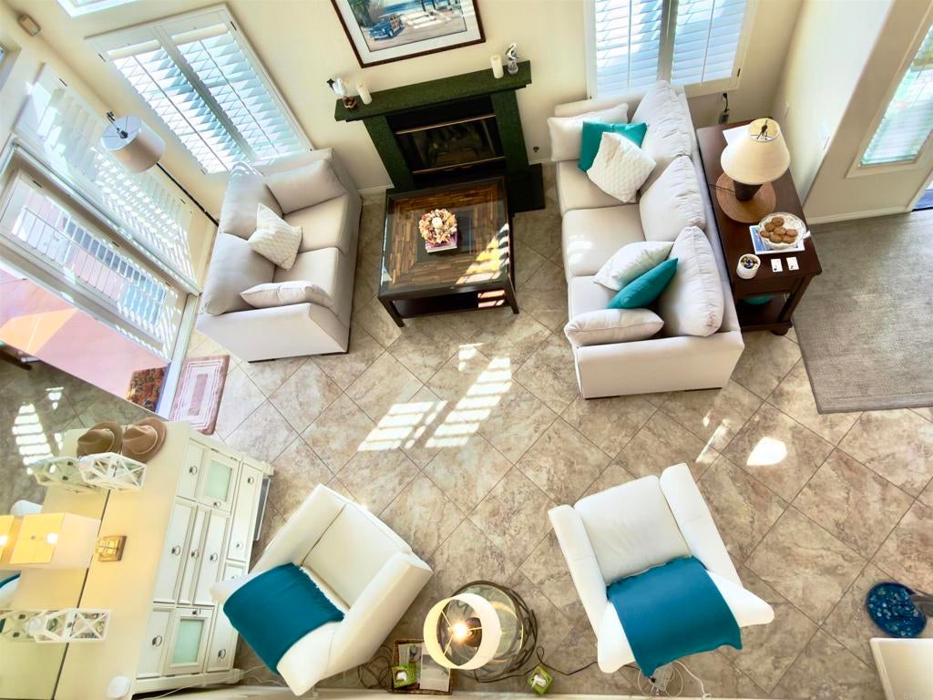 Welcome home! Unpack your bags and relax in this fully furnished, turnkey coastalretreat, perfect as a second home or full-time residence. Easy move-in and lock-and-leave living just 3 miles from the beach and Oceanside Pier. Located in the highly desirable 55+ gated community of Villa Trieste, featuring a saltwater pool, jacuzzi, and clubhouse for social gatherings. Light-filled living room with fireplace. Spacious upstairs loft/flex space with Murphy bed, built-in cabinetry, and full furnishings. Primary suite with French doors to a lush private patio, en-suite bath with extra-large seated shower, dual sinks, and generous closet. Cozy guest bedroom with French doors to patio; guest bath with tub and etched glass shower doors. Bright kitchen with newer appliances, stone countertops, and eat-in dining. Carpeted bedrooms; easy-care tile on main floor. Private fully furnished backyard patio with lush landscaping and gas grill. Turnkey, coastal, and move-in ready.
