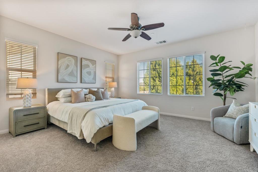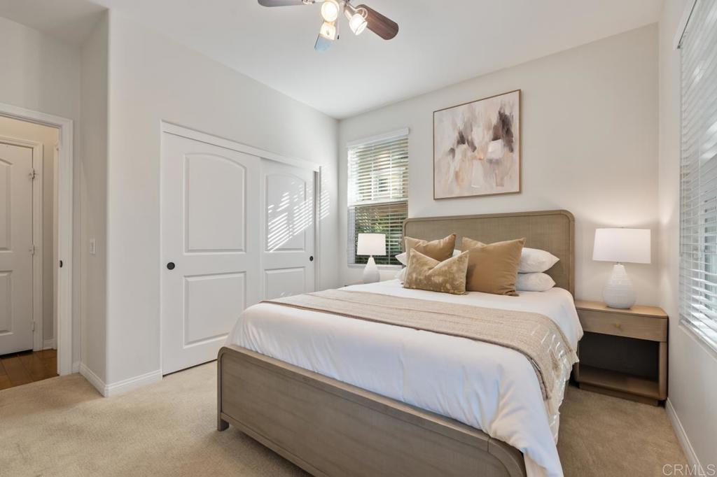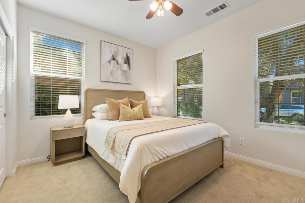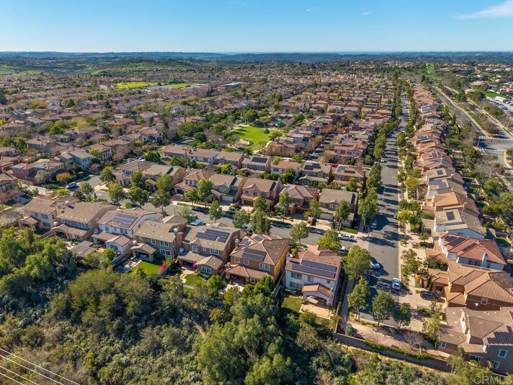 A rare opportunity to own in the highly sought-after Del Sur community, known for its private parks, resort-style pools, top-rated schools, and vibrant neighborhood events that foster a true sense of connection. This home has been beautifully maintained by its original owners and offers a versatile floor plan that is perfect for today’s lifestyle. The main level features open-concept living, dining, and kitchen spaces ideal for everyday living, along with a separate formal area, plus a guest bedroom and full bathroom—perfect for visitors or multi-generational living. Upstairs, you’ll find an open, airy loft, three additional bedrooms, a dedicated laundry room, and a spacious primary suite. The primary retreat includes a well-appointed ensuite with a soaking tub, walk-in shower, and generous closet space. Recent upgrades include fully owned solar, fresh interior paint, and new carpet throughout. The home is situated on a low-traffic street, and a rare lot with no homes behind it, offering exceptional privacy and a backyard with mature landscaping and endless potential to create your dream outdoor space. Ideally located one block away from a community park and pool, and within walking distance to top-rated schools. Del Sur offers a total of 14 parks, 11 solar-heated pools, miles of hiking and biking trails, sports courts, a dog park, and regular seasonal events. With nearby shopping, dining, gyms, and everyday conveniences, this home truly offers elevated living in one of North County’s most desirable communities. Don’t miss the opportunity to make this exceptional home yours.