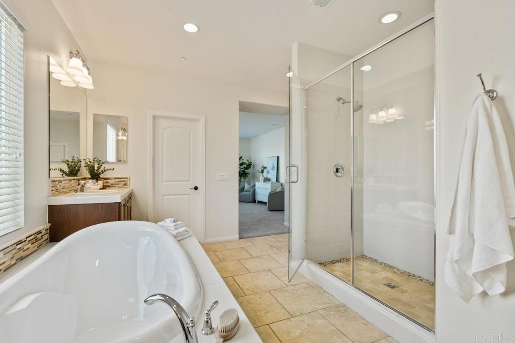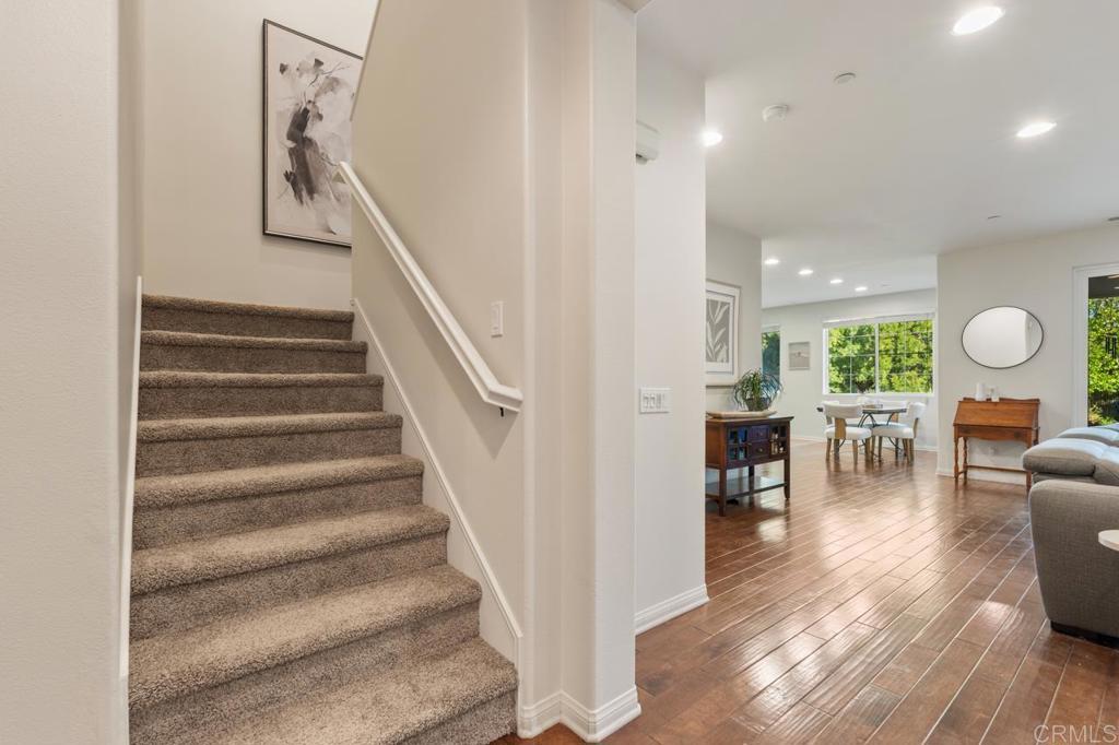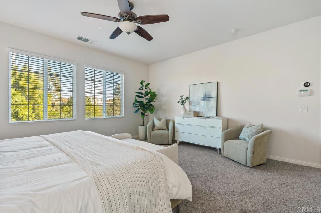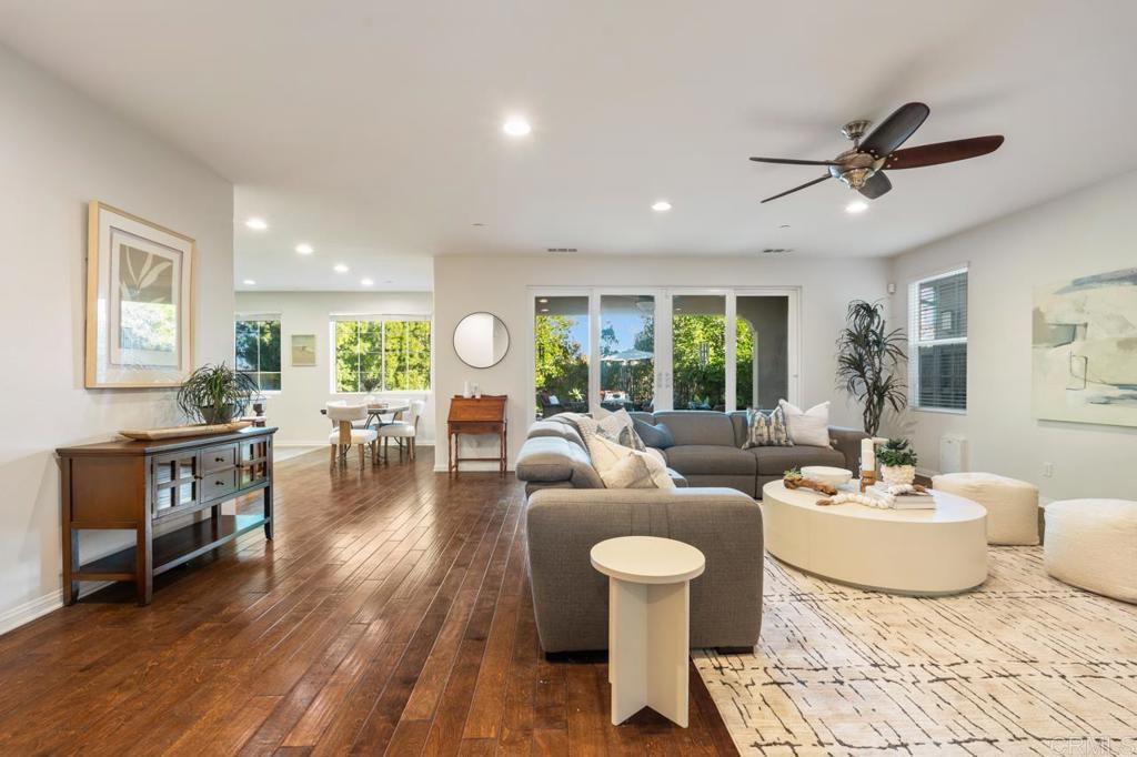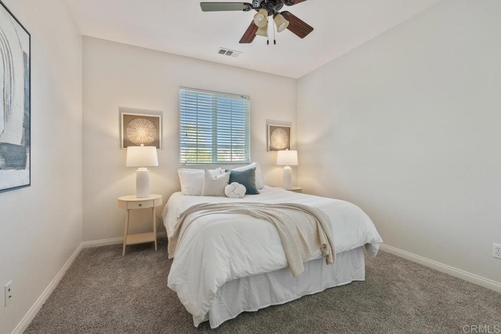 A rare opportunity to own in the highly sought-after Del Sur community, known for its private parks, resort-style pools, top-rated schools, and vibrant neighborhood events that foster a true sense of connection. This home has been beautifully maintained by its original owners and offers a versatile floor plan that is perfect for today’s lifestyle. The main level features open-concept living, dining, and kitchen spaces ideal for everyday living, along with a separate formal area, plus a guest bedroom and full bathroom—perfect for visitors or multi-generational living. Upstairs, you’ll find an open, airy loft, three additional bedrooms, a dedicated laundry room, and a spacious primary suite. The primary retreat includes a well-appointed ensuite with a soaking tub, walk-in shower, and generous closet space. Recent upgrades include fully owned solar, fresh interior paint, and new carpet throughout. The home is situated on a low-traffic street, and a rare lot with no homes behind it, offering exceptional privacy and a backyard with mature landscaping and endless potential to create your dream outdoor space. Ideally located one block away from a community park and pool, and within walking distance to top-rated schools. Del Sur offers a total of 14 parks, 11 solar-heated pools, miles of hiking and biking trails, sports courts, a dog park, and regular seasonal events. With nearby shopping, dining, gyms, and everyday conveniences, this home truly offers elevated living in one of North County’s most desirable communities. Don’t miss the opportunity to make this exceptional home yours.