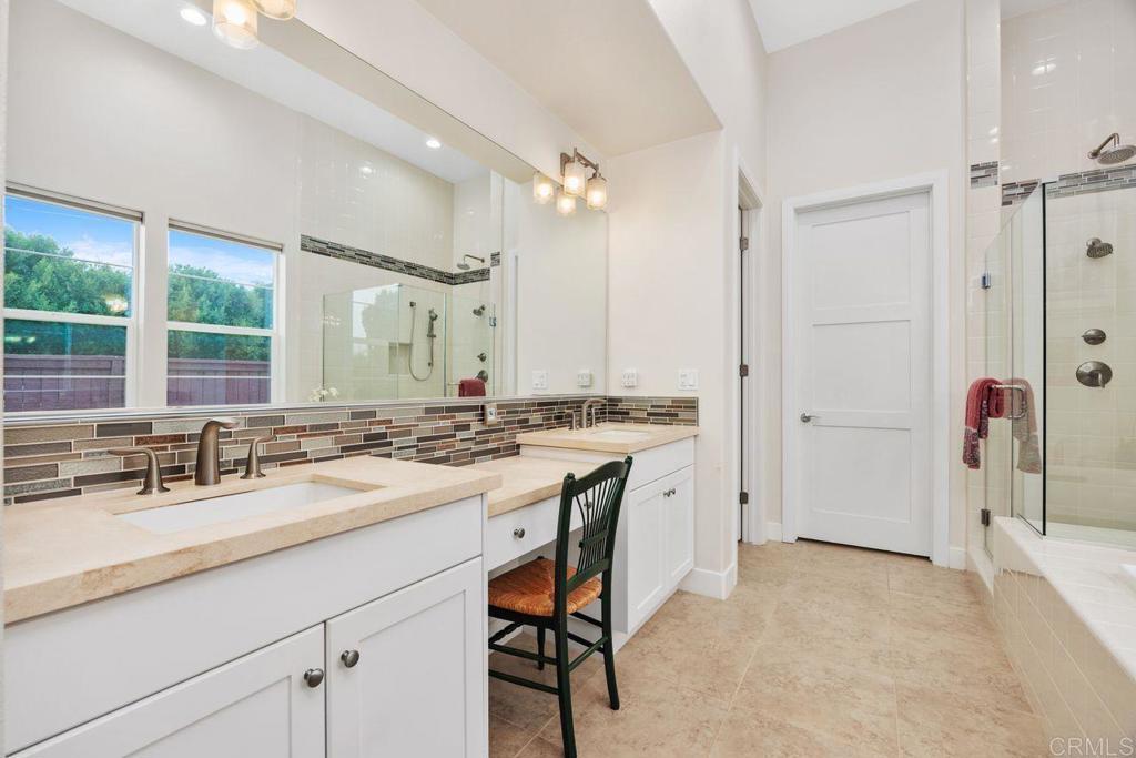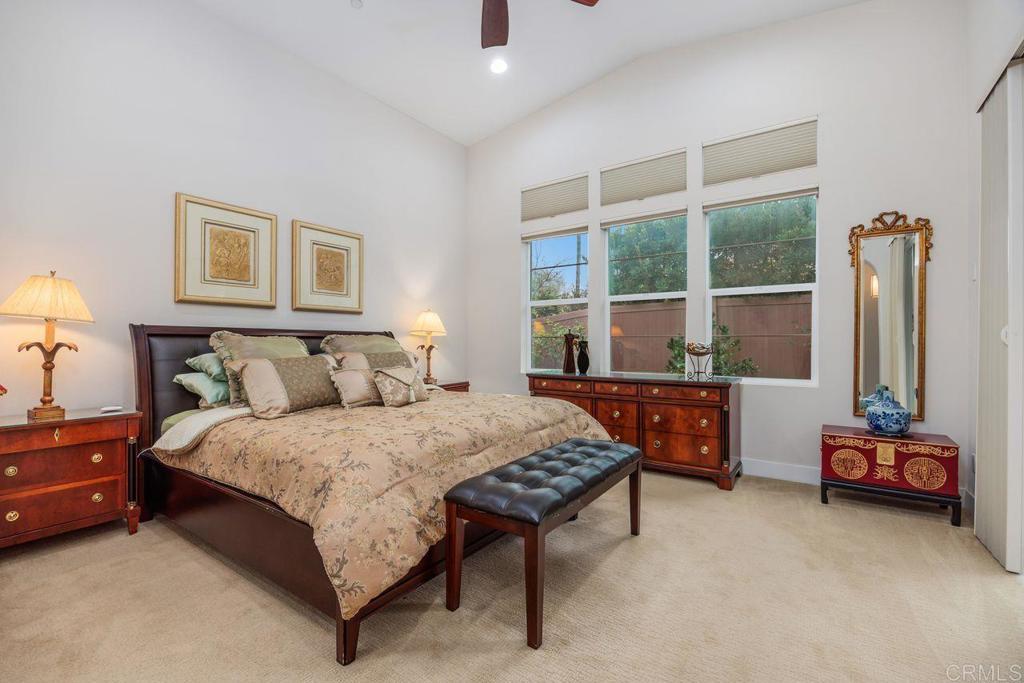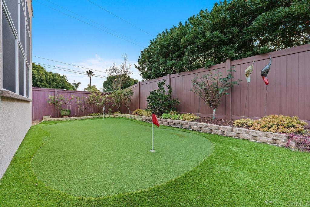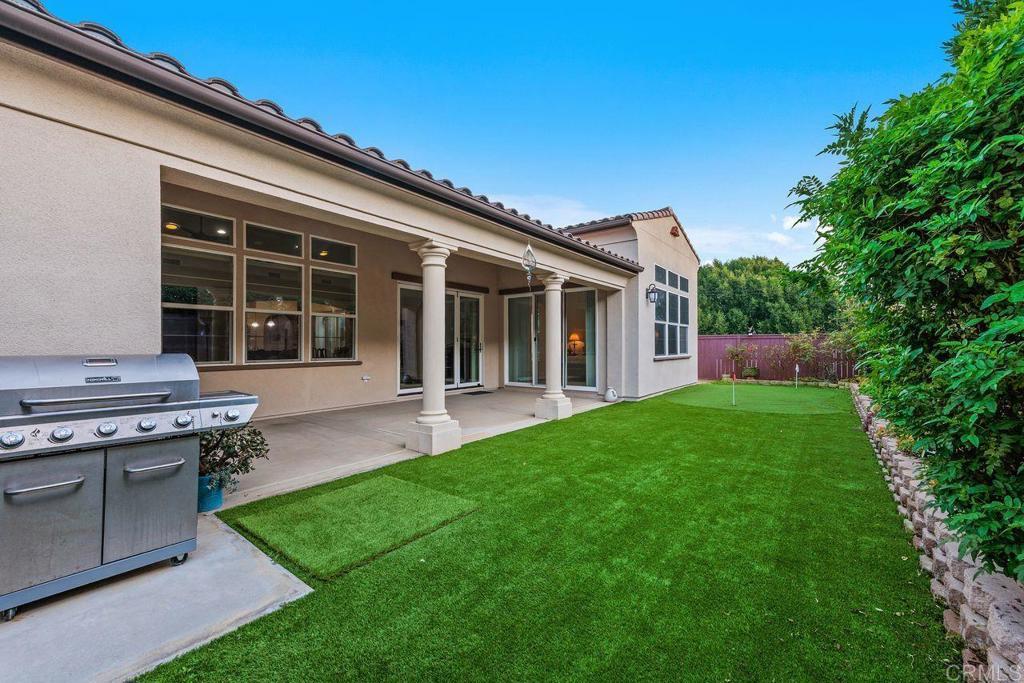 Nestled within the highly sought after Enclave community of West Carlsbad, this beautifully appointed single-story residence offers a rare blend of privacy, sophistication, and coastal convenience. Positioned behind a charming gated courtyard, the home immediately impresses with refined curb appeal and a welcoming sense of arrival. Just minutes from the heart of Carlsbad Village, residents enjoy effortless access to acclaimed dining, boutique shopping, the Coaster train, beaches, and the relaxed surf culture that defines this vibrant coastal community. Inside, rich dark wood flooring flows throughout the main living spaces, complemented by abundant natural light and volume ceilings that enhance the open, airy feel. The thoughtfully designed floor plan creates seamless transitions from room to room, ideal for both everyday living and entertaining. Off the formal entry, a versatile den furnished with built-in desks, cabinetry, and shelves to add function and style. The den is well lit with access to the central courtyard, where a gas fire dining table creates an inviting setting for work, gatherings, or evening relaxation. The kitchen serves as the heart of the home, featuring classic white cabinetry, granite countertops with glass tile backsplash, a farmhouse sink, and a spacious center island with bar seating. Stainless steel appliances, a walk-in pantry, and custom pull-out shelving offer exceptional functionality for the home chef. The adjacent living area is anchored by a gas fireplace with built-in cabinetry and flows effortlessly into the dining space, all framed by expansive windows and folding doors. The primary suite is a true retreat, offering a spa-inspired bath, an expansive walk-in closet with custom organizers, and private access to the covered patio. Two additional ensuite bedrooms, a well-appointed laundry room, and a powder bath provide comfort and flexibility for guests and family alike. Outdoors, the covered patio with gas fireplace extends the living space year-round, while the low-maintenance backyard features a synthetic turf putting green surrounded by mature landscaping for a tranquil, private setting. Additional highlights include HVAC, a 220-volt garage outlet, security system, and low HOA, all located within an award-winning school district close to parks, shopping, and the coast.