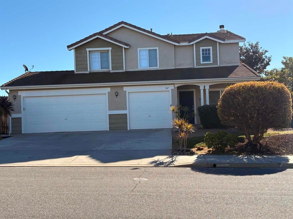 Located in the desirable California Brisas community, this inviting home offers 3 bedrooms plus a loft and 2.5 bathrooms, thoughtfully designed for comfort and functionality. Filled with natural light, the open floor plan creates an airy, welcoming atmosphere throughout. The living and dining areas flow effortlessly, while the family room—featuring a cozy fireplace—opens directly to the kitchen, which offers ample cabinet space and practical layout. Sliding glass doors lead from the family room to the rear patio and private backyard, ideal for indoor-outdoor entertaining. Upstairs, the spacious primary suite includes a private bathroom with double sinks, a soaking tub, a separate shower stall, and a large walk-in closet. Two additional bedrooms, a versatile loft, and a full bathroom complete the upper level. Additional highlights include laminate wood flooring throughout, ceiling fans in all bedrooms, and a 3-car garage. Situated on a quiet cul-de-sac, the home sits on a generous .21-acre lot, offering both privacy and room to enjoy outdoor living. With its bright design and flexible layout, this home provides everyday comfort with space to grow.