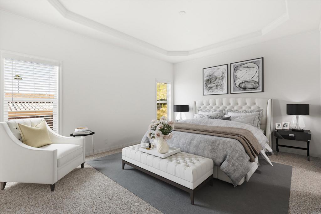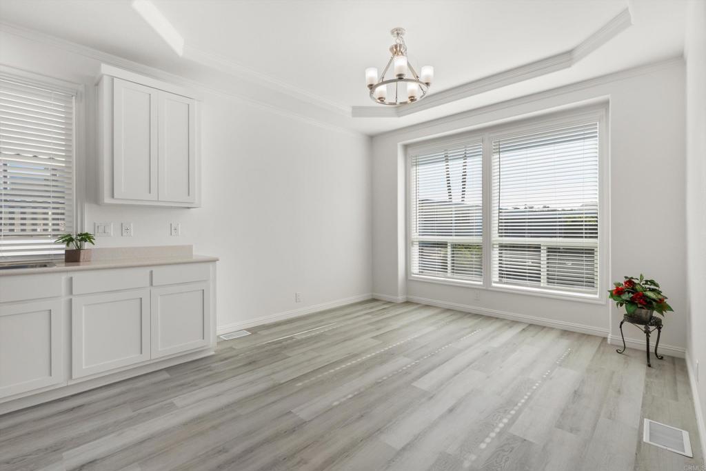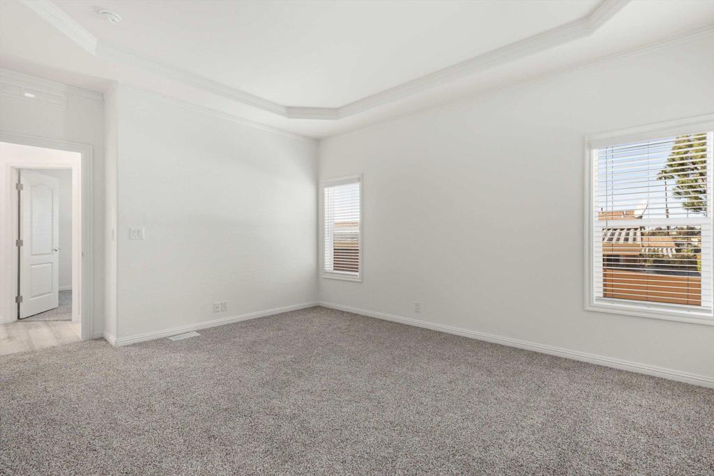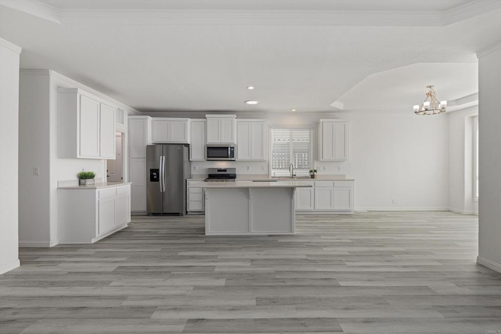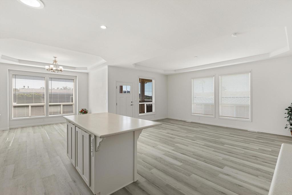 Brand new and never lived in, this stunning 3-bedroom, 2-bath Silvercrest manufactured home comes with a 7-year factory warranty and is located in Palomar Estates West, a 55+ resort-style community with a vibrant social atmosphere and rent control. Enjoy sweeping ocean views all the way to Catalina Island, breathtaking sunsets, and refreshing coastal breezes from the covered Trex porch. Inside, an open floorplan welcomes you with a spacious island kitchen flowing seamlessly into the great room and sunny dining area. White shaker-style hardwood cabinetry with soft-close hardware is featured throughout. Nine-foot ceilings enhance the modern, airy feel, while six solar tubes flood the home with natural light. Coffered ceilings with crown molding in the primary bedroom, great room, and dining room add a dramatic, upscale touch. Additional upgrades include stainless steel appliances, vinyl low-E windows, rocker light switches, and TV jacks in all three bedrooms, the great room, and at the kitchen island. The primary suite offers a walk-in closet and a private ensuite bath, creating a comfortable and elegant retreat. This FIVE STAR park welcomes 2 small pets per household (must be approved by management) and rent control. As an added bonus for pet owners; this home happens to be just a short walk across the street from the community dog park! The monthly space rent is only $723.05 per month. Age 55+, 2nd resident can be 35+. Note: Some images have been virtually staged.