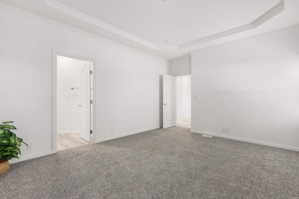 High Ceilings, Open Floorplan, Pantry, Recessed Lighting, All Bedrooms Down, Main Level Primary, Utility Room, Coffered Ceiling(s), Crown Molding, Solid Surface Counters