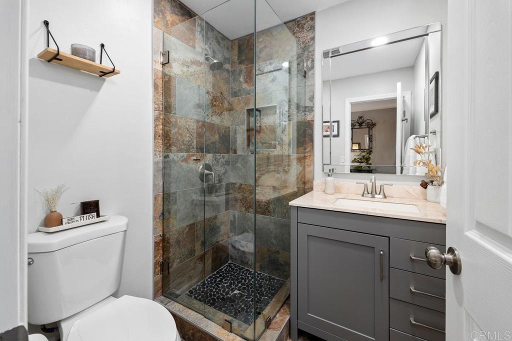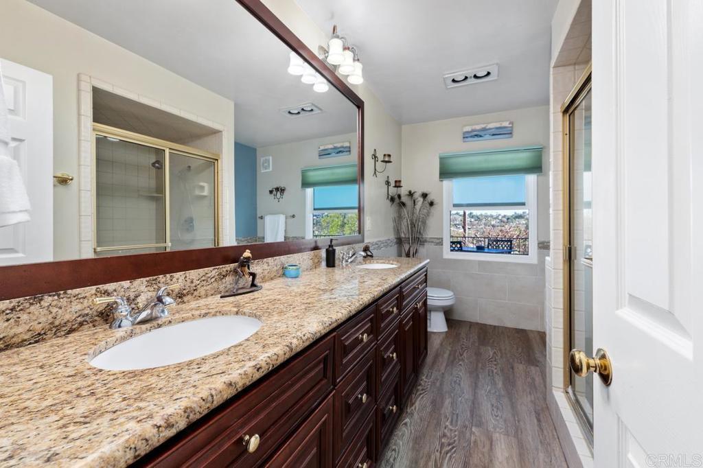 Amazing views and walkable to La Mesa Village! Located in one of the area’s most desirable neighborhoods, this private hillside home offers beautiful views, mature landscaping, and a peaceful setting. The home features 4 bedrooms and 3 full baths. Once parked in the two car garage, the main living areas are accessed by a single set of stairs, and the floor plan lives primarily like a single-level home. French doors from the family room open to the backyard for easy indoor-outdoor flow, while the primary bedroom also enjoys direct outdoor access. A dedicated office off the living room provides an ideal work from home space. Nearly all windows have been upgraded to dual pane. Additional features include owned solar, roof exhaust fans, and a whole-house water system with reverse osmosis drinking water and soft water. A bonus room off the garage (approx. 315 sq. not included in the homes square footage) offers flexible use as a gym, studio, or additional office. The backyard features a covered porch and spa surround by mature landscaping , while the front of the home captures beautiful views of Mt. Helix. Enjoy walking distance to La Mesa village restaurants, coffee shops, boutiques, pubs, community events, and nearby access to an elementary school. A rare opportunity to own a private hillside view home with versatile living space in one of La mesa’s most sought-after neighborhoods.
