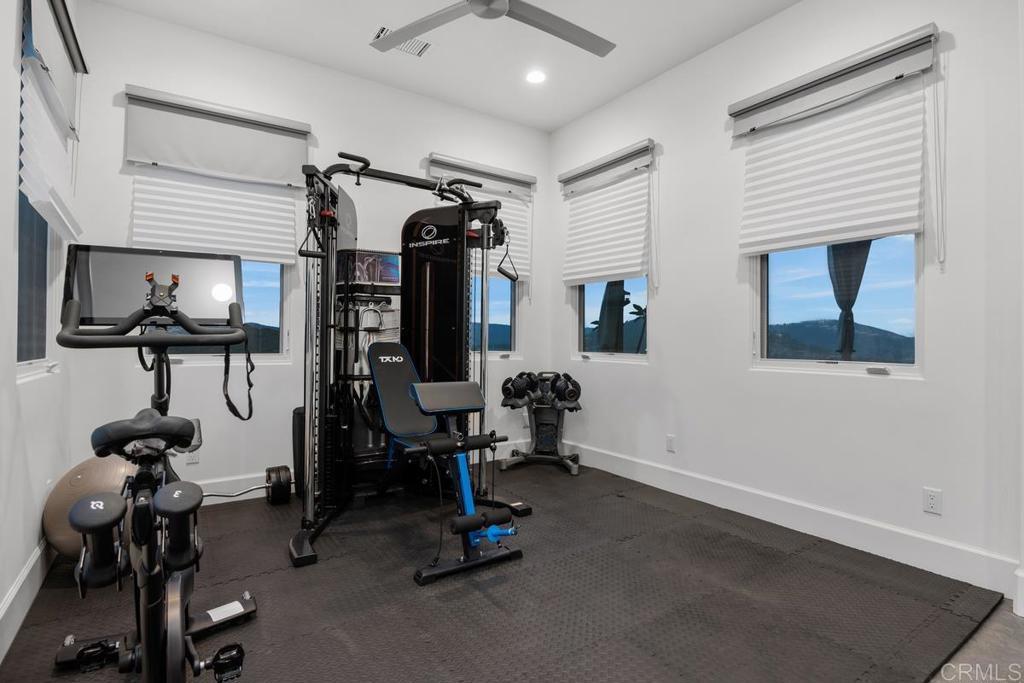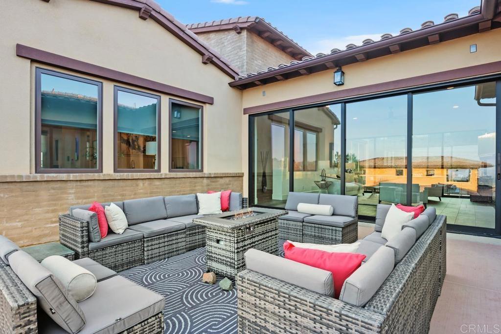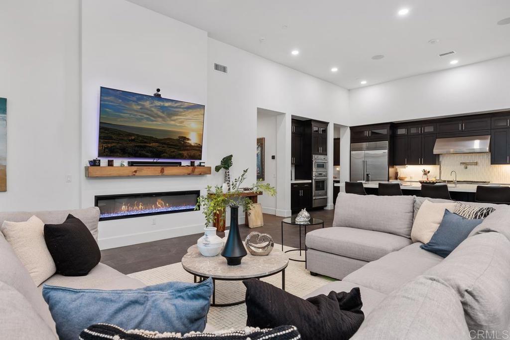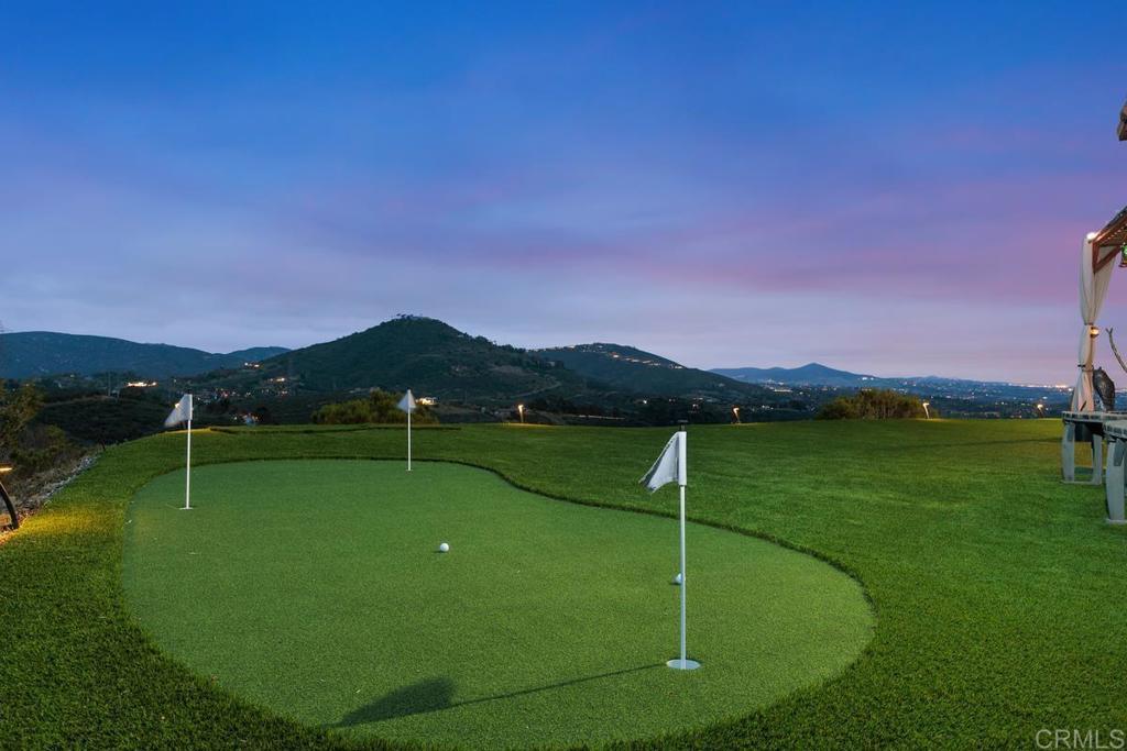 Welcome to an exceptional bluff-top estate in the quiet gated enclave of Olivenhain offering privacy security and true Southern California living. Built in 2020 this single-story residence spans nearly 5,000 square feet on over an acre and features 4 bedrooms 5 baths and sweeping canyon ocean and sunset views. Soaring ceilings and expansive California sliding glass doors create a bright open interior with seamless indoor-outdoor flow. The chef’s kitchen includes Thermador appliances quartz and granite countertops a large island and a built-in bar with butler’s pantry ideal for entertaining. A private office and expansive secondary suite with kitchenette and dual AC zones provide flexibility for guests or multigenerational living. Outdoor amenities include a covered patio with fireplace and heaters turf lanai lounge areas and a putting green all positioned to capture panoramic views. Additional features include owned solar four-zone HVAC whole-house water filtration and softening smart home technology monitored security whole-home Wi Fi and audio a Level 2 EV charger and a four-car epoxy-floored garage. Located near top-rated schools and scenic hiking and equestrian trails the property may be delivered partially furnished or unfurnished offering a flexible and seamless move-in opportunity in one of Encinitas’ most desirable neighborhoods.