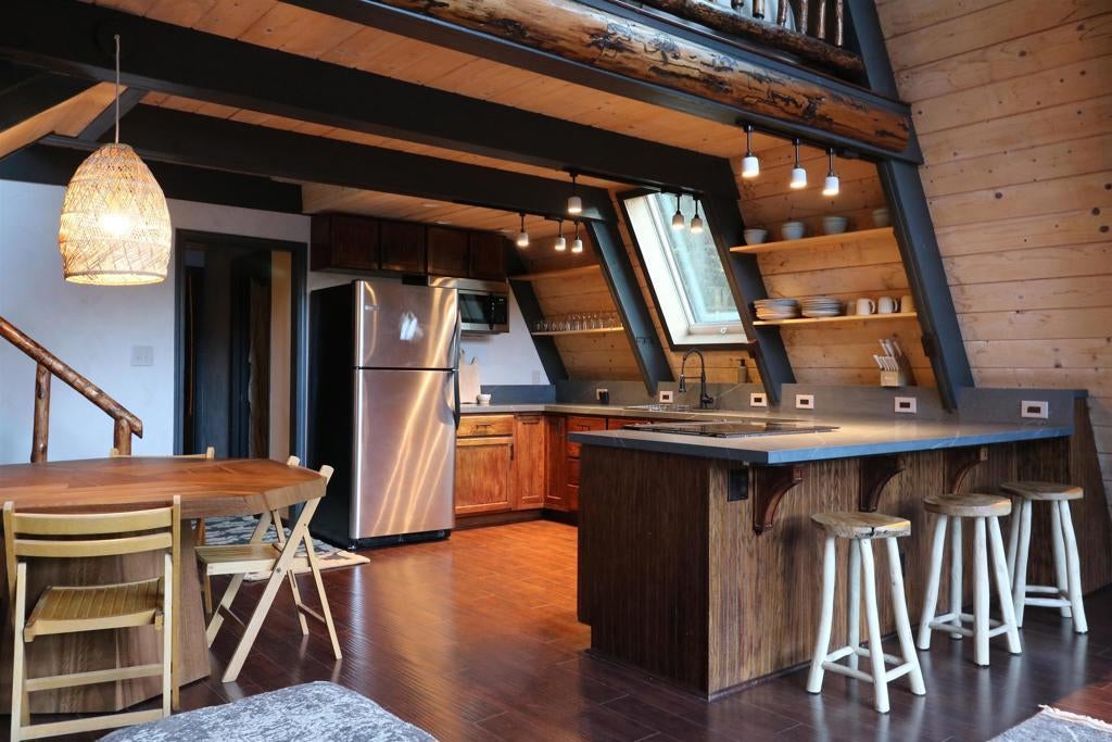 Welcome to Starhaus, a thoughtfully reimagined A-Frame retreat where architecture, nature, and quiet luxury converge. This beautifully remodeled residence is inspired by Japanese wabi-sabi, celebrating simplicity, organic materials, and the subtle beauty of natural imperfection. Muted earth tones, tactile fibers, and curated finishes create a serene and cohesive environment. Furnishings may be included for a truly turnkey experience. Set beneath some of Southern California’s most celebrated night skies, Starhaus offers an immersive escape from city life without sacrificing modern convenience. Reliable high-speed internet supports remote work or full-time living, all while surrounded by forest stillness and natural beauty. The one-acre property, is graced with mature oaks, cedars, and firs, alive with birdsong and seasonal change. In winter, snow falls softly as you gather around the wood-burning stove. Year-round comfort is ensured with an efficient mini-split system providing both heating and air conditioning. A generous balcony invites evening stargazing, morning coffee among the trees, or quiet reflection beneath expansive skies. Outdoors, relax by the campfire, grill under the stars, and enjoy the tranquility of the level, usable fern meadow, which may offer potential for a guest house or additional retreat space. The property includes an over-sized garage/workshop and storage area, ideal for hobbies, gear, or creative pursuits. Currently enjoyed as a limited vacation rental and private family retreat, Starhaus is shown by appointment only to ensure a discreet and personal viewing. Schedule your private tour and experience this rare mountain sanctuary for yourself. You will be glad you did.