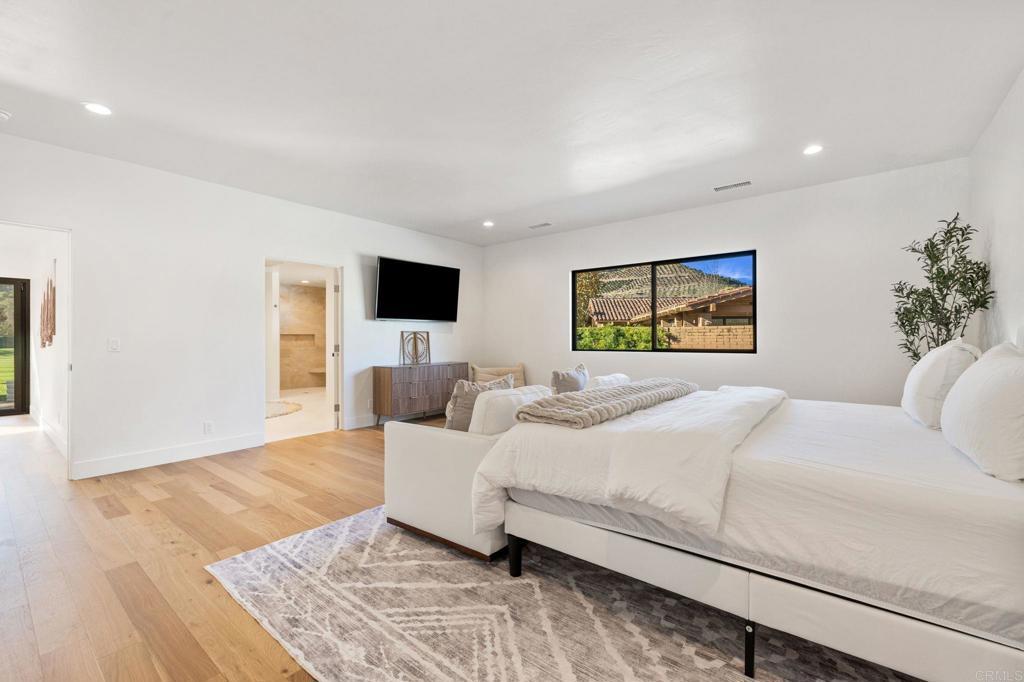 Set along the 11th fairway of the Pauma Valley Country Club, this fully renovated luxury residence offers an exceptional blend of timeless architecture, modern refinement, and sweeping golf course and mountain views. Encompassing over 4,000 square feet, this stunning estate has been thoughtfully reimagined to today's luxury standards featuring real wood floors, new doors and windows, baseboards, cabinets, counters, tiled showers, vanities, electrical, HVAC system! Enter through gorgeous glass doors, into soaring vaulted ceilings and expansive sight lines which immediately frame the fairway beyond. The grand main room is both elegant and inviting, showcasing a statement fireplace and a wall of sliding glass doors that create a seamless connection to the outdoors—ideal for both entertaining and everyday living. The chef's kitchen is beautifully positioned to capture fairway views and is equipped with a large center island, stainless steel appliances, wine refrigerator, and an adjacent walk-in pantry, offering both function and sophistication. A sitting room off the primary suite is both spacious and refined. The primary suite is a private retreat, offering generous proportions, a spa-inspired bathroom, and an oversized walk-in closet. Situated on the opposite side of the home are two additional bedrooms and a full bath. Adding to the home's flexibility is a private, attached casita-style guest suite complete with its own entrance, patio, bedroom, bathroom, and living area—ideal for extended family or work-from-home office. Outdoor living is equally mesmerising, with a spacious patio overlooking the manicured fairway and the Palomar Mountain range, providing a tranquil backdrop for morning coffee or sunset gatherings. Located within Pauma Valley Country Club Estates, a guard-gated community with 24/7 roaming patrol, this residence offers privacy, security, and prestige. Pauma Valley Country Club is a private club, welcoming new homeowners to apply for a variety of membership options.