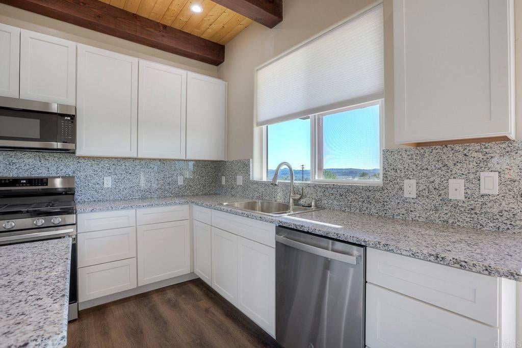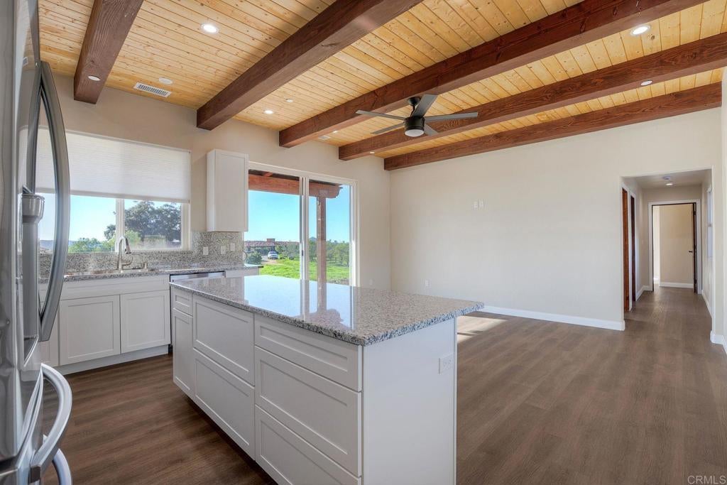 Newly constructed Luxury ADU for Lease – Modern 3 Bedroom, 2 Bath with 2-Car Garage on Private 7-Acre Estate. Be the first to live in this stunning single-story ADU on a picturesque 7-acre gated property in Valley Center. This thoughtfully designed home combines modern luxury with peaceful country living and breathtaking mountain views. Inside, the bright open-concept living area features vaulted wood-beam ceilings and abundant natural light. The chef’s kitchen boasts elegant white cabinetry, soft-close drawers, and stainless steel appliances, including a refrigerator with filtered water, gas stove, microwave, and dishwasher. The spacious primary suite includes sliding glass doors to a private patio with panoramic views. Its elegant ensuite bathroom offers dual vanities, a soaking tub/shower combo, and a large walk-in closet. Two additional bedrooms are positioned on the opposite side for privacy—one has sliding doors to a patio. Additional highlights include an attached finished two-car garage with washer/dryer hookups, ample parking space for an RV or recreational vehicles, and plenty of room for pets, a garden, or even small livestock. Whether you’re looking for open space to breathe, room for your hobbies, or simply a serene retreat surrounded by nature—this property is a rare find.