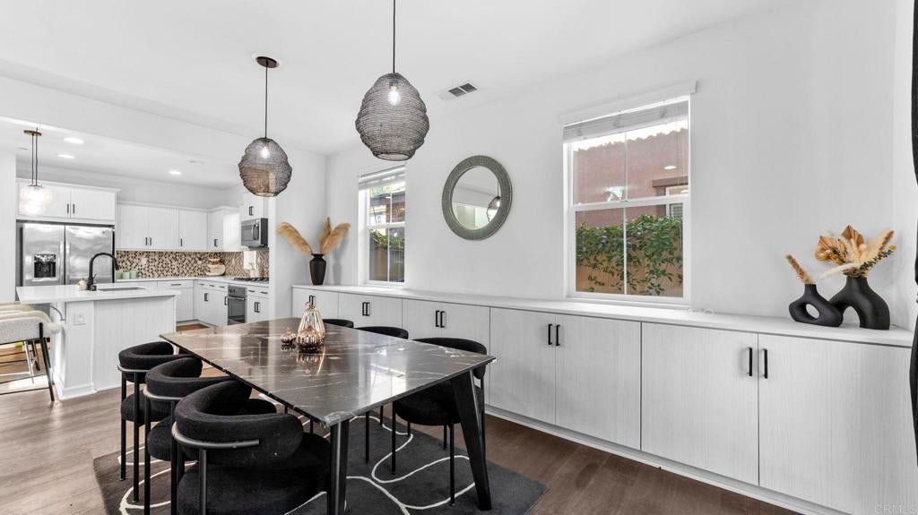 3BR + loft, 2.5 Baths, Upgraded Former Setina Model Home located in highly desirable Mission Grove community. Built in 2016, Largest 2000 SF Detached Home includes fully paid solar panel system and attached 2 car garage with outlet to charge electric vehicles. Spacious open floor plan with lots of natural light throughout. Kitchen with large center island with breakfast bar seating, beautiful European white cabinets, stainless steel appliances, and custom backsplash in kitchen and bathrooms. Upgraded Master bath features a large walk-in shower, soaking tub, and spacious walk-in closet. Additional highlights include laundry room with extra storage upstairs, tankless water heater, and central A/C. Low maintenance private pocket backyard patio perfect for relaxation and pets. Steps away from community pool, BBQ area, playground, and greenery. Minutes to restaurant row, local entertainment, major shopping, convenient freeway access, and walking distance to excellent schools. (Directions: Mission Grove Rd -->RIGHT on Moonlight Dr)
