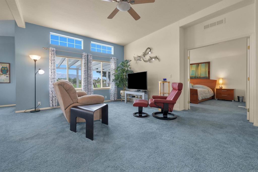 Original owners offer this well maintained 3 bedroom, 2 bath residence featuring high ceilings and a bright and spacious great room ideal for entertaining. The primary suite is located opposite from the guest bedrooms allowing for maximum privacy. Enjoy exceptional patio views of the surrounding mountains and golf course, creating a true desert resort atmosphere. This home combines comfort, lifestyle, and scenic beauty in a highly desirable setting. Current land lease is $998/mo. Located within the RoadRunner Club, this active 55+ community offers resort amenities including two dog parks, a heated saltwater swimming pool, Jacuzzi, pickleball and tennis courts, a fitness room, and golf. Borrego Springs is California's first designated International Dark Sky Community and is in the northeastern region of San Diego County in the Anza-Borrego Desert State Park.