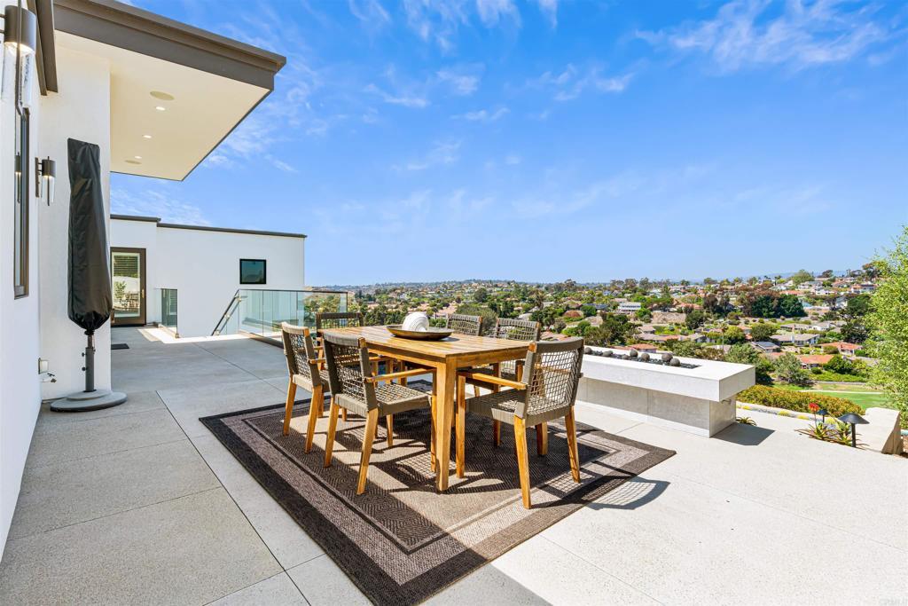 Welcome to this one of a kind home, just a few blocks east of I-5 - with privacy far surpassing any of those homes “west of the 5”. Come take a look and be awed by the gorgeous views from every room in this personal oasis! This pristine masterpiece exhibits true quality and luxury living, privately situated on a 1.04 acre lot elevated “top of the hill” with no direct neighbors looking into your windows having BOTH Sunset and Sunrise views expansive breathtaking white water and spectacular Lomas Santa Fe golf course views! This home lives as a single story residence with a laundry room/guest quarters room on the lower level. One short flight of steps or a short elevator ride up brings you to a luxurious open floor plan living space viewing Lomas Santa Fe golf course to the east, Del Mar Fairgrounds and almost 180 degree white water (Dog Beach) ocean views to the west ALL SIMULTANEOUSLY! Main living and kitchen includes LaCANTINA aluminum sliding doors which create a versatile indoor/outdoor living, bringing in plenty of natural lighting and ocean breeze. Remote controlled shutters throughout with blackout shutters in the primary bedroom. Kitchen was designed with all top of the line appliances: Sub-Zero refrigerator and wine refrigerator, Wolf range and hood, Bosch dishwasher and much more high quality finishes. Large walk-in pantry equipped with custom built-in shelves and cabinetry for ample storage, Asko dishwasher, backsplash tile imported from Spain and additional windows for natural lighting. The luxurious primary suite encompasses a cozy fireplace, views of the ocean, private patio, standalone bathtub in master bathroom with walk-in closet and built-in custom cabinetry. This immaculate home also consists of custom designed cabinetry throughout by Quality Woodworks Inc., Sonos surround sound, custom high end lighting throughout, a central alarm system with motion sensors, a filter system throughout in order to take impurities out of the water and much more - includes designer finishes and fixtures: Grohe, Kohler, Lacava, Baldwin locks. The well-kept landscaping was designed with low maintenance plants consisting of rare succulents, turf and all decks were professionally waterproofed. This is unlike any other property in Solana Beach. Maintained to the highest standards and is turnkey ready for its new owners. Built in 2016 and upgraded further in 2017 by premier Rancho Santa Fe builder Paul Munsch. Additionally, plans by master Del Mar architect James Chinn are included to add an ADU over the garage. ONLY 90 seconds drive or 10 min walk to Vons, Home Goods, Samurai restaurant, 24hr Fitness Gym, N. Coast Theatre, Veterinary services, Habit Burger, Starbucks, Nail Salon, 3 banks and more shops and services. 2 car garage oversized both in width and depth. There’s 200 sq feet of enclosed/locked space for use as a home gym/artists studio or extra storage which is in ADDITION to the 3660 sq ft listed.( Scroll Down to FACTS and FEATURES and click to VIRTUAL TOUR)