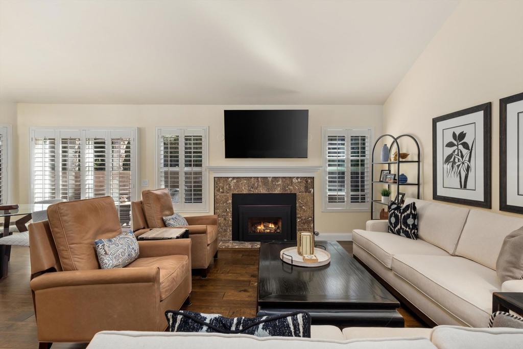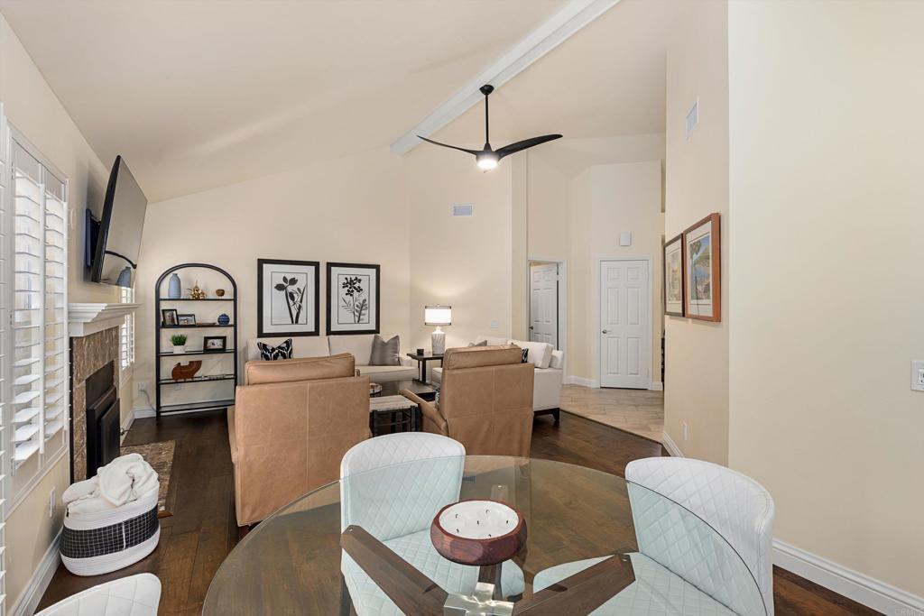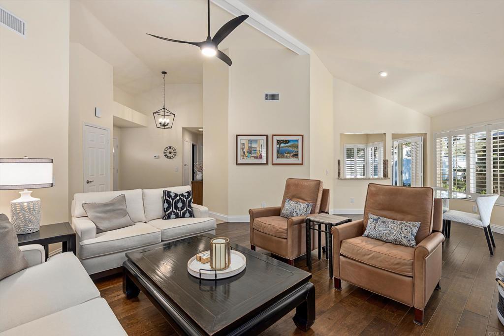 Private Single-Level Living in The Colony at Lake San Marcos Set at the end of a quiet cul-de-sac within the guard-gated community of The Colony, 1203 Via Apuesto delivers refined single-story living with thoughtful updates and serene surroundings. This 2-bedroom, 2-bath home spans approximately 1,383 sq. ft. and includes a flexible loft above the garage—perfect for a home office, creative studio, or guest overflow. A charming entry courtyard welcomes you inside to soaring vaulted ceilings and an abundance of natural light. The main living areas feel fresh and inviting with select rooms recently repainted, updated lighting, and new ceiling fans, enhancing both style and comfort. The living room is centered around a fireplace and flows effortlessly into the kitchen, which features stainless steel appliances, custom cabinetry, and an adjacent breakfast area ideal for casual dining. Each bedroom functions as its own private retreat with new carpet, complete with en-suite, spa-inspired bathrooms—ideal for hosting guests or enjoying quiet separation. The backyard offers a peaceful escape with mature landscaping, generous patio space, and a sense of privacy rarely found. Additional highlights include an attached two-car garage with built-in storage and workspace, along with the security and amenities that define life in The Colony. Residents enjoy access to Lake San Marcos’ renowned lifestyle—championship golf, lake activities, tennis, dining, and a full calendar of social events. Well-suited as a primary residence, second home, or low-maintenance investment, this home captures the ease and elegance of Lake San Marcos living.