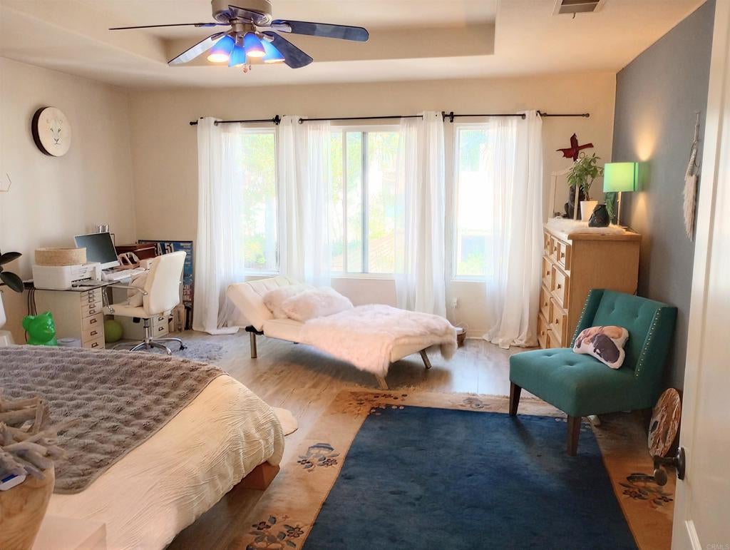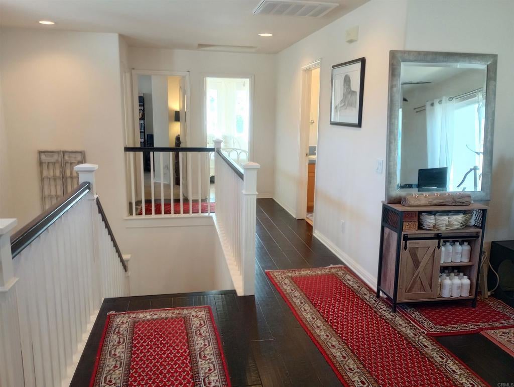 Great value at Pacific Highlands Ranch in Carmel Valley. Super quiet location and exceptional floorplan with spacious dining room, separate family and living room, bedroom on main level, custom staircase and loft/office overlooking lower level. Abundant natural light, architectural details such as arched doorways and Spanish style exterior features including awning and tower entry make this property stand out. Interior highlights include extra wide stairs for easy furniture moving with hand scraped espresso engineered wood floor and mother of pearl mosaic riser, travertine tile on lower level, vinyl planks on upper level, stainless steel appliances incl. brand new, never used double wall oven with air fry function, stained-glass window in living room, low VOC paint, Caesarstone countertop in primary bathroom and additional exterior lighting. This home features 4 BDR, 3 BA plus loft/office and a 3-car tandem garage/workshop. Recent upgrades include exterior painting, stunning curb appeal. Large lot with multiple seating areas including side yard with gate which can be used as dog run or play area. Multi-purpose outdoor spaces, pre-plumbed with 50-amp outlet for spa. Mature plants, fruit trees and water wise landscaping. Access to the West Highlands Pacific recreation center with wonderful amenities such as pool, spa, clubhouse, gym, outdoor seating and barbeque areas. Lowest HOA dues in all of Pacific Highlands Ranch! Convenient shopping nearby and close to top-rated schools, all in walking distance. Short drive to the beach.