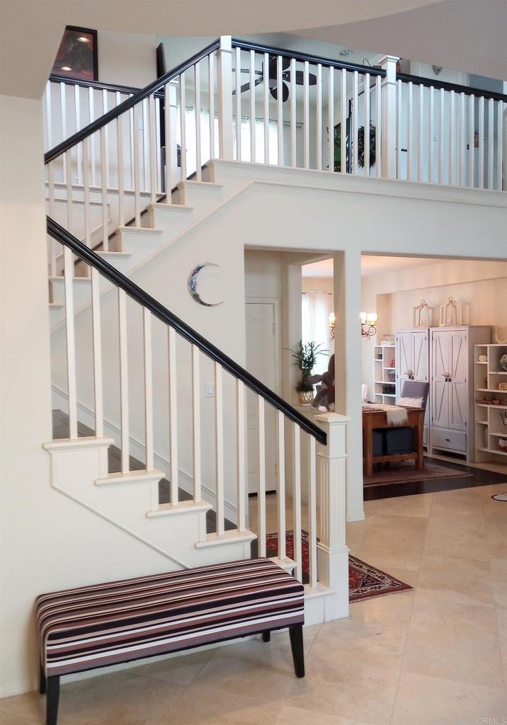 Beautiful Bordeaux home within the Pacific Highlands Ranch neighborhood in Carmel Valley in super quiet location. Exceptionally well laid out floorplan with spacious dining room, separate family and living room, downstairs bedroom, wide staircase and loft/office overlooking lower level. Abundant natural light, architectural details such as arched doorways and Spanish style exterior features including awning and tower entry make this property stand out. Interior highlights include stairs with hand scraped espresso engineered wood floor and mother of pearl mosaic riser, travertine tile on lower level, vinyl planks on upper level, stainless steel appliances incl. brand new, never used double wall oven with air fry function, stained-glass window in living room, low VOC paint, Caesarstone countertop in primary bathroom and additional exterior lighting. This home features 4 BDR, 3 BA plus loft/office and a 3-car tandem garage/workshop. Recent upgrades include exterior painting in June of 2025. Large lot with multiple seating areas including side yard with gate which can be used as dog run or play area. Multi-purpose outdoor spaces, pre-plumbed with 50-amp outlet for spa. Mature plants, fruit trees and water wise landscaping. Access to the West Highlands Pacific recreation center with wonderful amenities such as pool, spa, clubhouse, gym, outdoor seating and barbeque areas. Lowest HOA dues in all of Pacific Highlands Ranch! Convenient shopping nearby and close to top-rated schools, all in walking distance. Short drive to the beach.