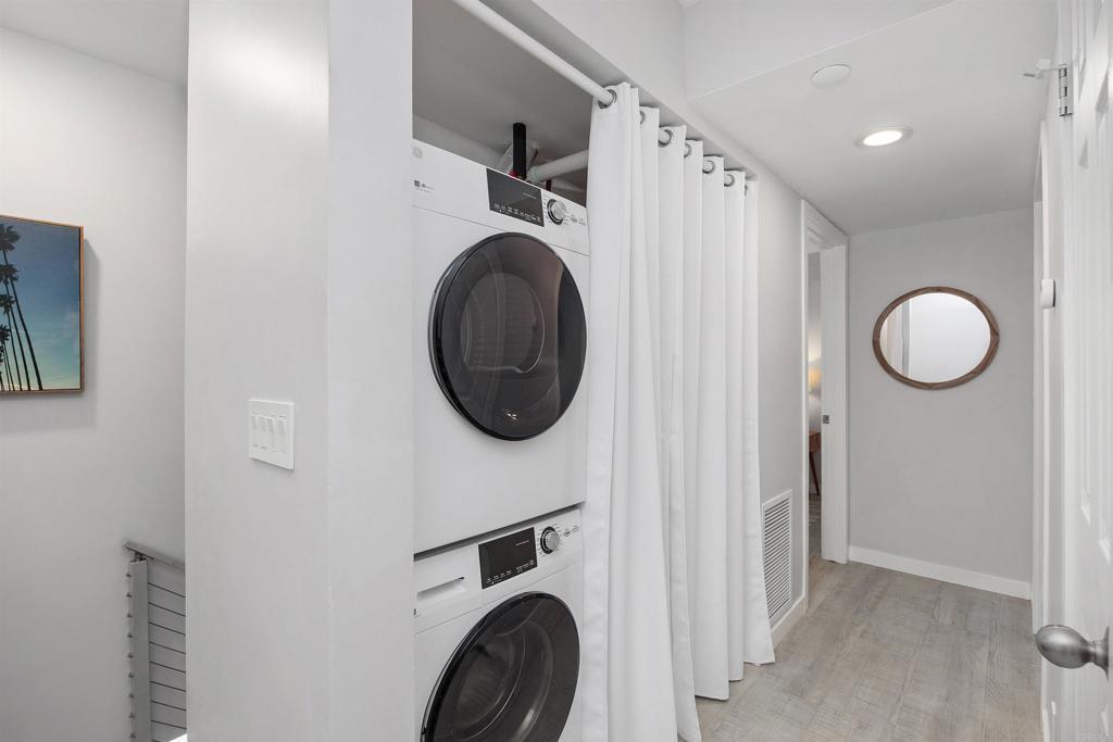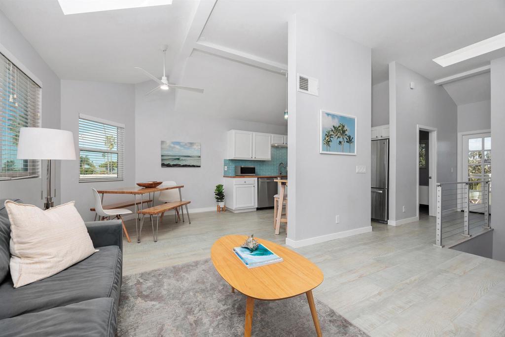 Welcome to this light-filled, modern end-unit townhome ideally located in the heart of Carlsbad Village, west of I-5 and walking distance to everything—beaches, restaurants, parks, shops, the Coaster train station, and Carlsbad’s famous farmers market. With an impressive 94 Walk Score, this is truly a walker’s paradise and a rare coastal opportunity. This private three-story residence features soaring vaulted ceilings on the third floor, creating an open and airy feel throughout. The cozy living room offers a peek-a-boo ocean view and a gas fireplace, while the full kitchen flows effortlessly for everyday living and entertaining. High-end features include dual-pane windows and energy-efficient appliances, enhancing comfort, quiet, and year-round energy savings. Enjoy indoor-outdoor living with two attached balconies, plus the convenience of an attached garage equipped with a Tesla EV charger.The home includes continuous luxury vinyl plank flooring, modern aluminum cable stair railing, with smoothly textured walls, and Kohler plumbing fixtures throughout. The thoughtfully updated chef’s kitchen showcases custom butcher block countertops, a kohler farmhouse sink, Zephyr range hood, and modern finishes throughout. Smart-home upgrades abound, including a Yale front door lock, Ring cameras and Nest thermostats. With 3 bedrooms and 2.5 bathrooms, this home also includes access to a community hot tub, sundeck and grassy yard—perfect for relaxing after a day at the beach. In addition to the three bedrooms, the entry level offers a versatile bonus flex room—ideal for a home office, gym, media room, or potential additional bedroom—providing extra functionality to suit a variety of lifestyles. The HOA allows mid-term rentals (30-day minimum) and covers water, sewer, trash, exterior maintenance, roof maintenance and landscaping. Located in Carlsbad’s award-winning school district, this peaceful pocket of Carlsbad Village is ideal for anyone seeking a modern coastal retreat. Come for the high-end upgrades—stay for the exceptional coastal lifestyle.