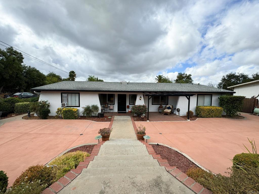 This home is a perfect layout for a family of 4 or 5. It's a three bedroom, but the laundry room could be used as a fourth bedroom or an office. Home has an open floor plan including formal dining and breakfast dining area. Wood burning adobe fire place is cozy and great for ambiance. Master bedroom and bath on one side of the house and the guest rooms on the other with a share bathroom in between. The exterior of the house is immaculate and landscape maintenance is included. Plenty of hardscape and thousand square feet of covered patios with recessed lighting and fans. Home has RV parking at the front of the house. Turf and park like landscaping. Home has four car garage for plenty of storage or perfect for a car enthusiast. Conveniently located minutes from old town Ramona.