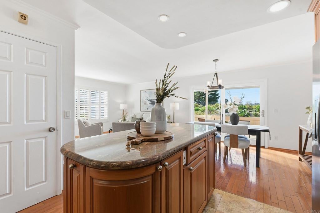 Welcome to this highly desirable end-unit home in the sought-after 55+ community of High Country Villas, perfectly positioned along the community’s signature 9-hole golf course. This light-filled residence features newer paint throughout and an open, airy floor plan designed for comfortable living and effortless entertaining. The remodeled kitchen is beautifully appointed with stainless steel appliances and flows seamlessly into the spacious living and dining areas. A versatile den or optional third bedroom is ideal for a home office or guest space. Both bedrooms offer generous walk-in closets. The spacious primary suite is a true retreat, featuring elegant brass fixtures, beautiful cabinetry with granite countertops, a walk-in shower with decorative travertine tile and corner bench, a pocket door, and a large walk-in closet. Enjoy coastal breezes from the covered patio off the living and dining areas or unwind on the private patio directly off the primary bedroom. Additional highlights include a one-car detached garage plus a designated parking space conveniently located adjacent to the garage. High Country Villas offers an outstanding lifestyle with community pool and spa, pickleball courts, a well-appointed clubhouse, a 9-hole golf course, and a wide array of activities including bocce ball, shuffleboard, horseshoes, yoga, bridge, happy hours, movie nights, and more. Scenic hiking trails are just next door at Manchester Preserve. Ideally located near shopping & dining, with a near-perfect climate year around and just 10 minutes to beautiful coastal beaches, this home truly has it all. This exceptional property will not disappoint.