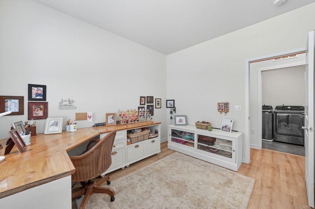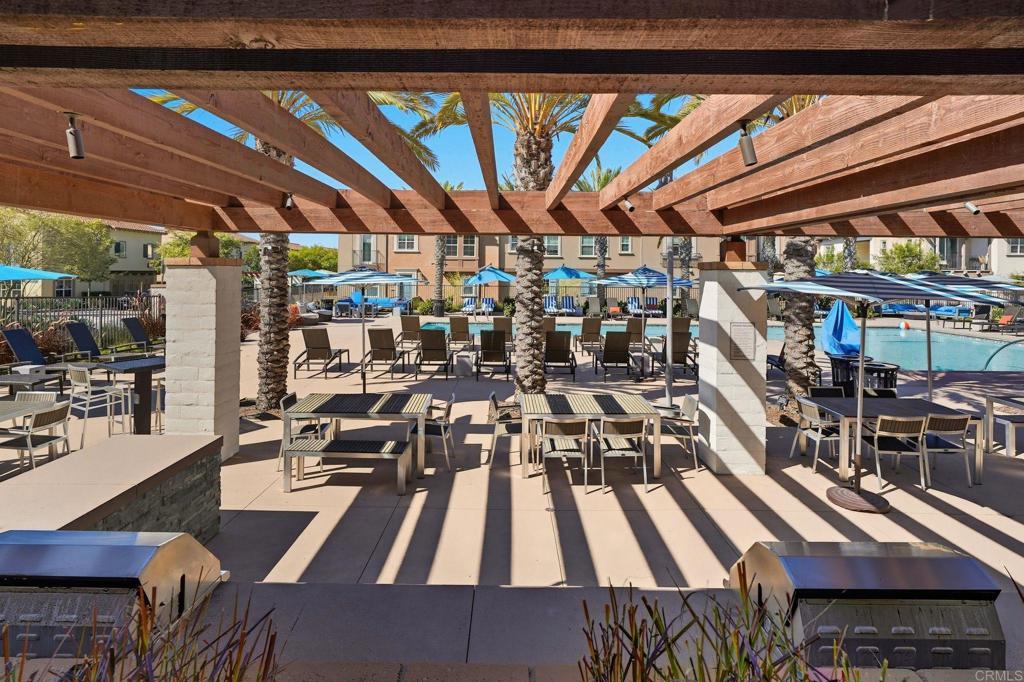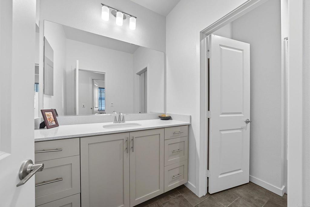 Beautifully upgraded Kitchen with Marble countertops & backsplash. Stainless Steel Appliances. Custom Stone Wall in great room & bathroom. Barn Doors in two bedrooms & one bathroom. Beautifully upgraded LVP flooring throughout. Stone flooring in Bathrooms & Laundry room. Custom wood blinds. Private patio perfect for BBQ and entertaining. Fully Paid-Off Solar!! Friendly Neighbors! Gated community: Resort-style pool with BBQs, lounge areas, & playground. Surrounded by walking & biking trails, scenic open-space, & top-rated schools. Walking(or drive) distance to Double Peak Park, where you’ll find one of the best views in all of San Diego County. You'll also enjoy proximity to major hospitals and two colleges(Cal State San Marcos/Palomar College). Close to the 15 and 78 for easy commuting. This is a gem! Don’t miss out! Rare 2 story - Almost New - Built in 2021 -
