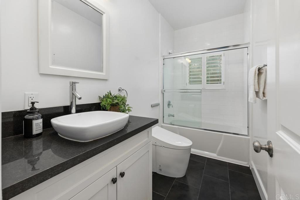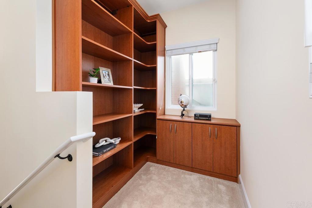 Centrally located in the heart of Mira Mesa, this beautifully upgraded home offers one of the largest in the neighborhood and a peaceful, private setting with no rear neighbors. The bright kitchen features crisp white cabinetry, stainless steel appliances including double ovens, a breakfast bar, and an oversized walk-in pantry with a designer glass door. The open living space flows seamlessly to a resort-style backyard with a heated pool and water feature, spa, firepit, and wiring for an outdoor TV. A downstairs bedroom with brand new carpet, walk-in closet, and adjacent full bathroom provides an ideal setup for guests or multigenerational living. The main level showcases cork flooring, neutral paint, and stairs leading to an upstairs nook with built-in bookcases, ideal for a home office. The primary suite includes a view balcony, a spa-inspired bathroom with dual sinks and an oversized shower with multi-showerheads, and a custom walk-in closet. Two additional bedrooms and a full bathroom with a high-end bidet toilet complete the upper level. Additional highlights include a finished two-car garage, main-level laundry with sink and storage, Tesla fast charger & Powerwall, owned solar panels, tankless water heater, Nest-controlled A/C, and no HOA or Mello-Roos - an exceptional opportunity in a highly convenient San Diego location. Buyer and buyer’s agent to verify all in MLS prior to COE.