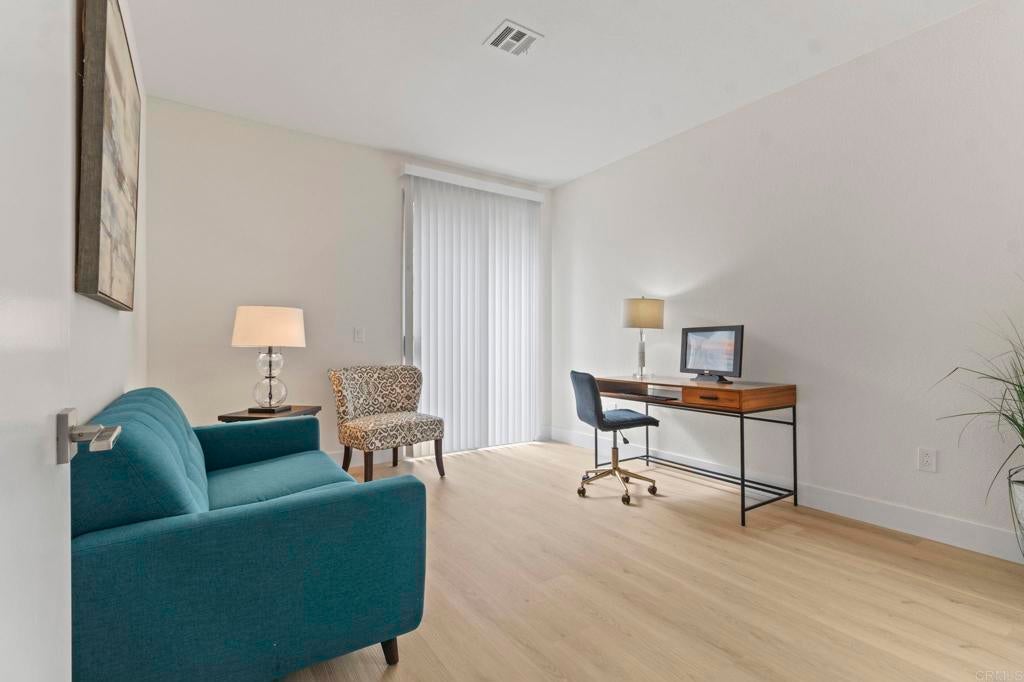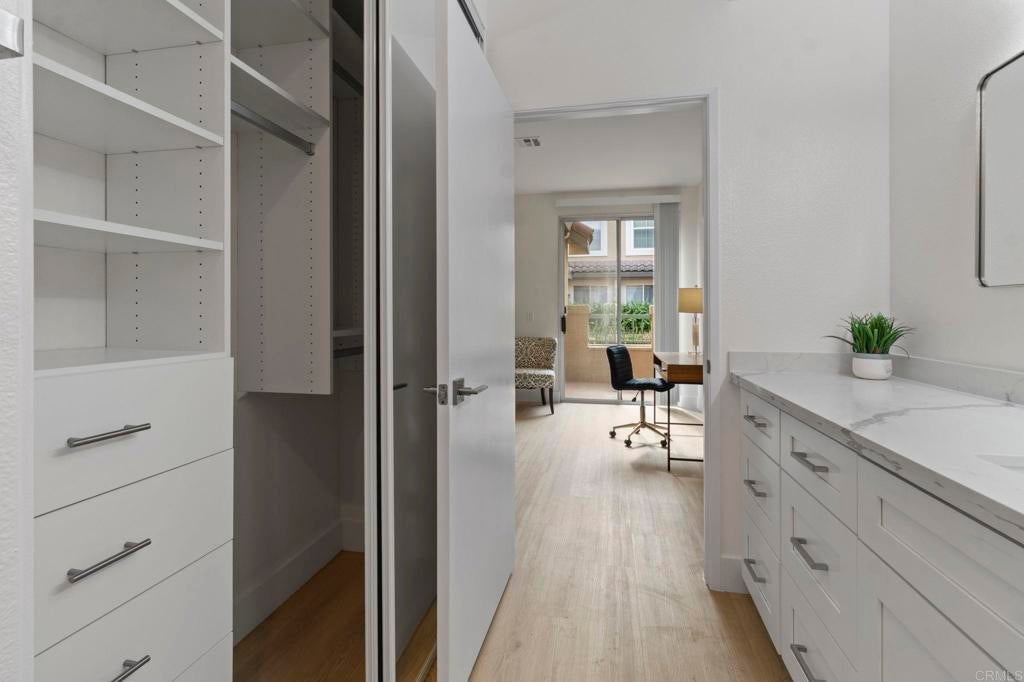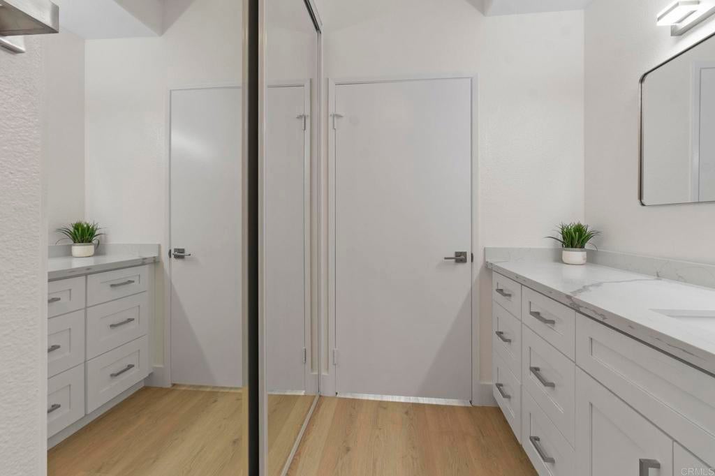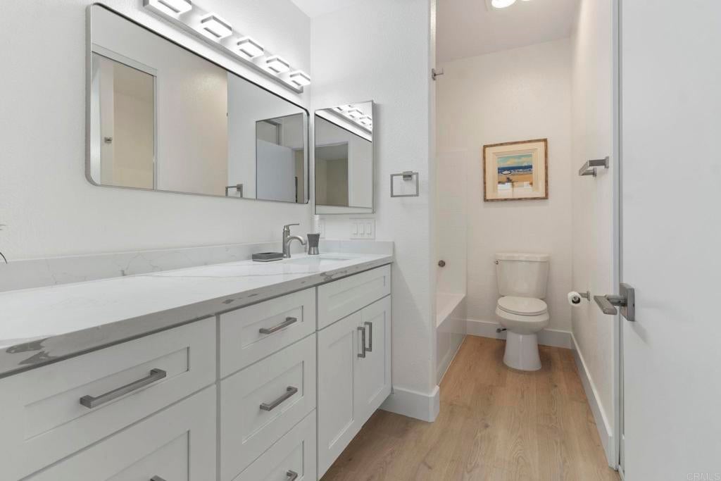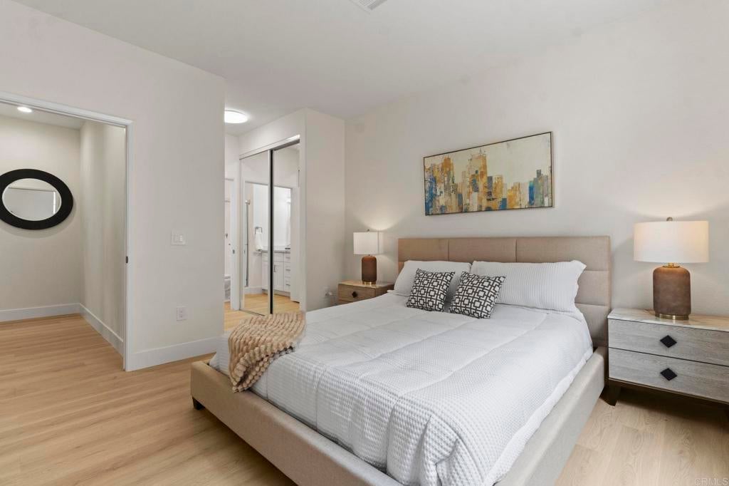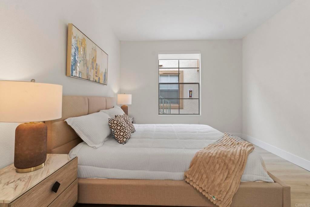 Step into this beautifully renovated 2-bedroom, 2-bathroom condo that seamlessly combines comfort and convenience. Located in a desirable community with resort-style amenities, this home offers the perfect setting for relaxed Southern California living. Enjoy cozy evenings by the charming fireplace in the open living room and dining area. Get creative in the updated kitchen, which boasts ample counter space and storage, featuring all-new shaker cabinets, quartz countertops, and stainless-steel appliances. The spacious primary suite includes a private en-suite bathroom and generous closet space, complete with custom cabinets from San Diego Closet Design. The second bedroom is ideal for guests, a home office, or a family room. It also includes an updated bathroom with a new vanity and countertops, custom closets, and a refinished tub/shower. Unwind on your private decks or take advantage of the community amenities, which include a sparkling pool, spa, and fitness center. This condo offers in-unit laundry, two assigned parking spaces, and a prime location close to shopping, dining, and freeway access. This home truly has everything you need and more. Don't miss out on this rare find—come see it today and envision yourself living the easy, breezy lifestyle you deserve!