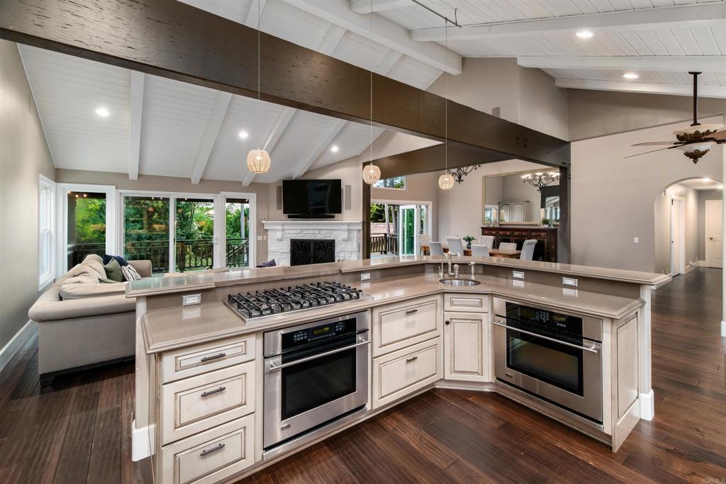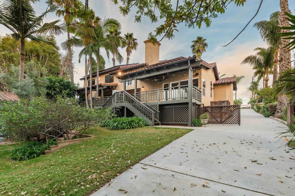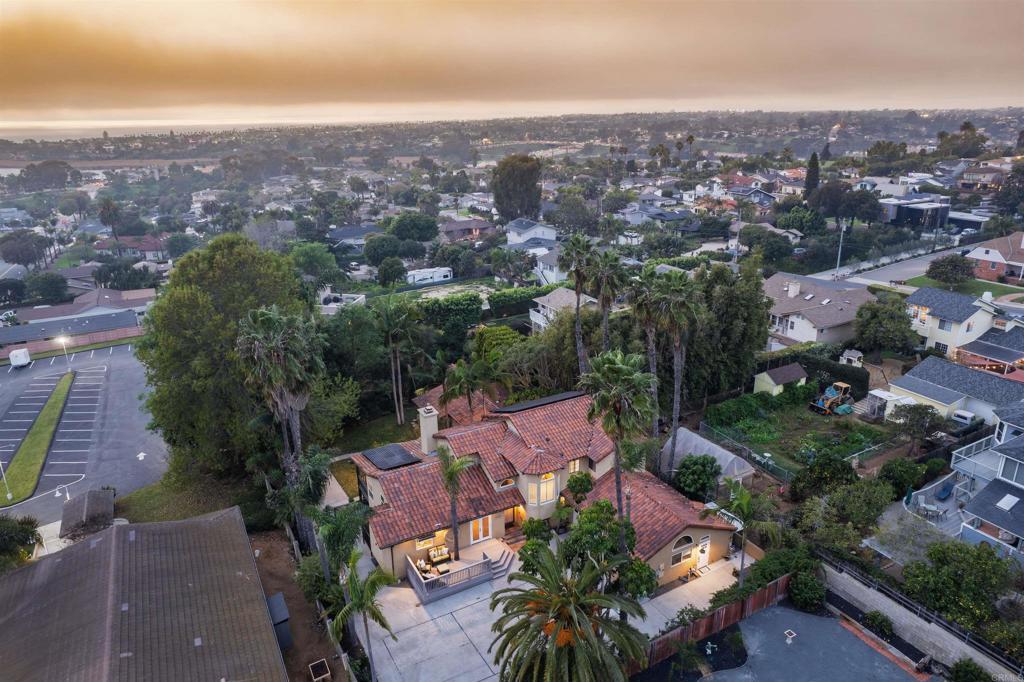 Welcome to 2645 Highland, an exceptional Carlsbad estate offering a rare combination of a stunning main residence, a detached guest house, and a junior ADU, all privately set on a flag lot exceeding 17,000 sq ft on one of Carlsbad’s most desirable streets. Surrounded by mature landscaping that feels like a lush jungle retreat, this property delivers privacy, space, and versatility just minutes from the coast. The main home features 4 bedrooms and 2.5 baths across two thoughtfully designed levels. Upon entry, the dramatic great room immediately impresses with soaring vaulted ceilings, abundant natural light, and real wood floors throughout. This space is truly made for entertaining, seamlessly accommodating large gatherings while still feeling warm and inviting. The wood-clad ceilings—painted crisp white—add architectural character and amplify the home’s open, airy scale. A whole-house Sonos system enhances both everyday living and entertaining. Anchoring the home is an oversized chef’s kitchen that is a true showpiece, complete with stainless steel appliances, a built-in refrigerator, 6-burner Viking cooktop, and Monogram oven—ideal for hosting, cooking, and everyday living alike. Multiple access points from the living room, dining room, and primary bedroom lead to an expansive rear deck, creating effortless indoor-outdoor flow. From here, enjoy ocean views, coastal breezes, and unforgettable sunsets—perfect for dining al fresco or relaxing in your private sanctuary. The primary suite is conveniently located on the first floor, featuring a spa-like en suite bath with an oversized walk-in shower and a massive walk-in closet. Also on the main level are a built-in office, a dedicated laundry room, and smartly planned spaces that support both daily living and entertaining. Upstairs, you’ll find three generously sized bedrooms and an additional full bathroom, with two bedrooms capturing breathtaking 180-degree ocean views that stretch across the coastline, offering flexibility for family, guests, or creative spaces—each elevated by a truly stunning backdrop. The outdoor spaces are equally impressive and designed for enjoyment. The grounds include an outdoor shower, a private putting green, and beautifully layered landscaping that creates a true resort-like feel. Paid solar adds efficiency, while a Tesla charger in the garage supports modern coastal living. Adding tremendous value and flexibility, the property includes a detached 1-bedroom, 1-bath guest house, fully remodeled through 2024–2025, featuring a walk-in closet and its own laundry hookups. Additionally, there is a junior ADU studio, offering flexible use for multigenerational living or guests. A two-car attached garage completes this exceptional offering. Located in a highly sought-after Carlsbad neighborhood known for its peaceful streets, strong sense of community, and excellent schools, 2645 Highland is a rare coastal compound that blends privacy, luxury, and lifestyle in one extraordinary setting.
