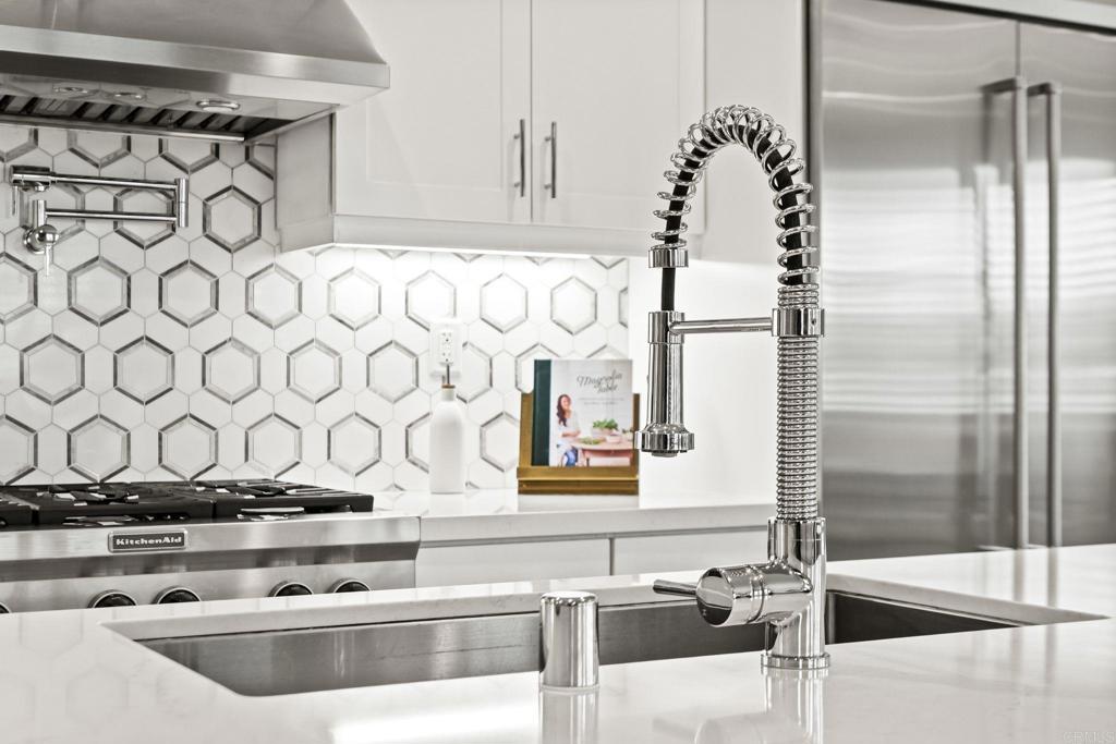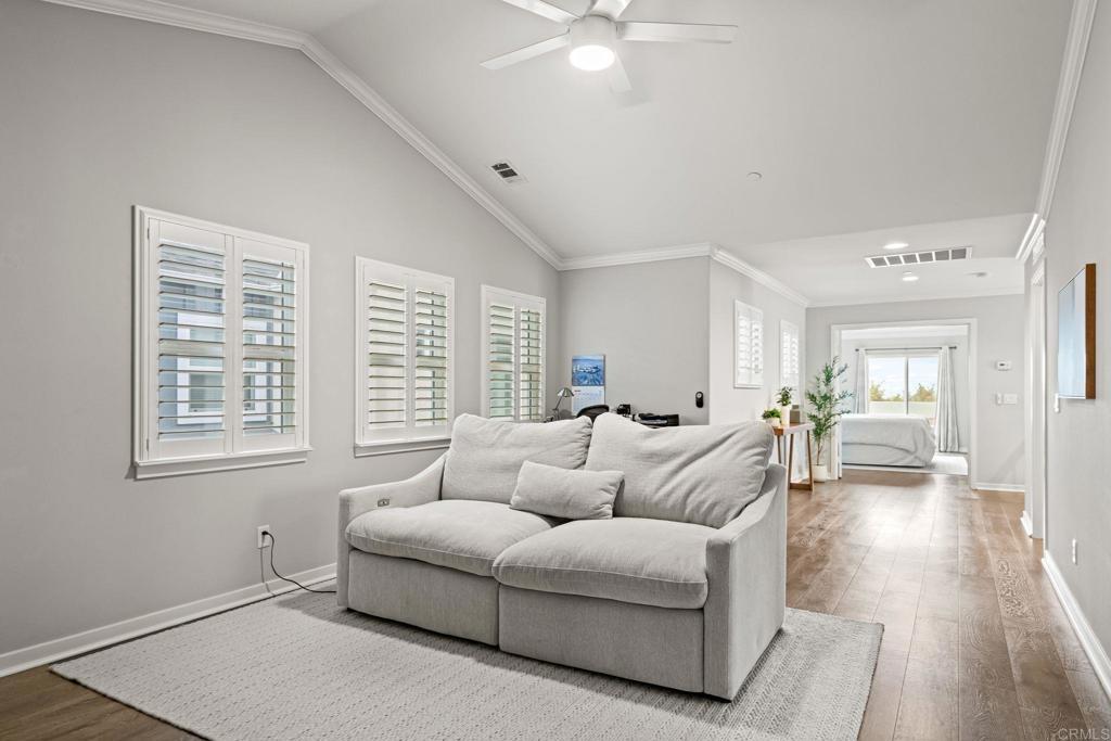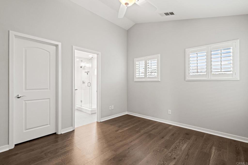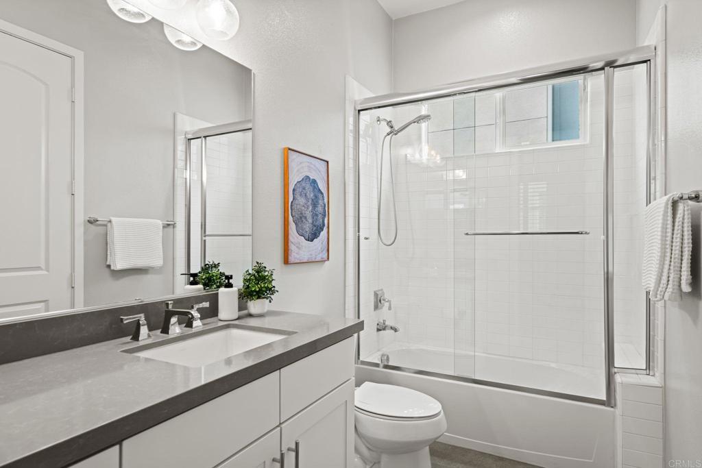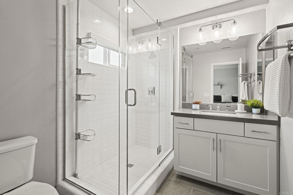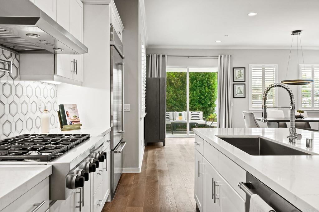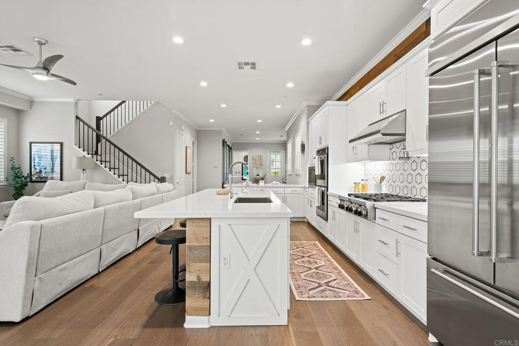 Set just minutes from the beach, this exceptional former model residence is the largest home within an exclusive eight-home enclave, offering a rare fusion of refined coastal luxury, sophisticated design, and modern upgrades. Thoughtfully remodeled and impeccably maintained, the home showcases a striking chef’s kitchen featuring new quartz countertops, a dramatic double island with bar seating, custom designer backsplash, and curated barn-wood accents. Elegant barn doors, rich hardwood flooring throughout, and the complete removal of carpet further elevate the interior, creating a seamless and timeless aesthetic. The expansive floor plan offers four generously sized bedrooms, each with its own en-suite bath, including a desirable main-level bedroom and full bathroom. Upstairs, a spacious bonus room provides versatile living or entertaining space and flows effortlessly into the private primary retreat. The primary suite features a tranquil balcony with ocean views—an ideal setting for enjoying coastal sunsets and ocean breezes. Additional enhancements include a new central air conditioning system, fully owned solar, a tankless water heater with filtration system, and an automated outdoor sprinkler system. Both the front and backyard have been professionally landscaped with drought-conscious design elements, including turf, pavers, and a decomposed granite fire-pit area perfect for entertaining. A freshly painted exterior adds to the home’s standout curb appeal, while the 2.5-car tandem garage offers ample storage and convenience. Located within top school district San Dieguito Union and walking distance to San Dieguito Academy. Ideally situated with excellent walkability to local award-winning schools, Encinitas Community Park, and the boutiques and dining of Cardiff, this residence delivers elevated coastal living just moments from the ocean.