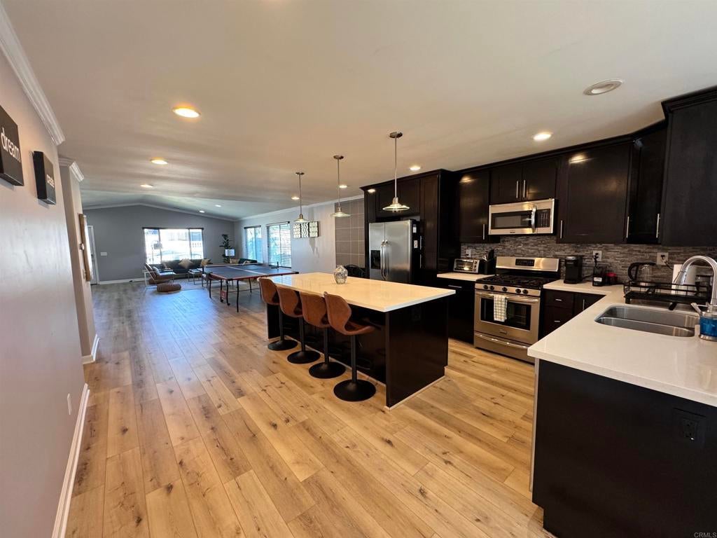 SINGLE STORY! NO HOA! NO MELLO ROOS! Welcome to this fantastic house in Mira Mesa built in 2000 with new LVP flooring installed last month throughout the house. Modern, stylish kitchen and bathrooms. 12 fully paid solar panels with a spacious open floor plan, excellent sized master bedroom with walk in closet and three further good sized bedrooms. Separate laundry room and hallway closets for storage. The living room flows into the kitchen and casual dining space. The kitchen has a large chef's island which is perfect for entertaining! Other highlights include electric car charging outlet and easy care front/back yard (with a small putting green). Home sits on a low traffic street in a quiet neighborhood with close proximity to entertainment and amenities.