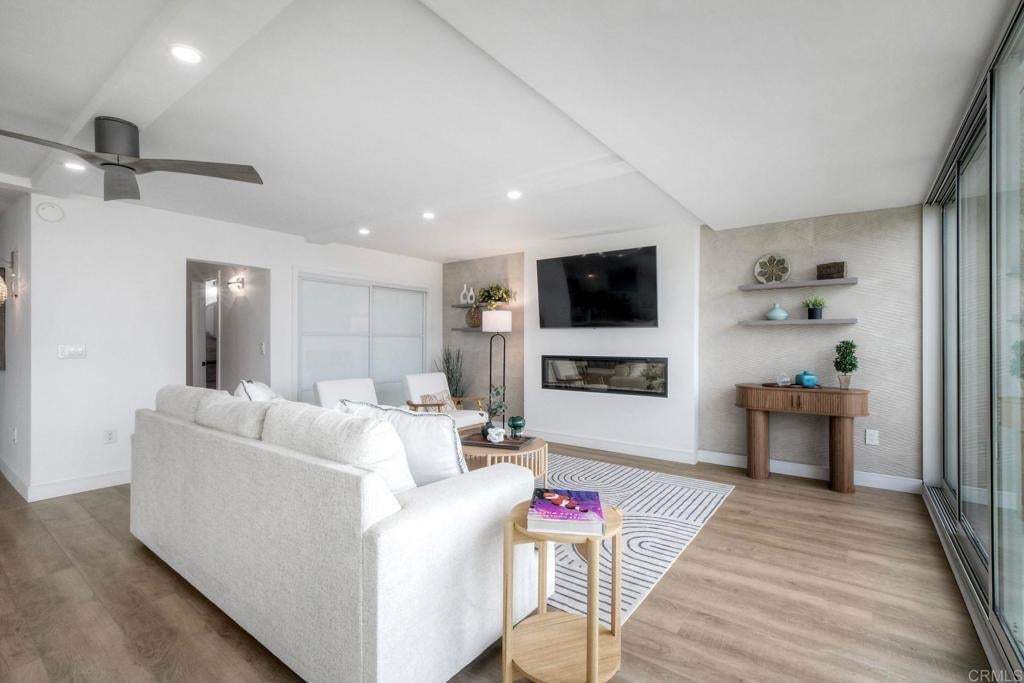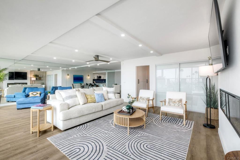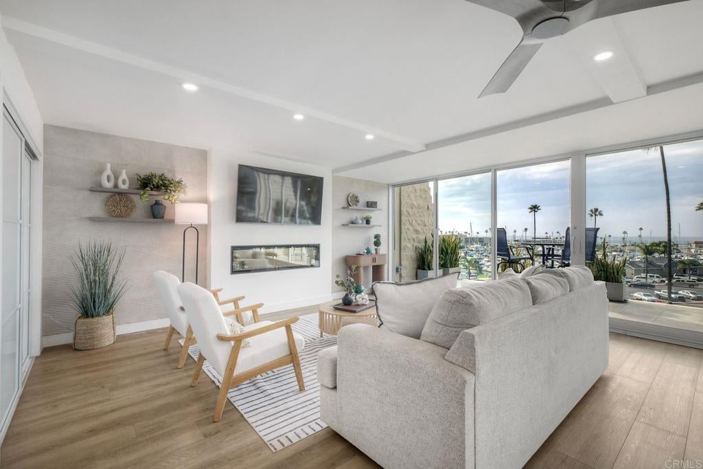 Situated on the first floor. No stairs! This beautiful home seamlessly blends indoor and outdoor living with sliding doors that open to a 220-square-foot deck which offers mesmerizing whitewater and harbor views. It is one of seven units in the building that boasts a deck spanning the entire width of the home! Indulge in the serene ritual of your morning coffee as the sea and harbor awaken and relish an evening cocktail beneath a sky illuminated by one of Oceanside's most breathtaking vistas. This exceptional residence at Oceanside Marina Towers is a true gem. Unit 1B also features a newer kitchen and updated baths, with indoor laundry, there is also a dedicated private EV charging station at the parking space - wow! The Marina Towers amenities include pool, spa, BBQ area, fitness center, clubhouse, and secured lobby. Water and basic cable are included in the HOA fees. This distinguished property is available with select furnishings too.